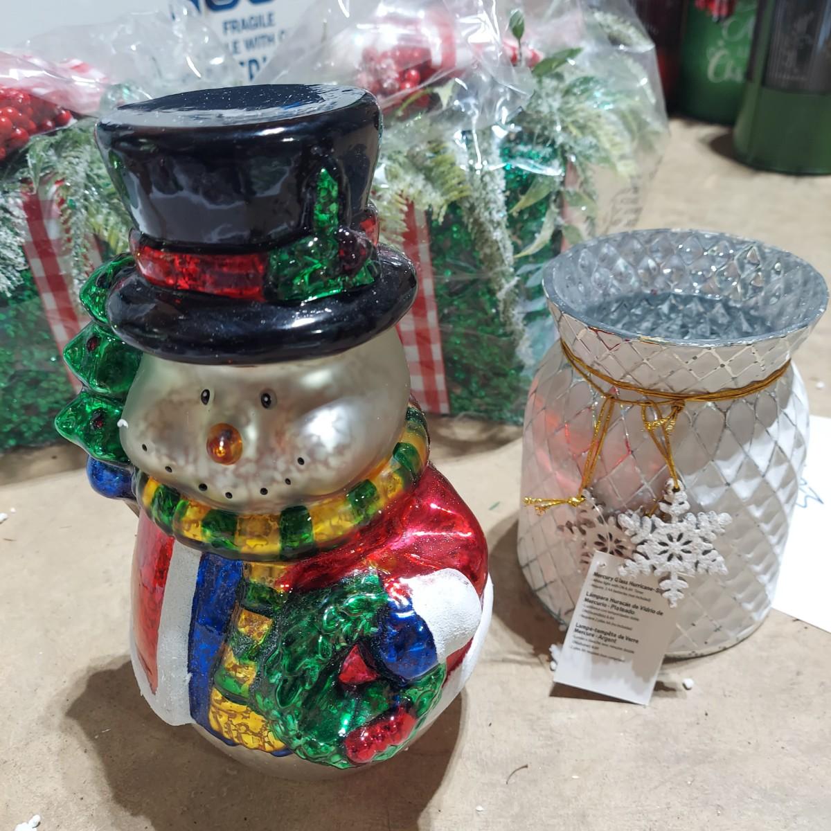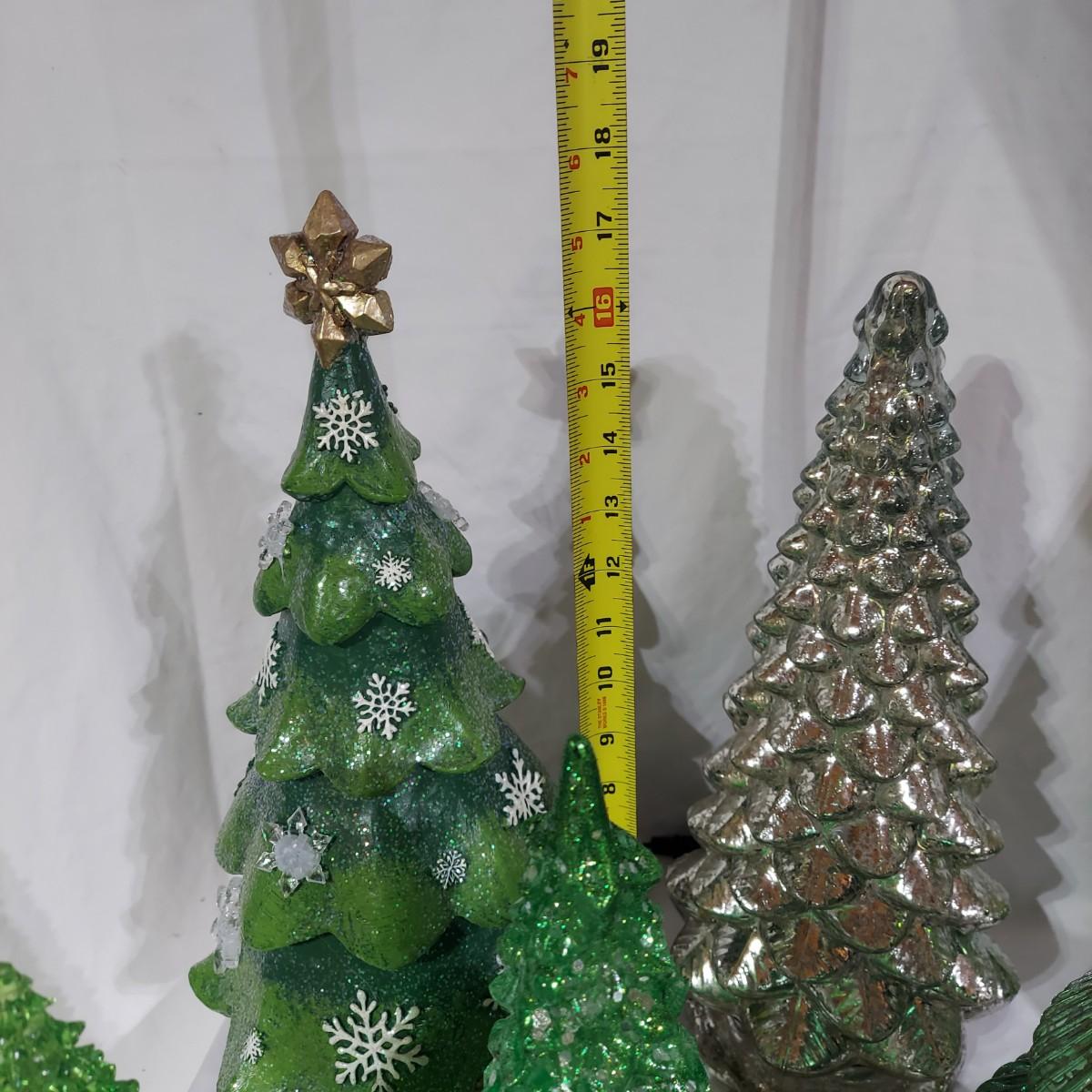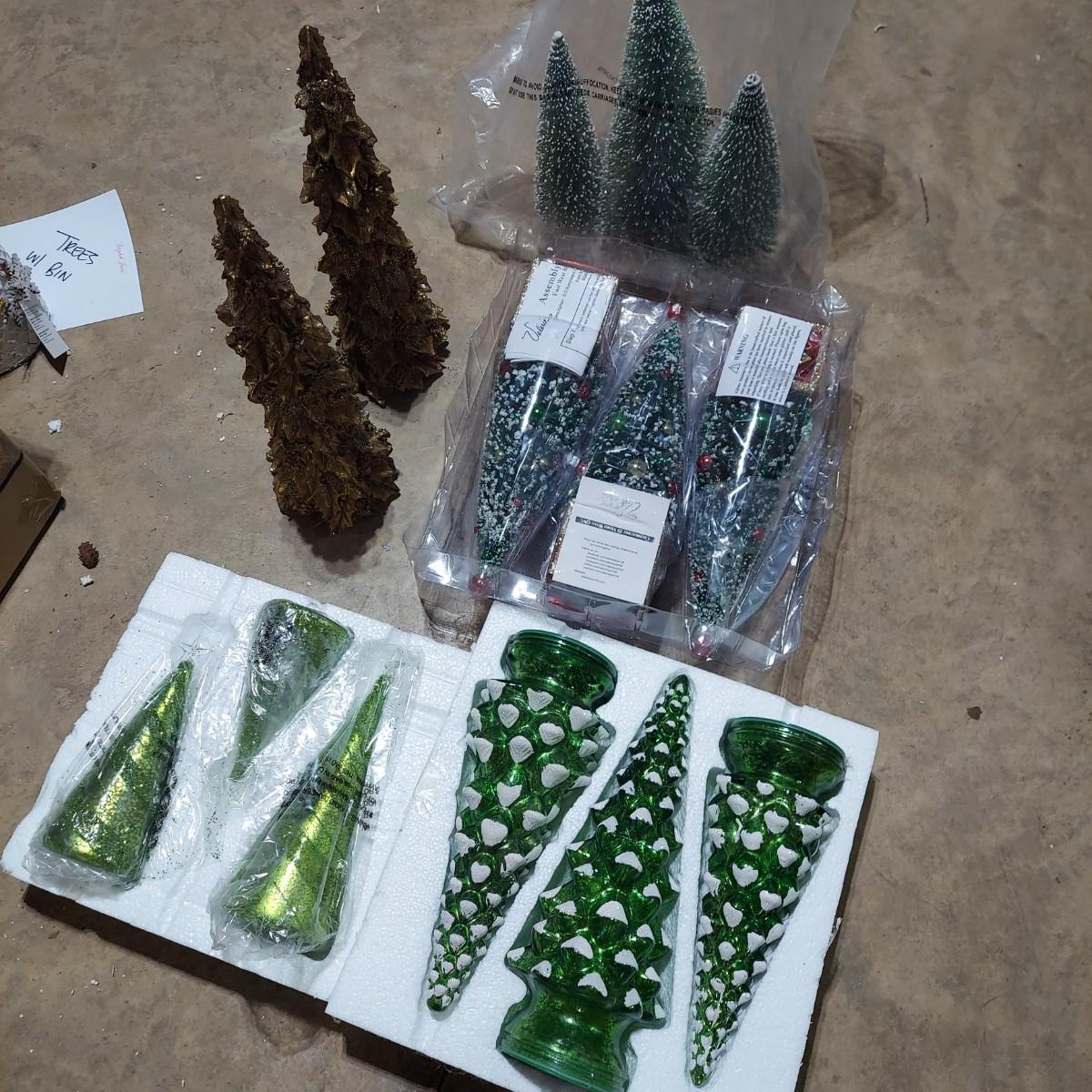 Large lot of Christmas and Winter decor. There are several style of Christmas trees. Some trees are glass, some are plastic. Some of the trees light up. Lot also includes many other decor items like snowmen and peppermint candies. These items are mostly mercury glass and also light up. Trees vary in height. The tree with a star is approximately 18"H. Please see photos for more measurements and further details. This is a very large lot. Please plan accordingly for transportation. Local Pickup Only