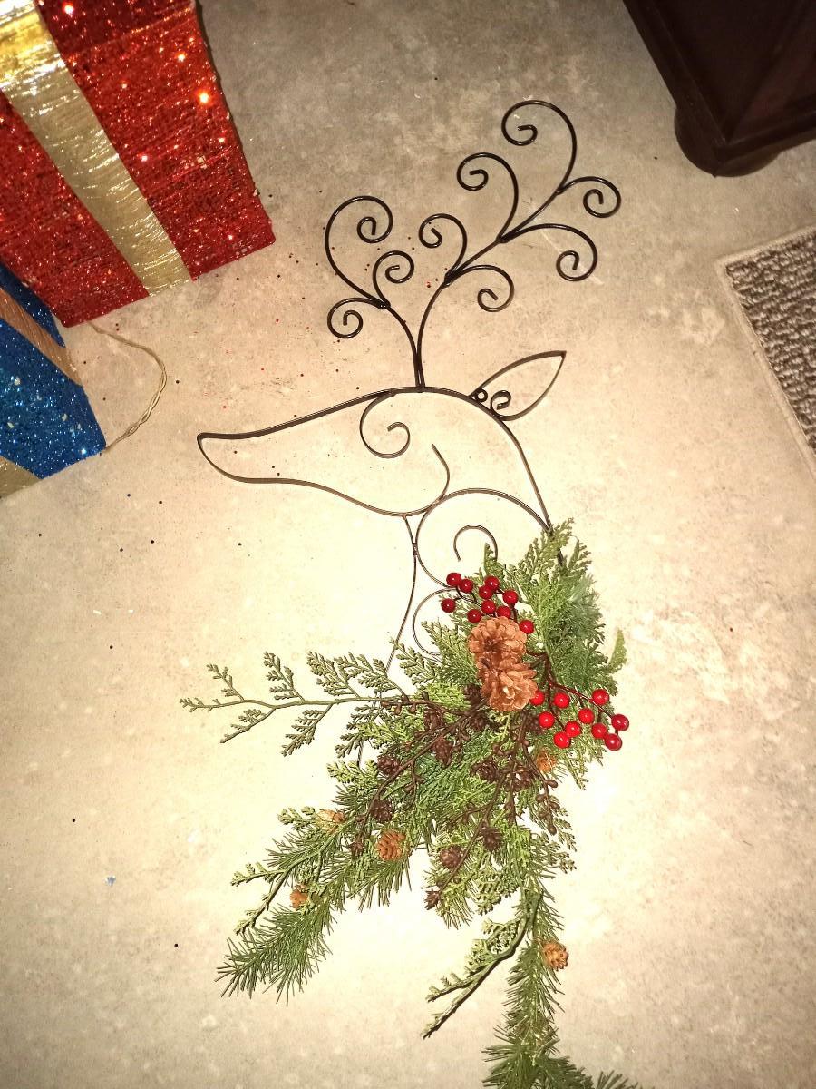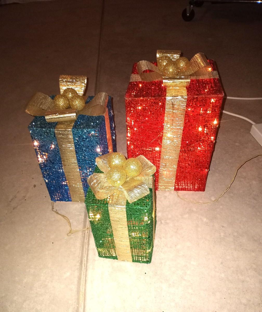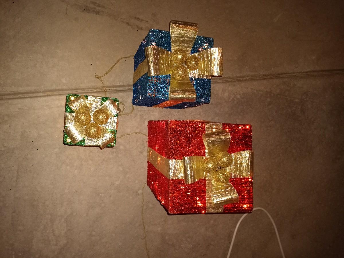 LIGHT UP PRESENTS 9" SQUARE-METEL REINDEER 12" TALL-PUPPY STOCKING