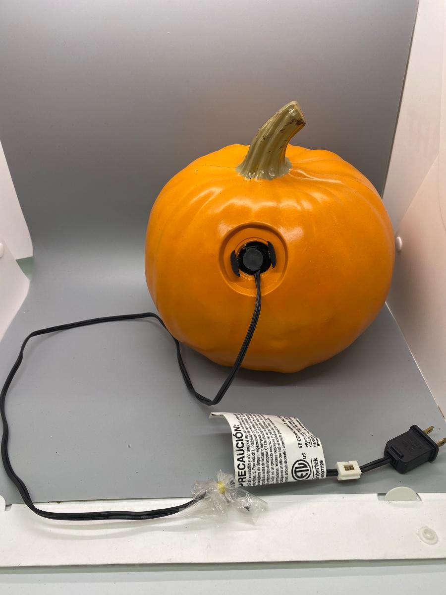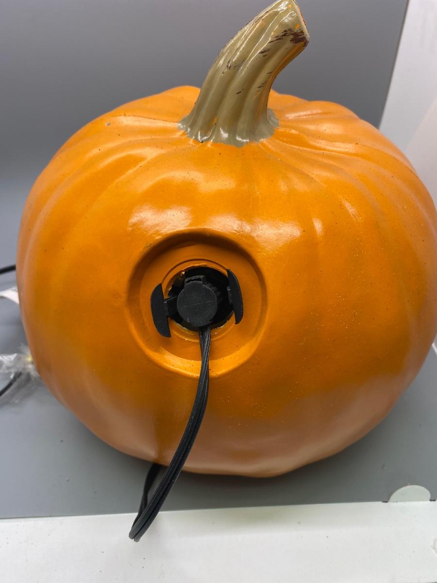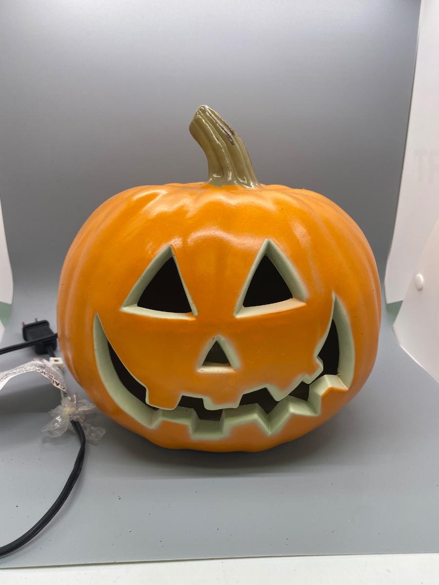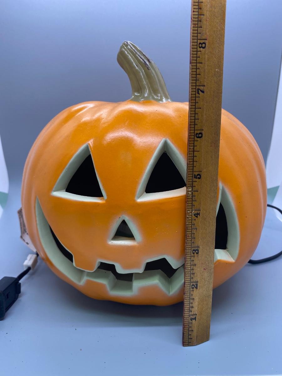 Light Up Spooky Pumpkin Indoor Outdoor Holiday Decor, there is no significant damage and is in good displayable condition. Has been tested and works perfectly, check pictures for more details and for sizing.