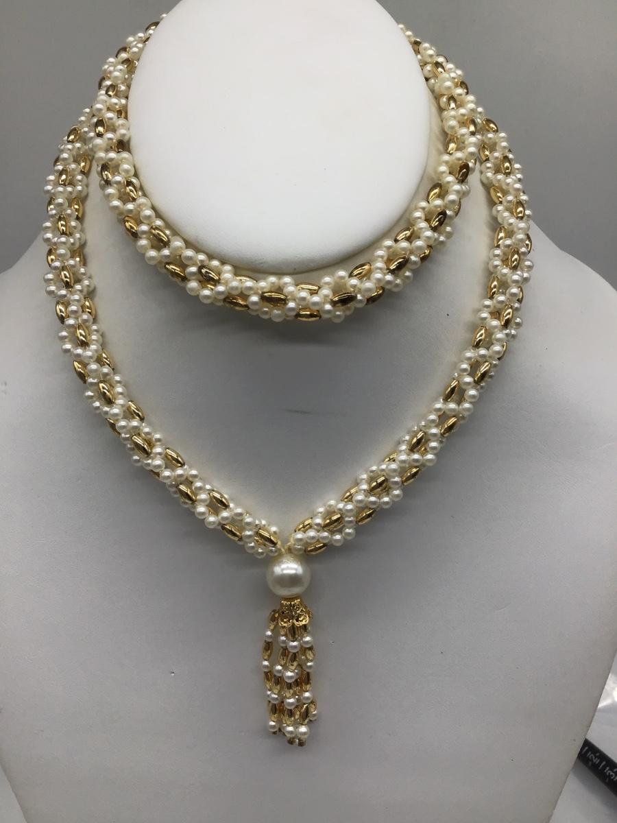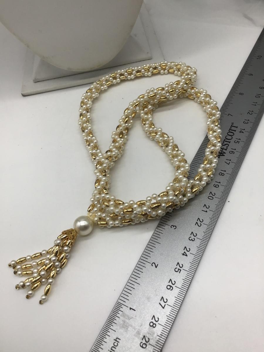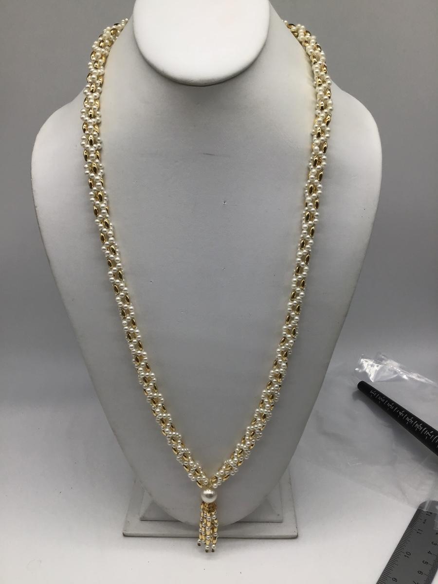 Light Weight Faux Pearl Gold Tone Tassel Necklace