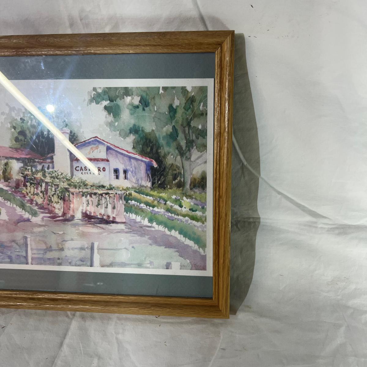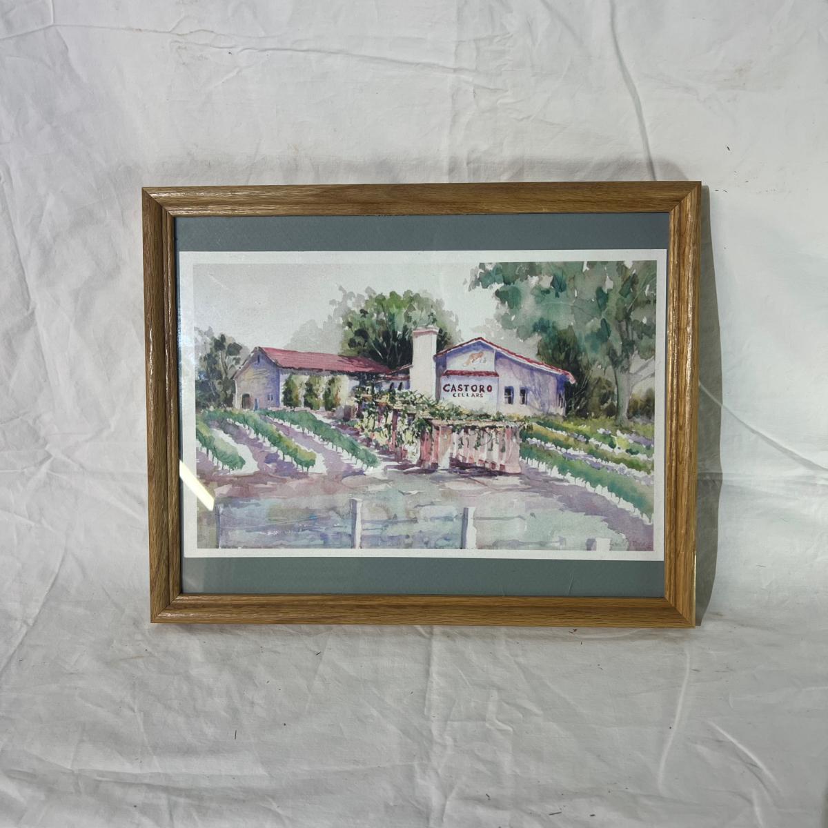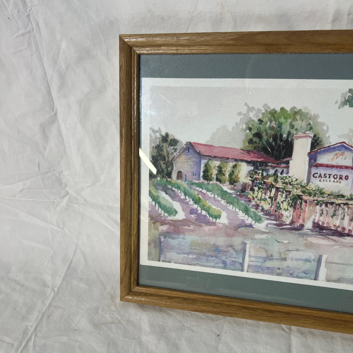 Light wood Frame of Watercolor Vineyard. Dimensions are 15" X 12"