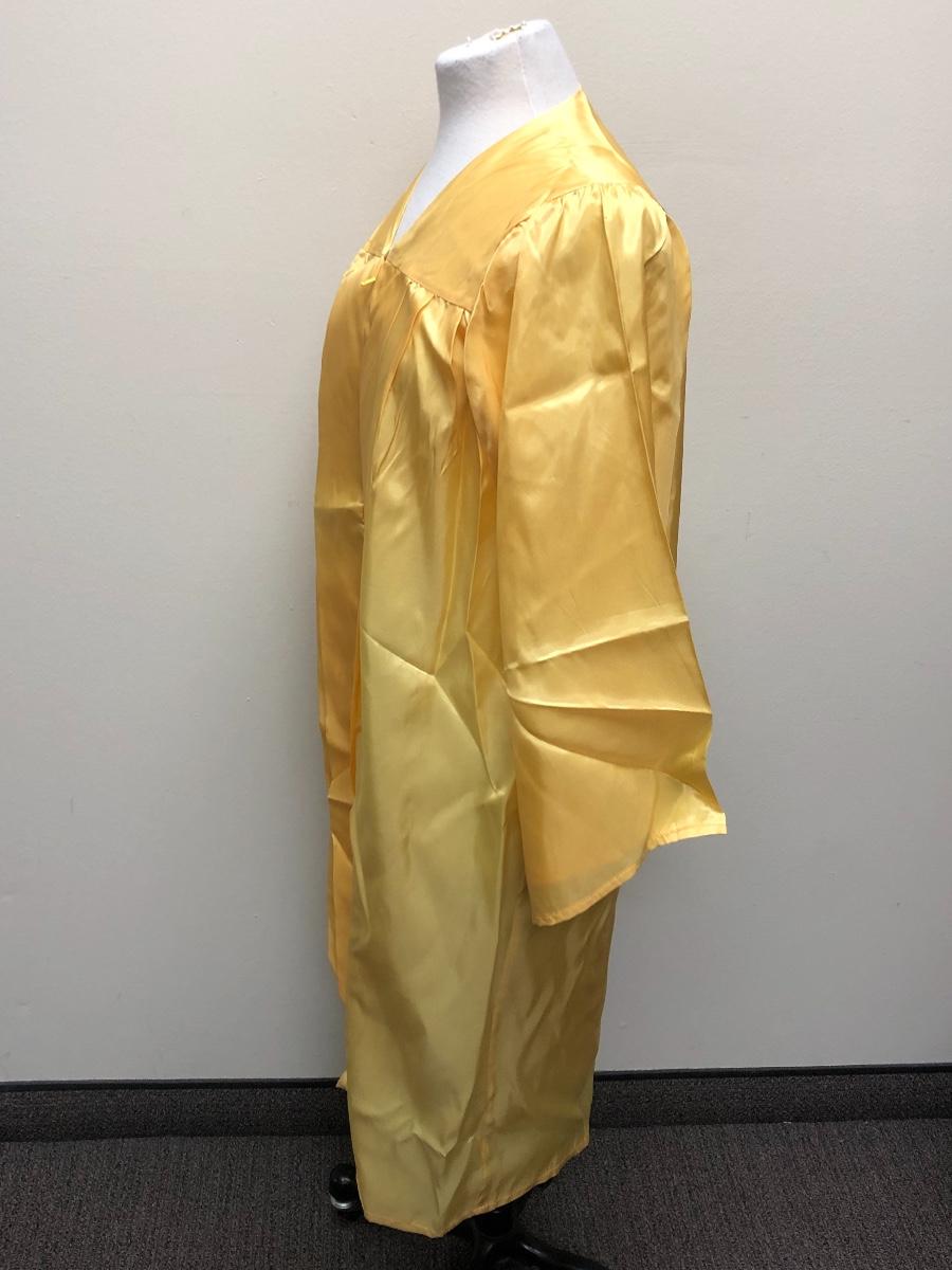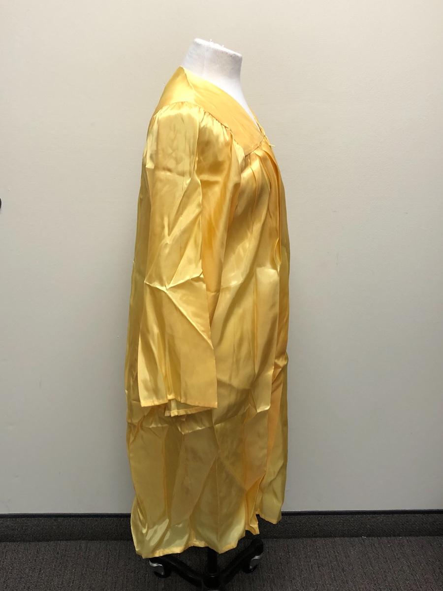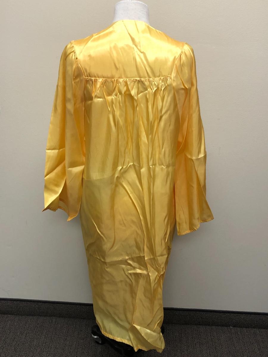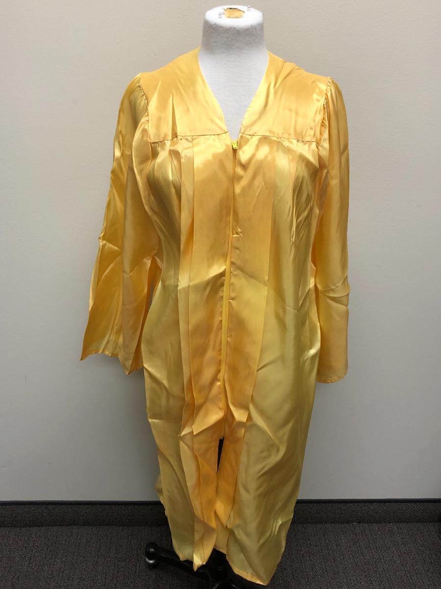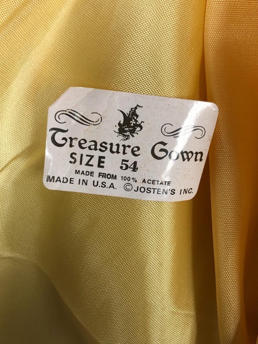 Item is wrinkled due to years of being in storage. The gown comes in a size 54. It was made in the USA and made from 100% acetate.
