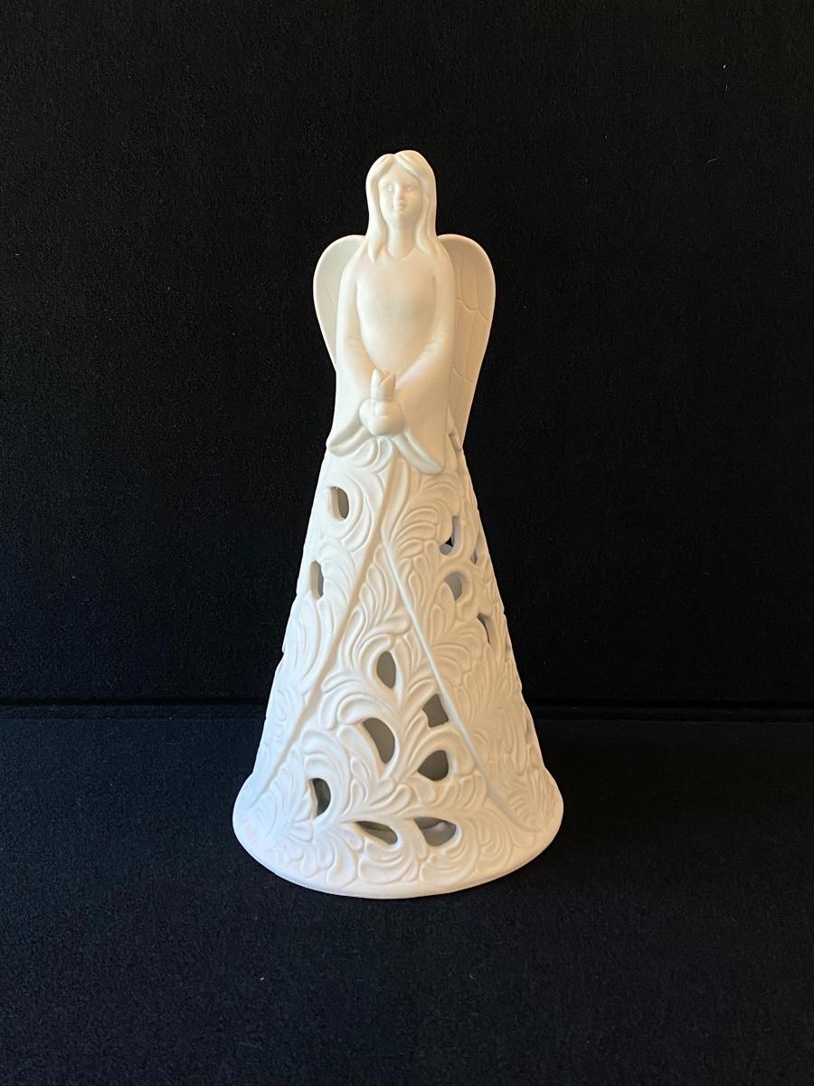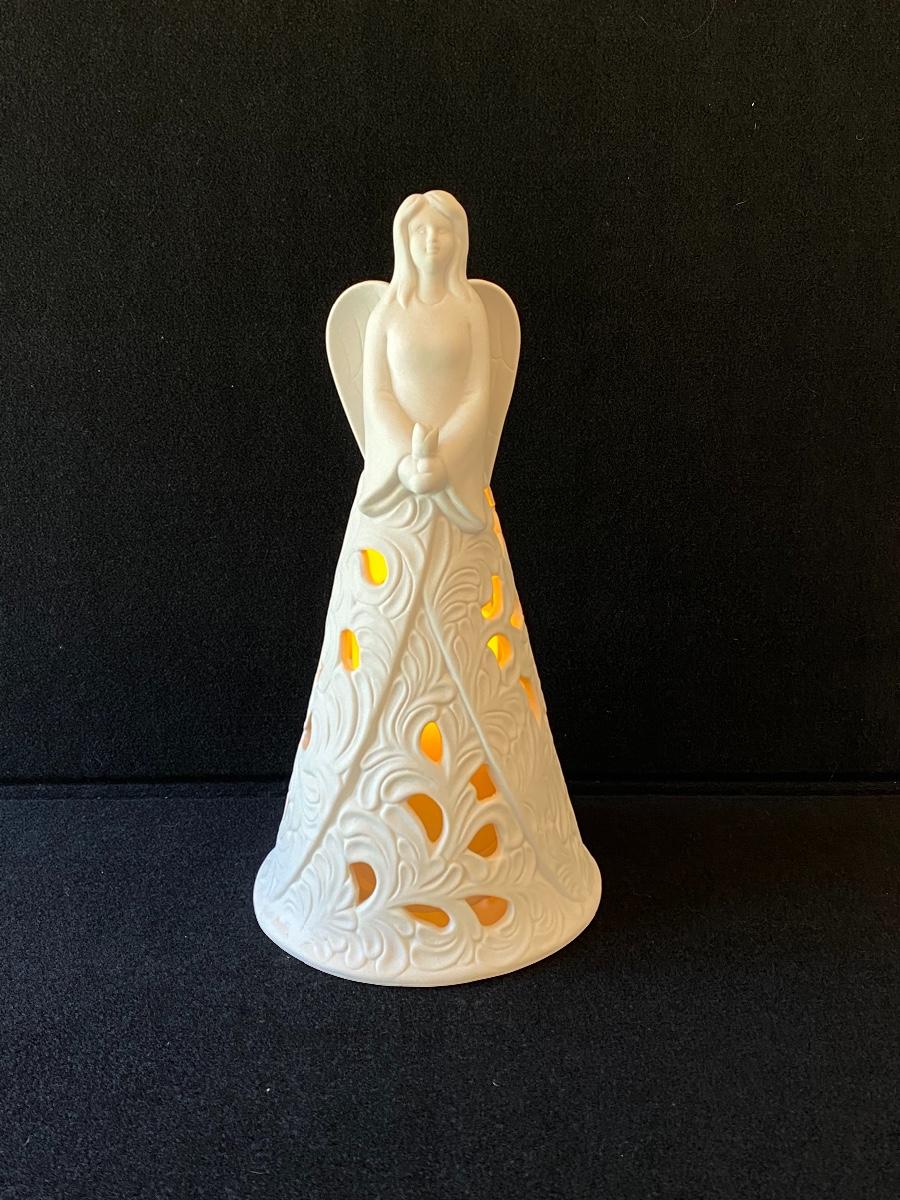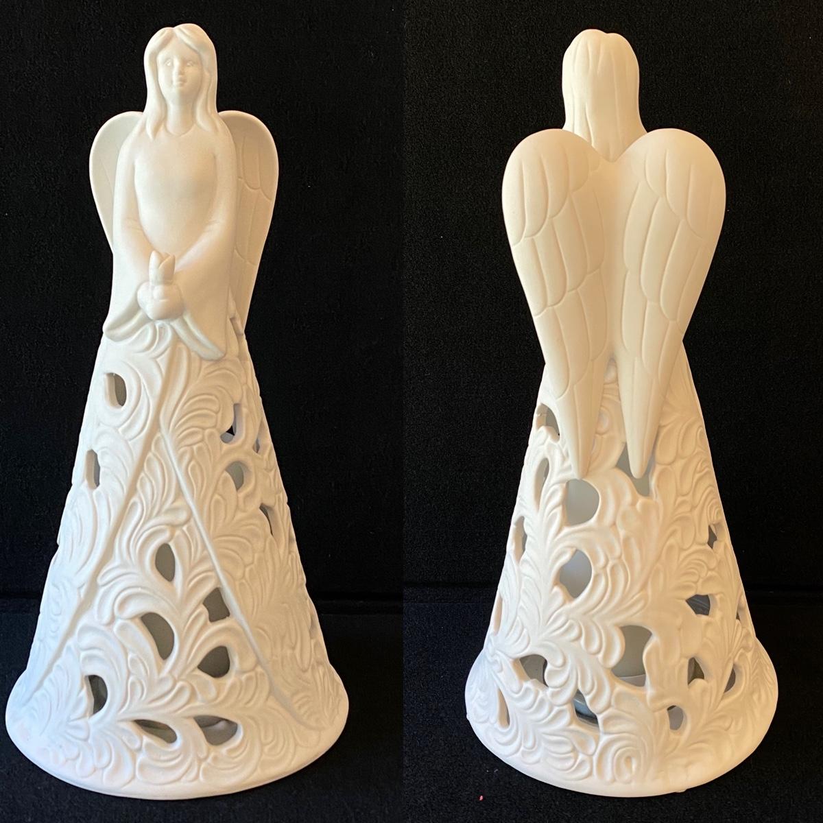 Lighted Ceramic Christmas Angel With Battery Operated Candle