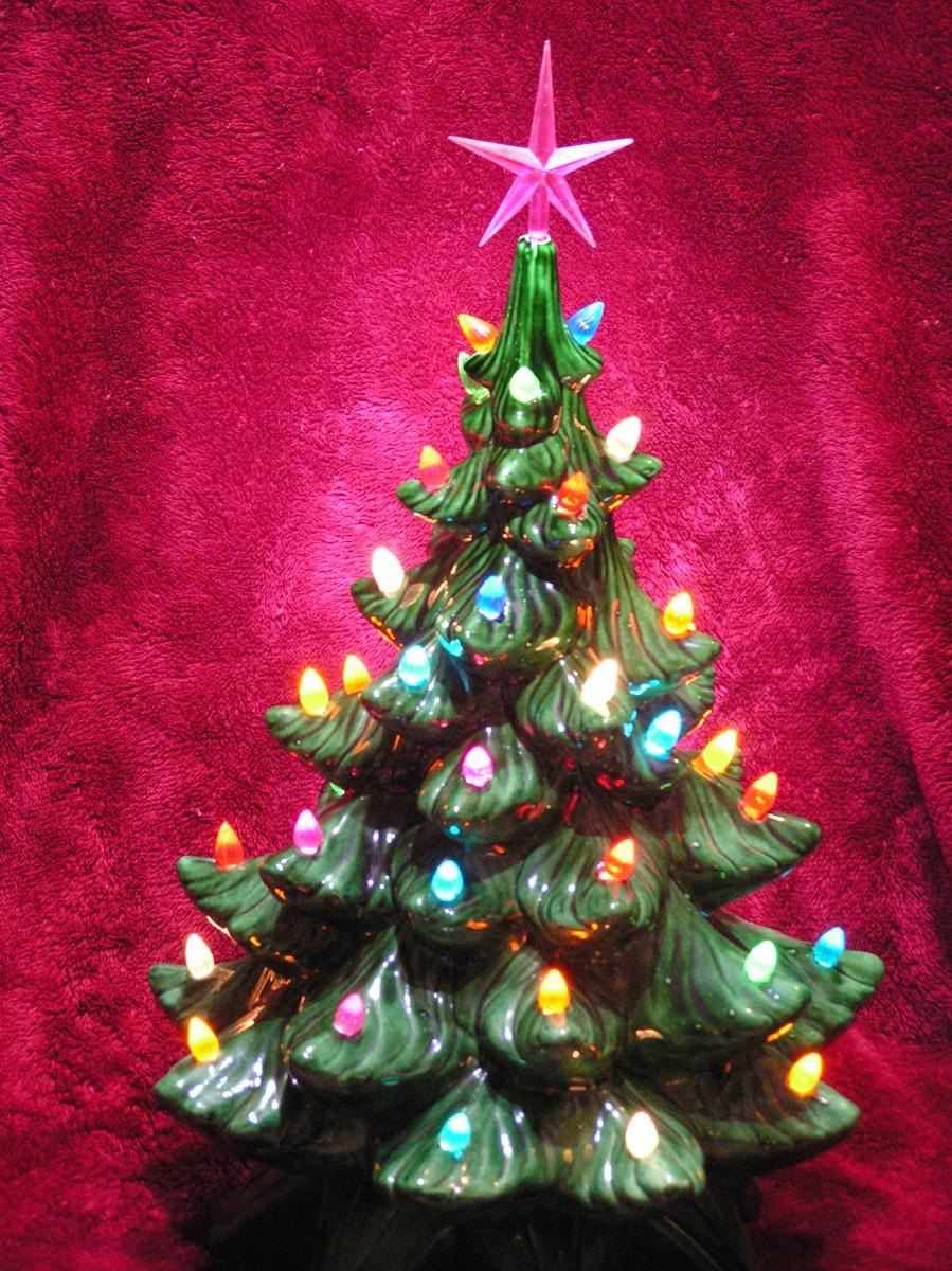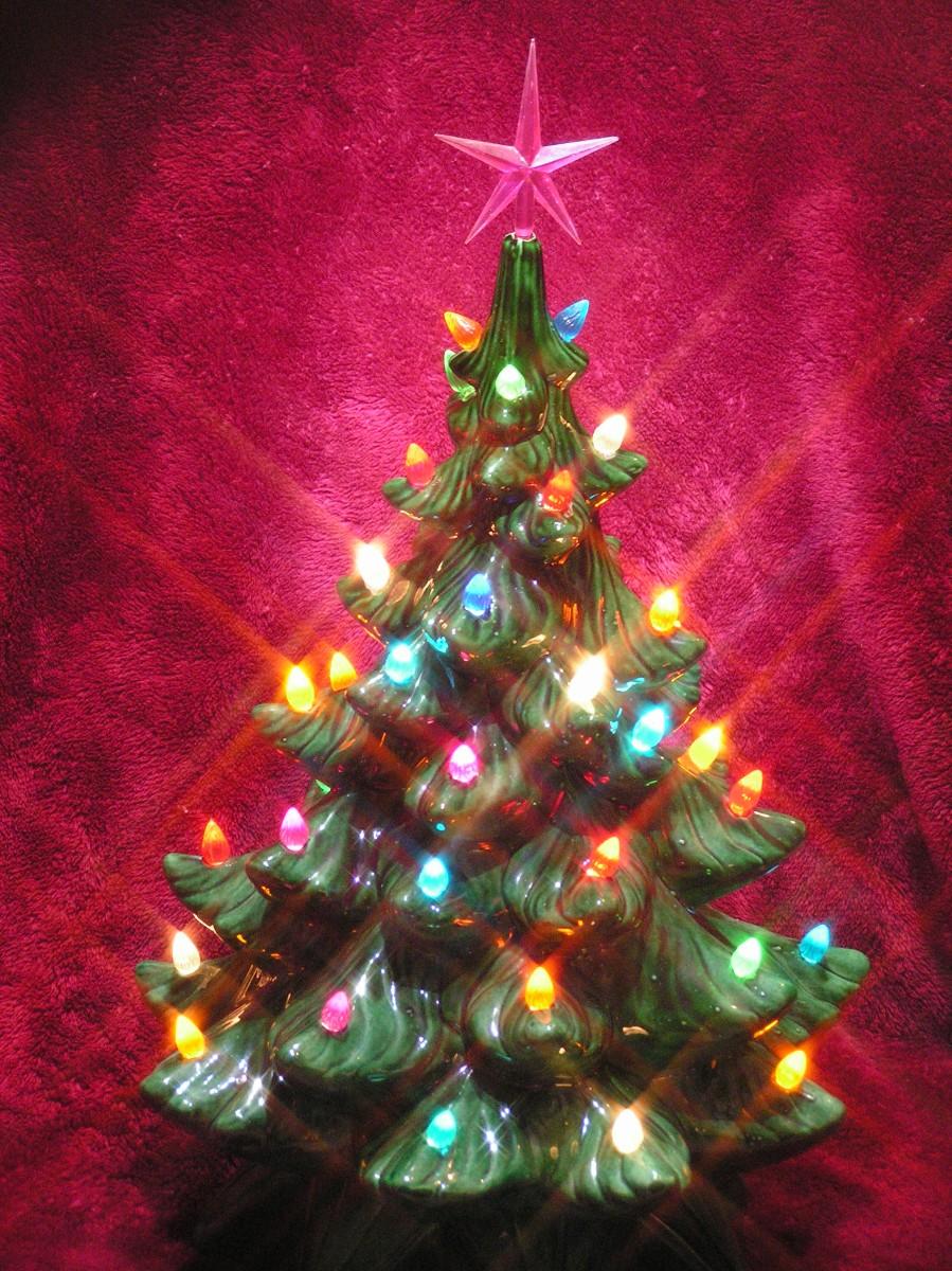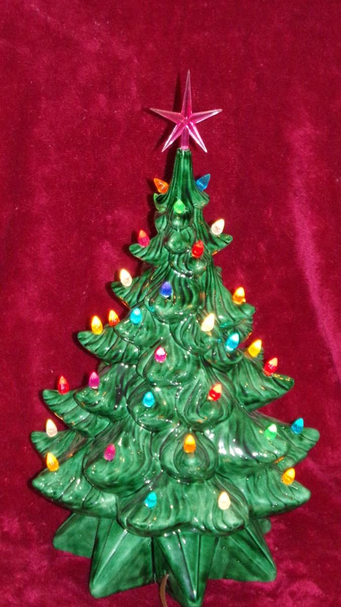Lighted ceramic Christmas Tree, 16-1/2" tall plus the star on top. Hand painted! 5' cord w/switch