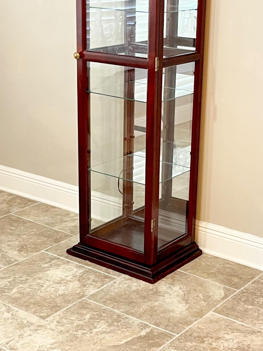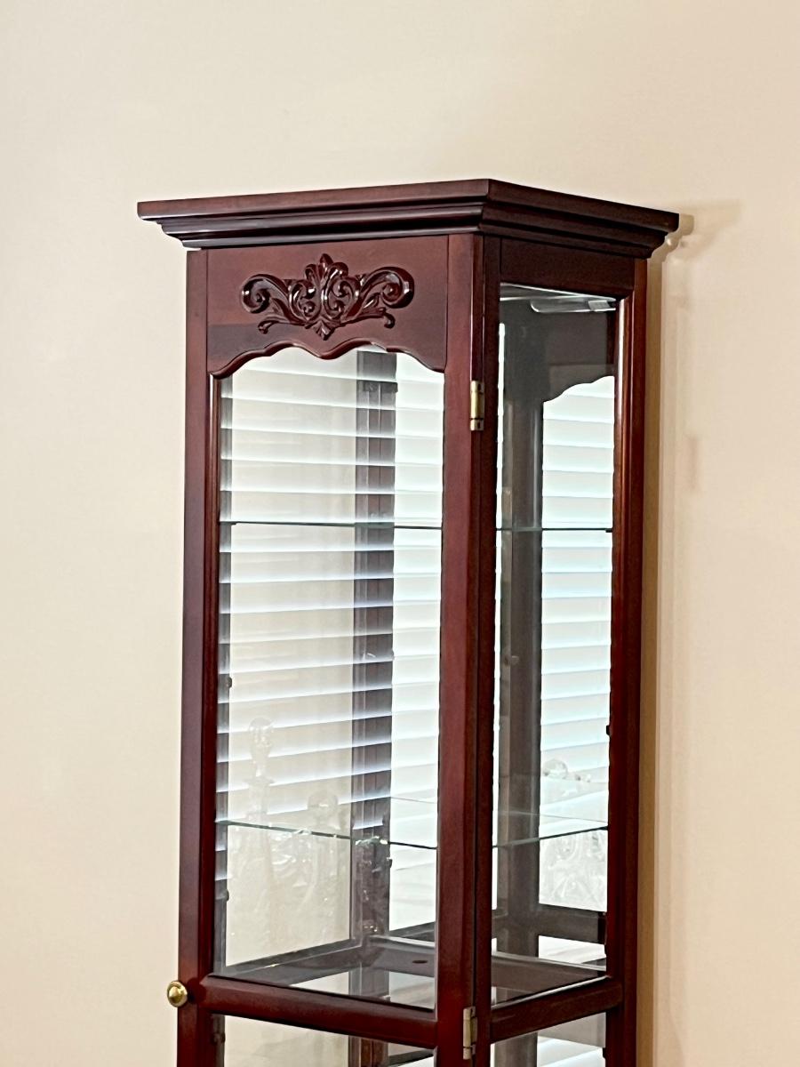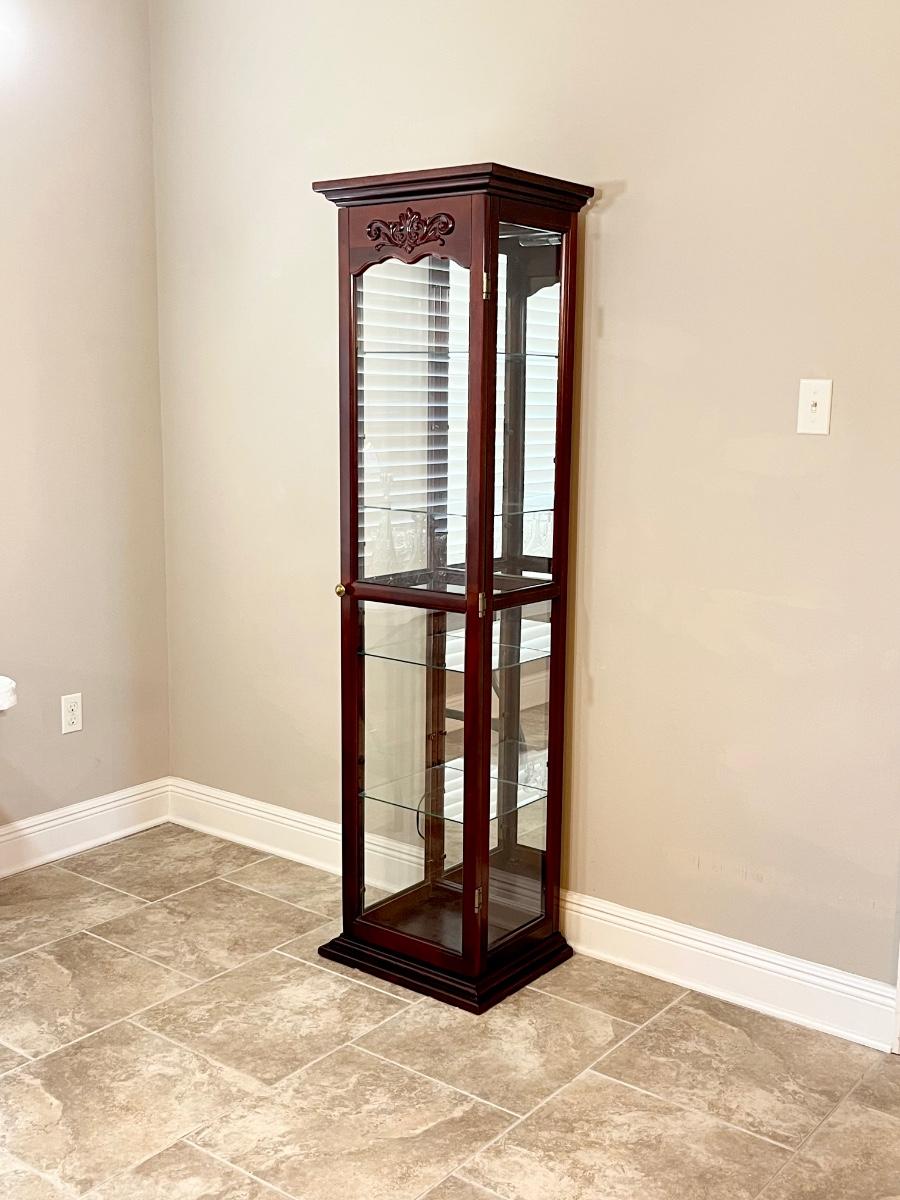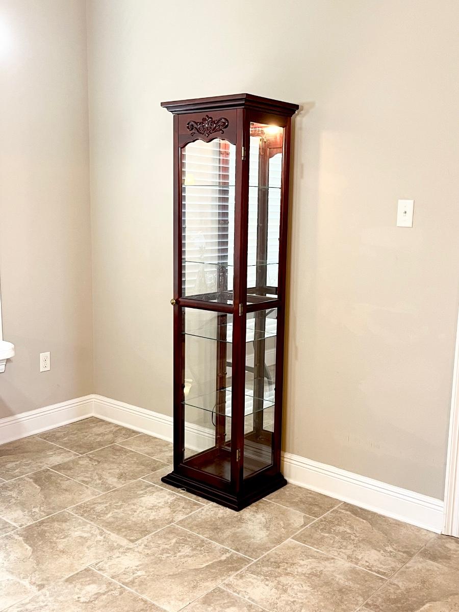 No name brand found ~ 72 1/4” H x 19.5” W x 15.5” D ~ Has 4 glass shelves