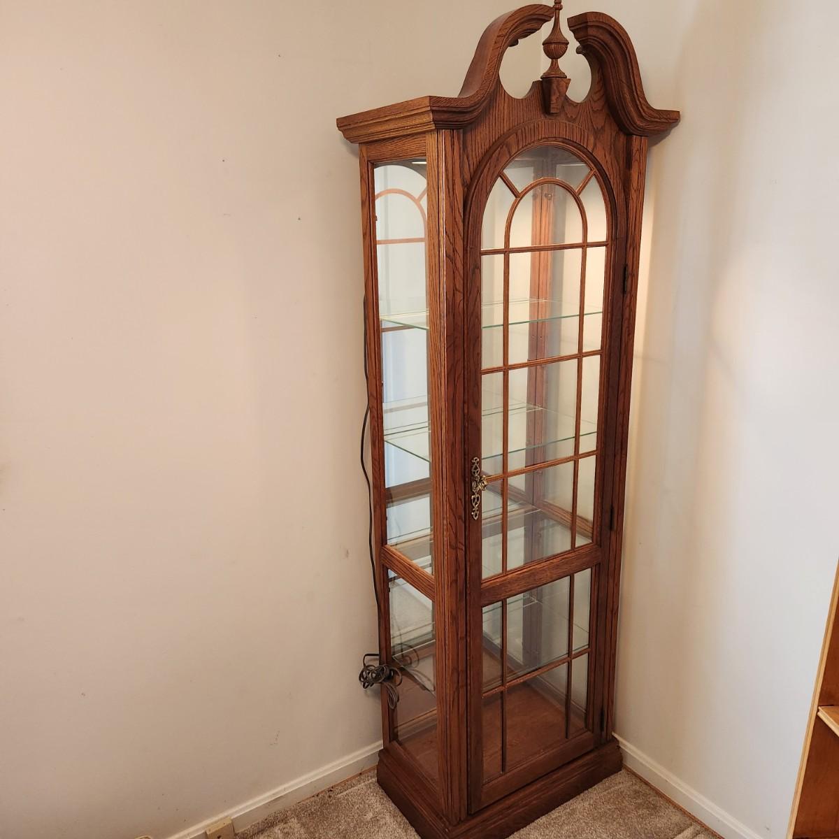 Lighted Curio Display Cabinet with Key w 4 Adjustable Shelves