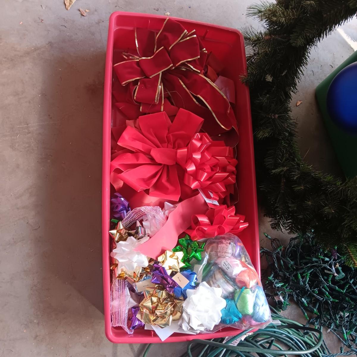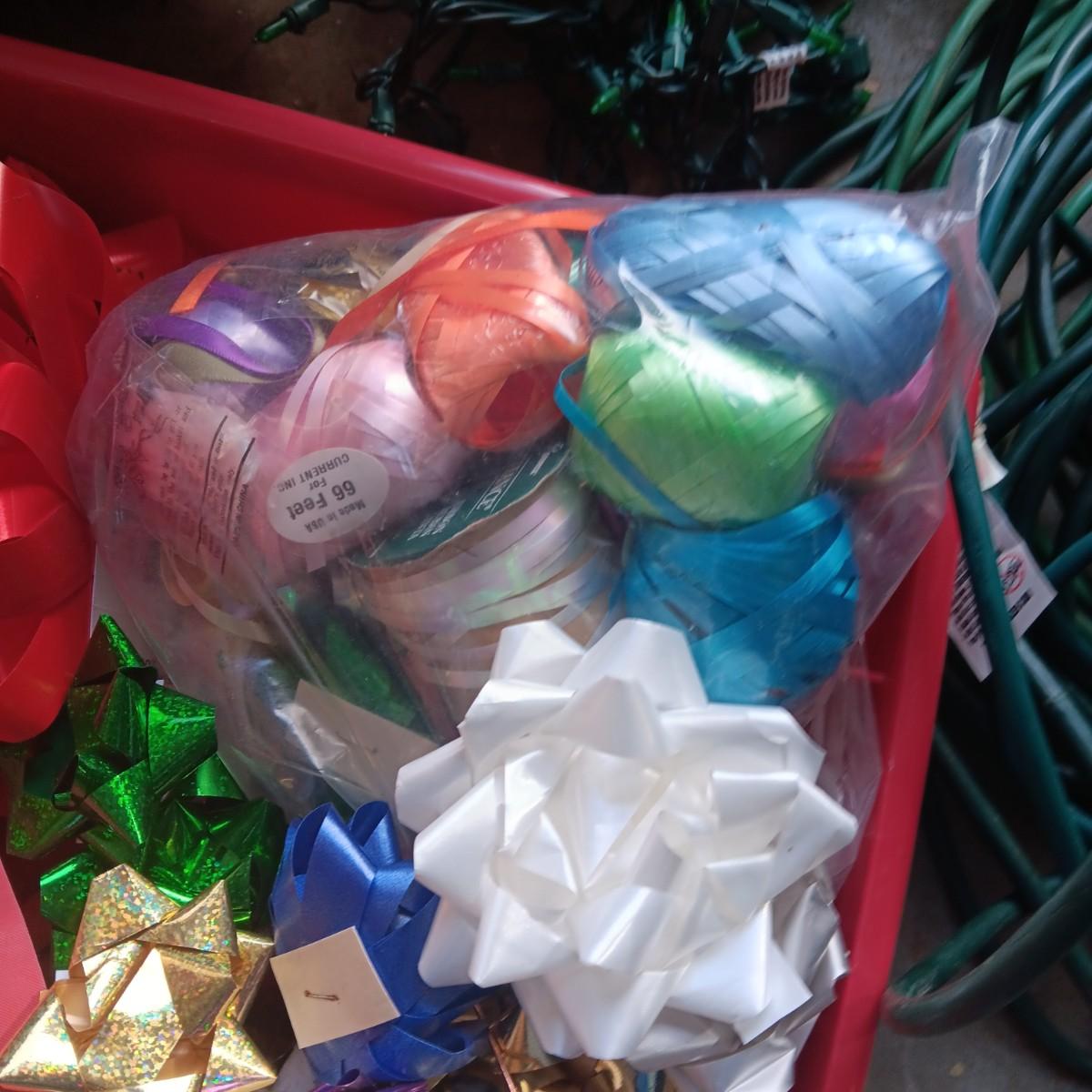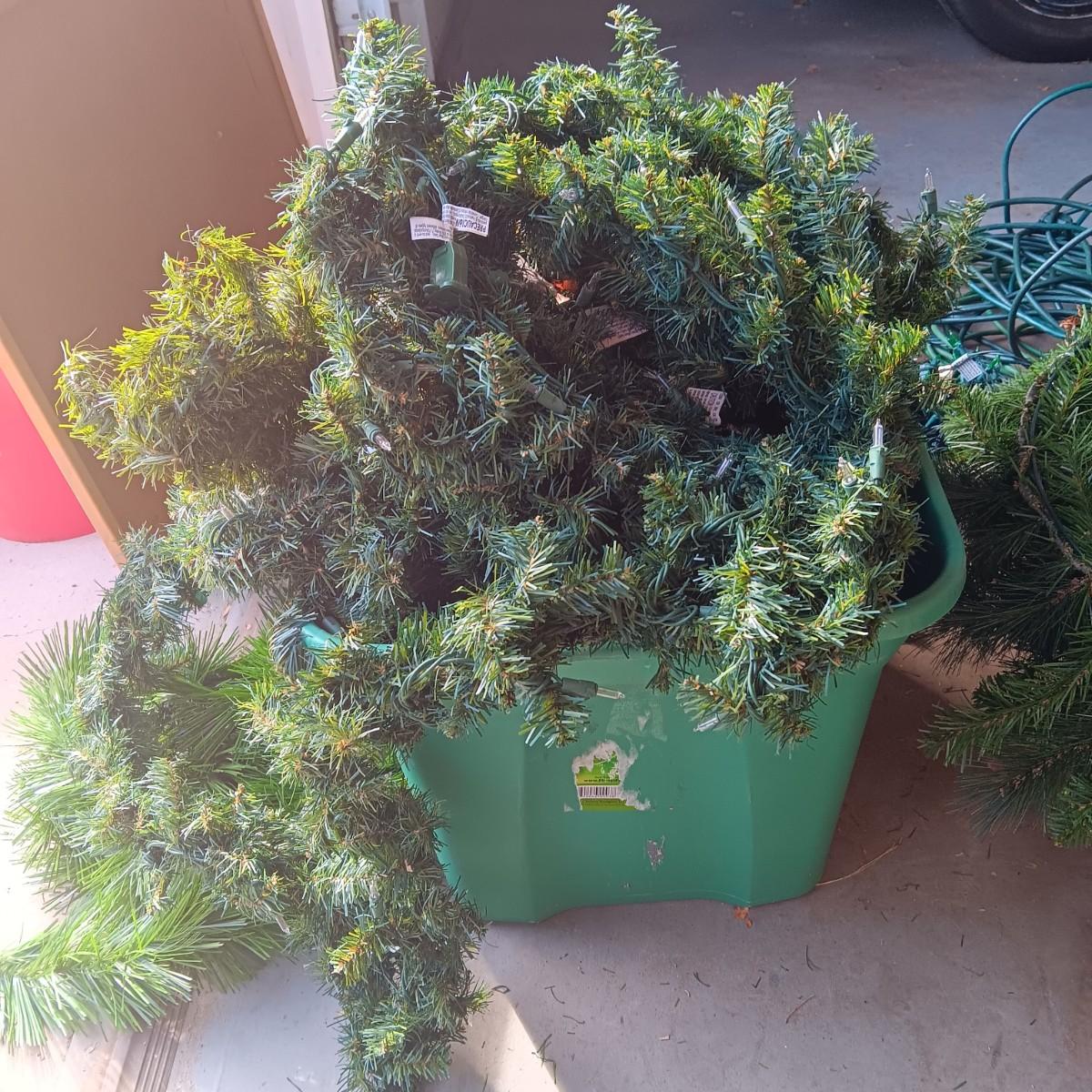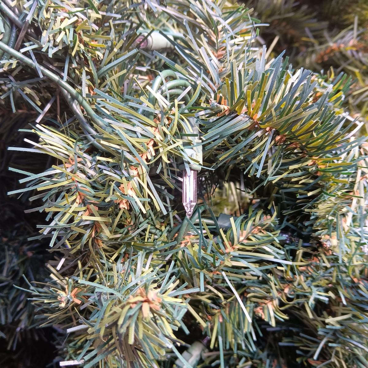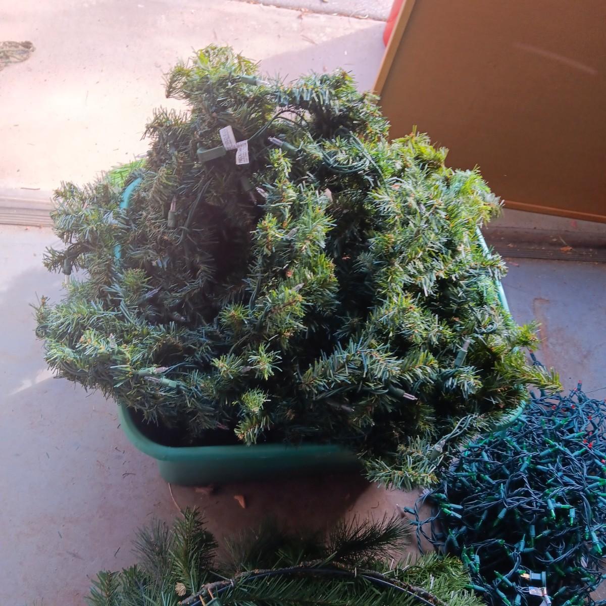 LIGHTED GARLAND AND LARGE WREATH, CHRISTMAS LIGHTS, EXTENSION CORDS AND MORE