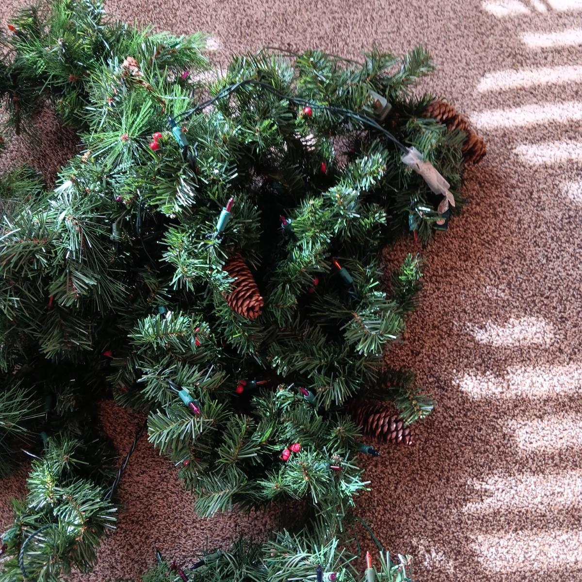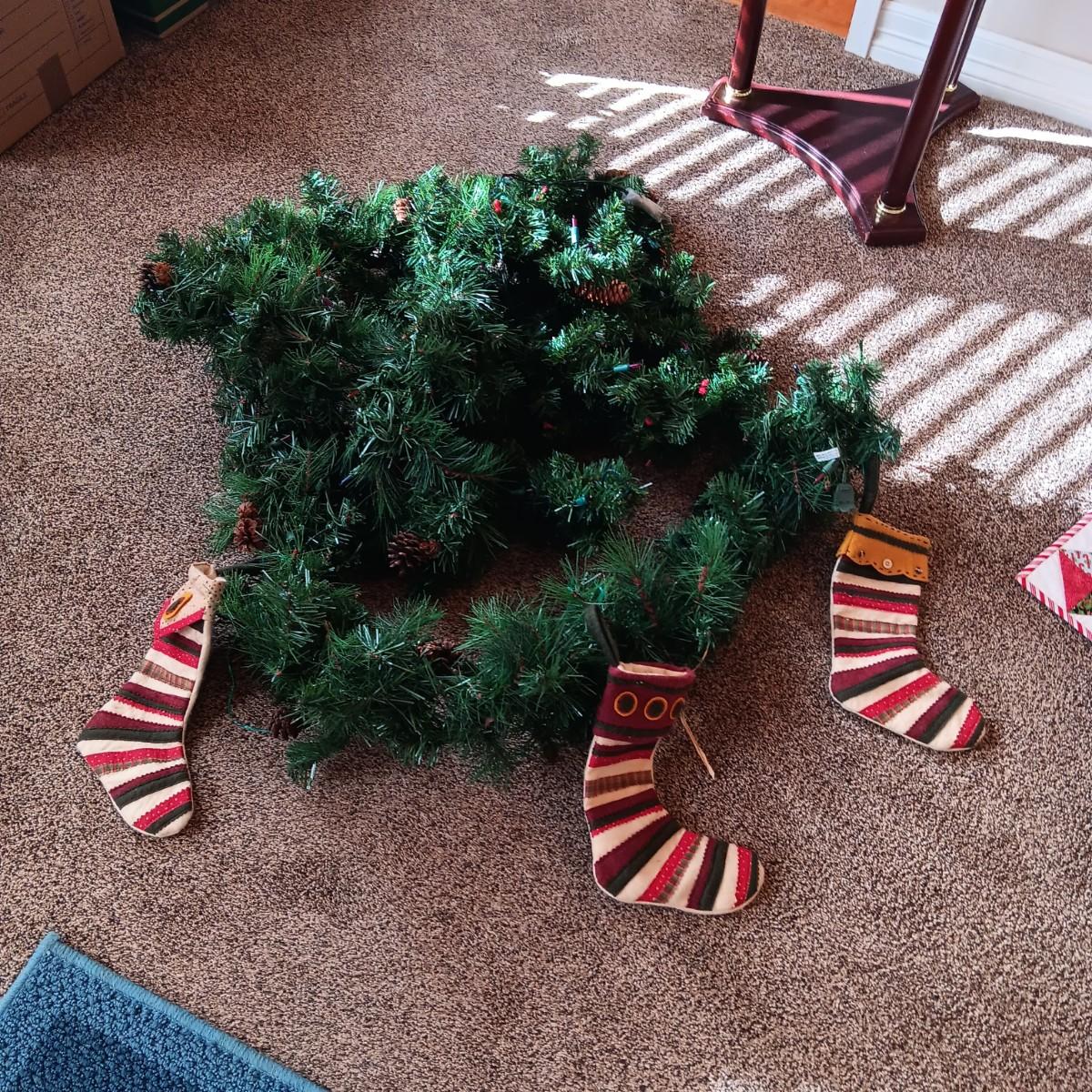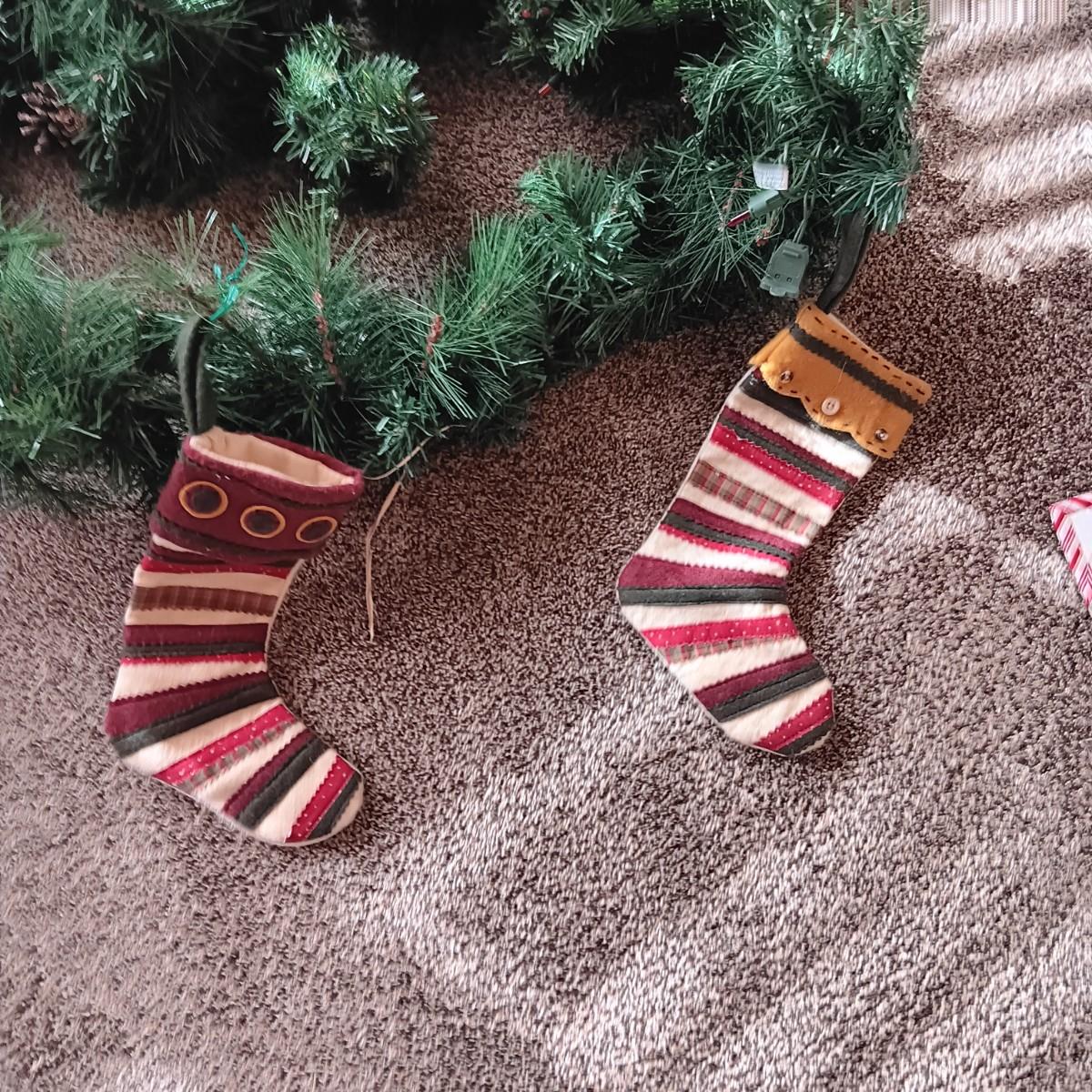 LIGHTED GARLAND WITH PINECONES AND STOCKINGS