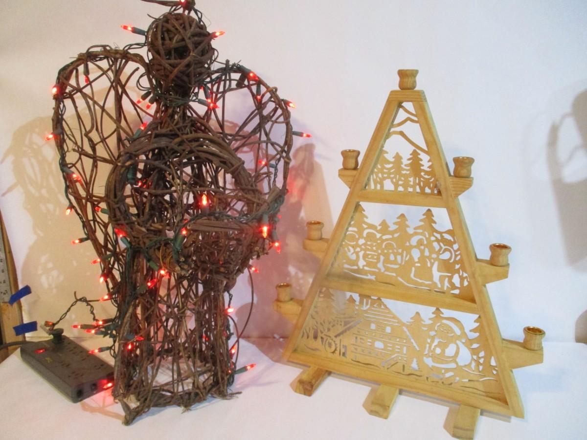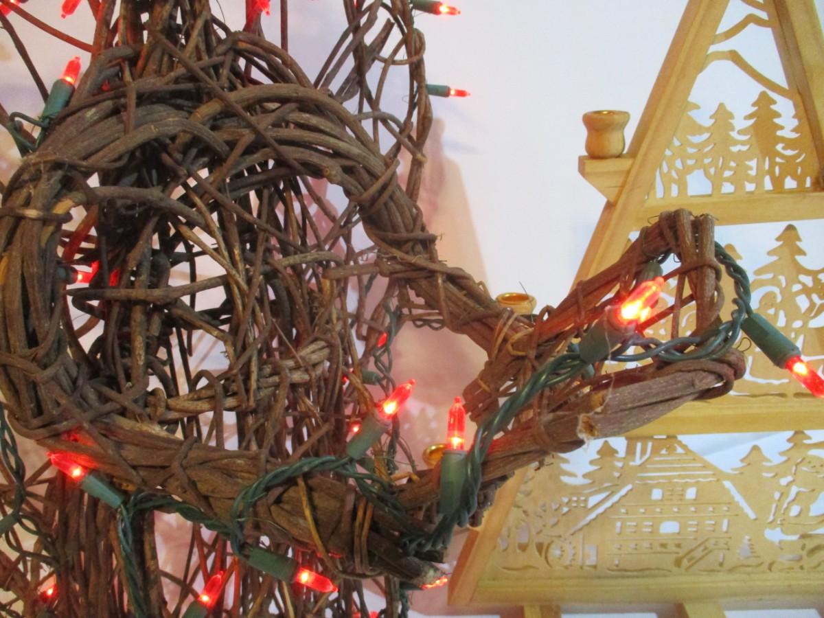 Lighted Grapevine Angel & Candle Arch Christmas Scene