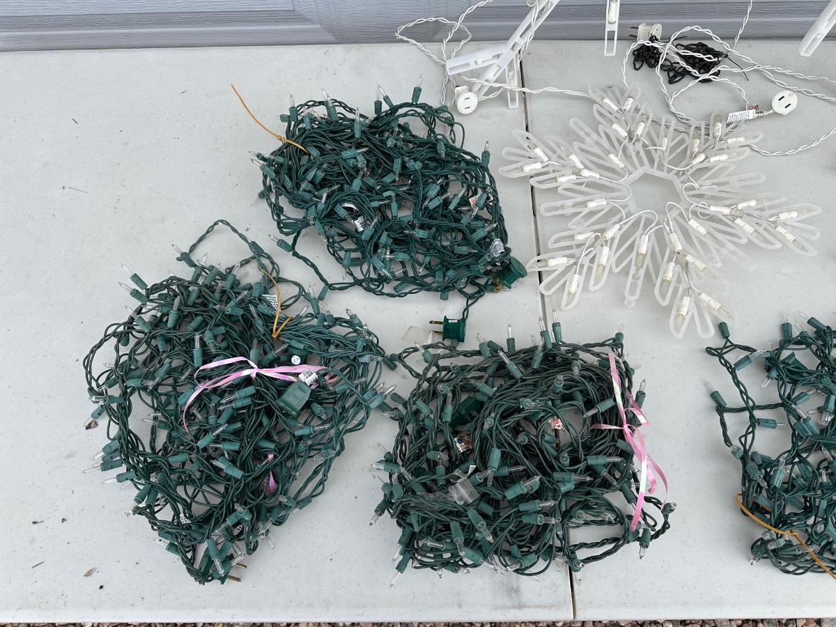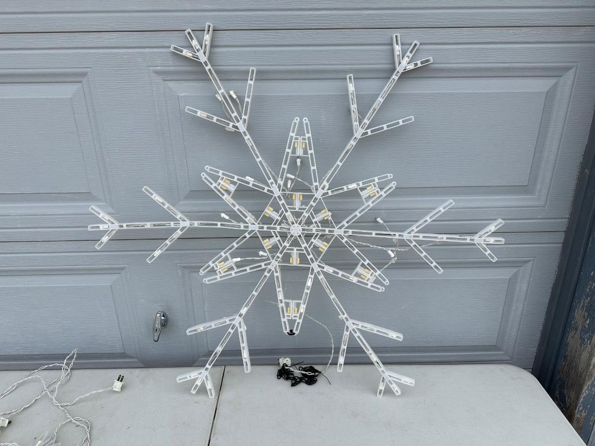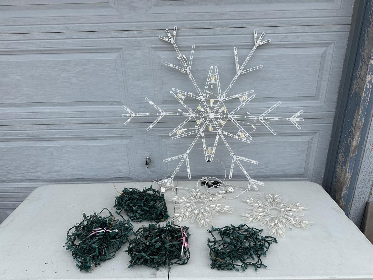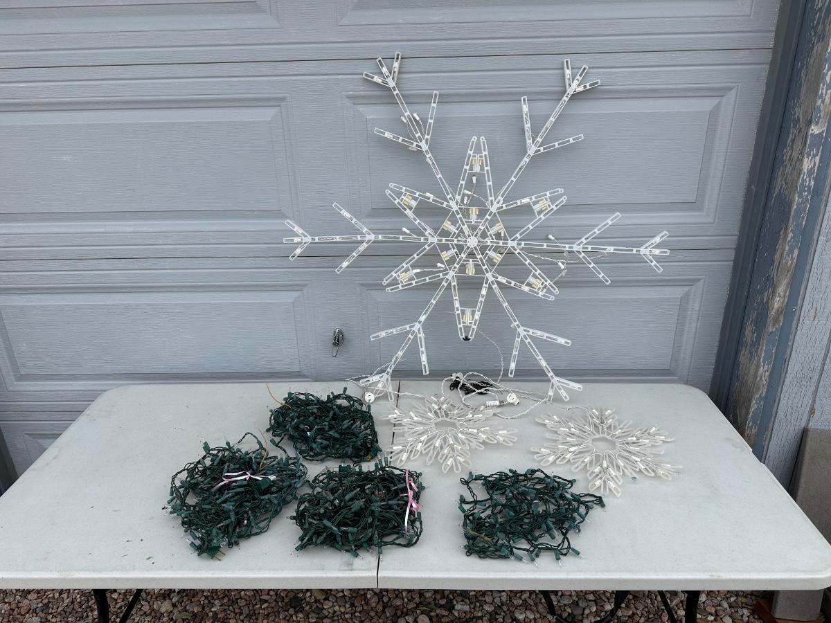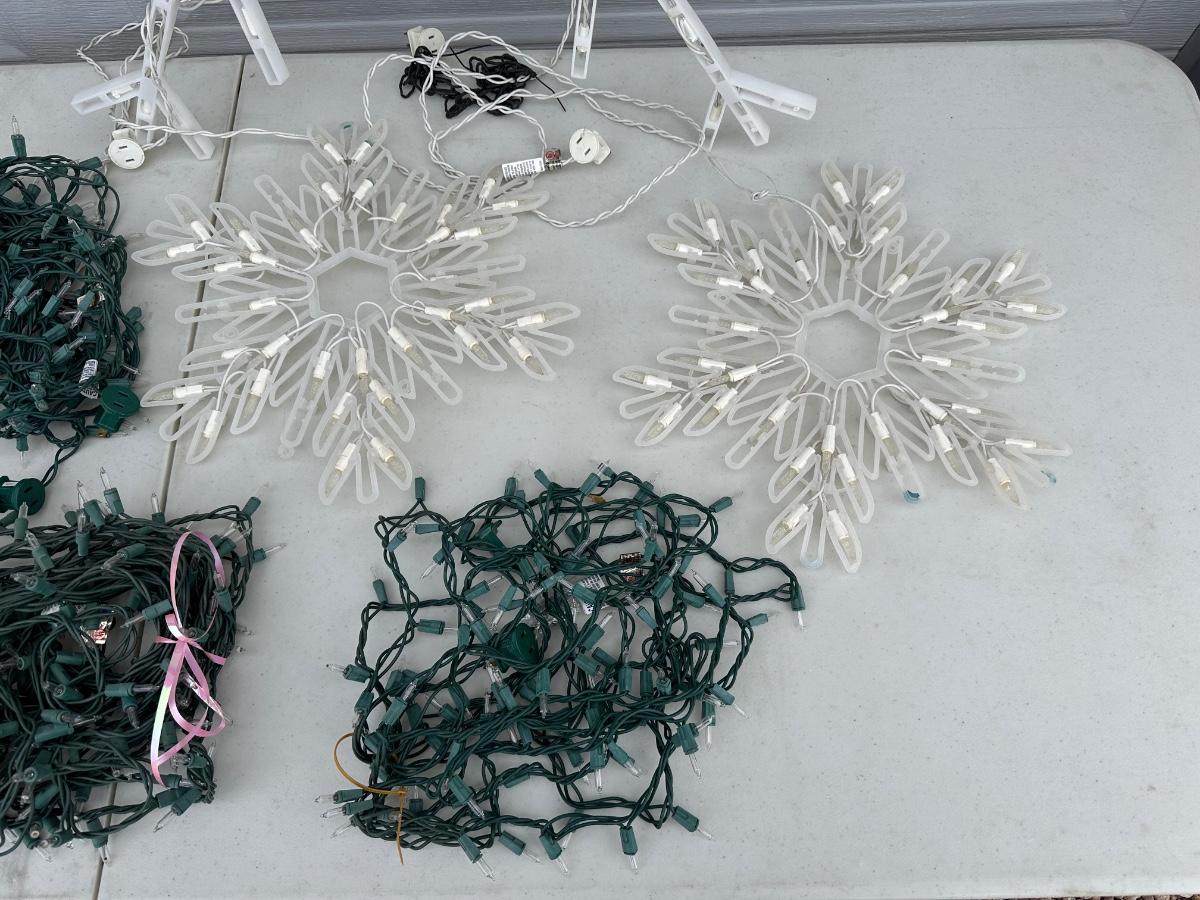 LIGHTED SNOWFLAKES AND STRINGS OF LIGHTS