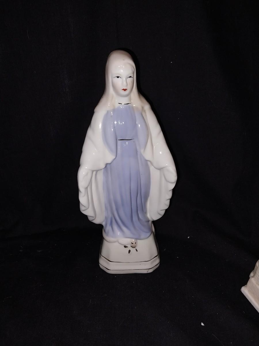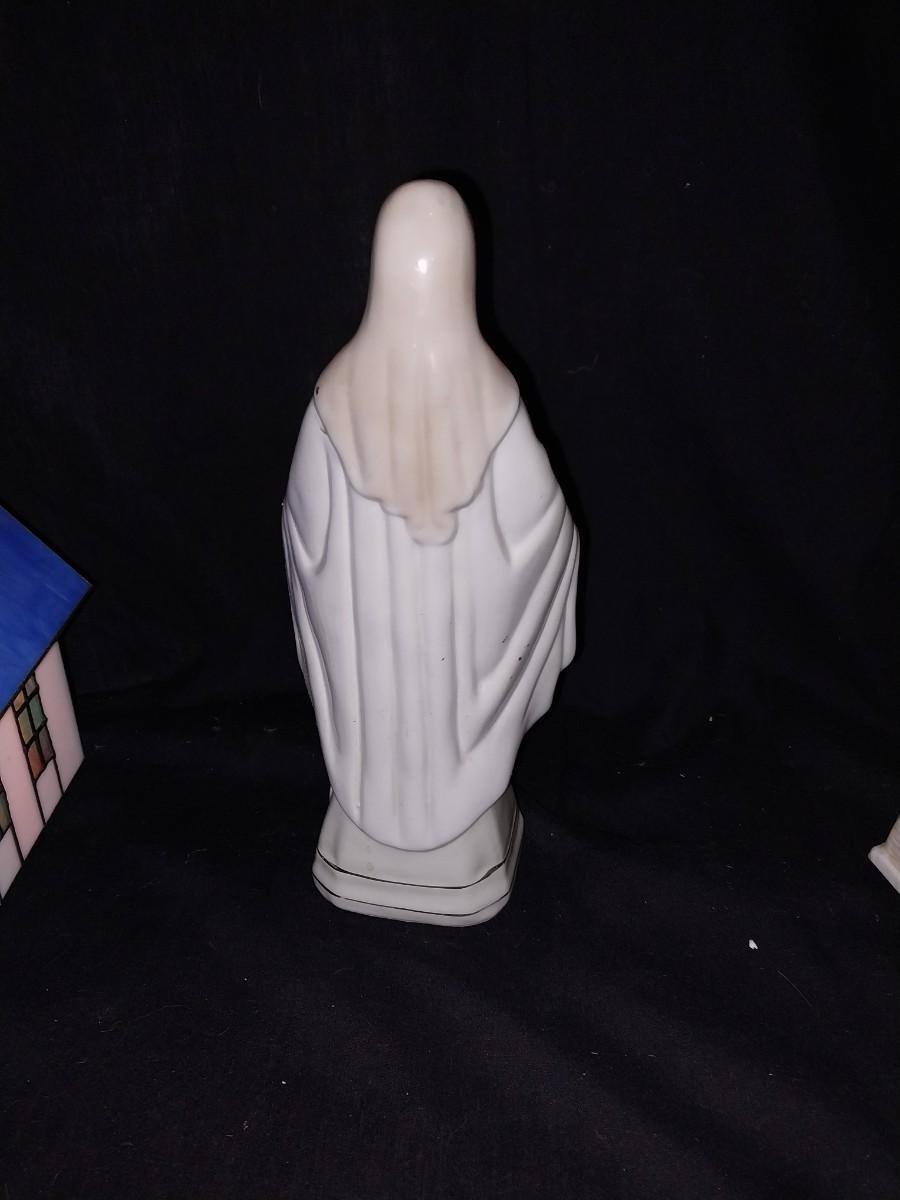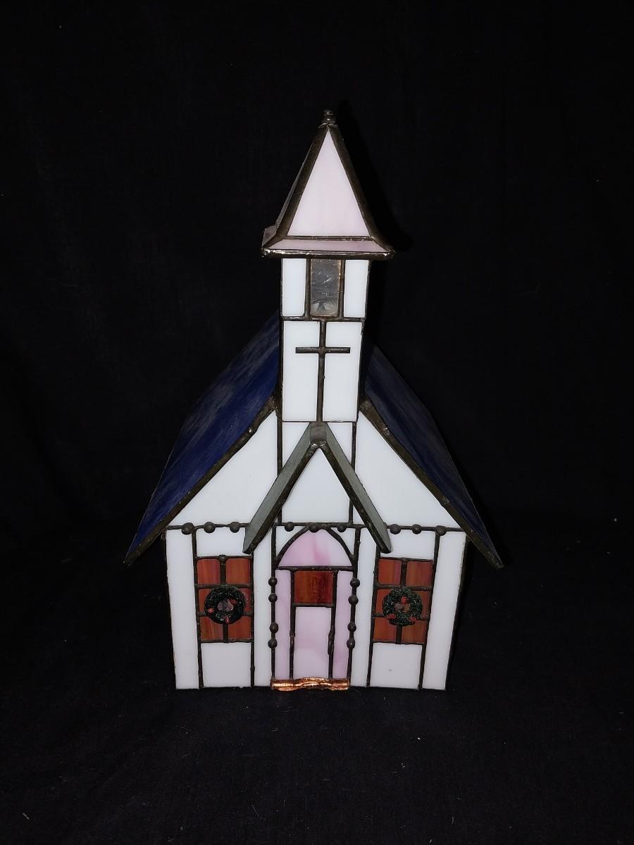 LIGHTED STAINGLASS CHURCH-LIGHTED CERAMIC CHURCH AND CERAMIC MOTHER MARY FIGURINE