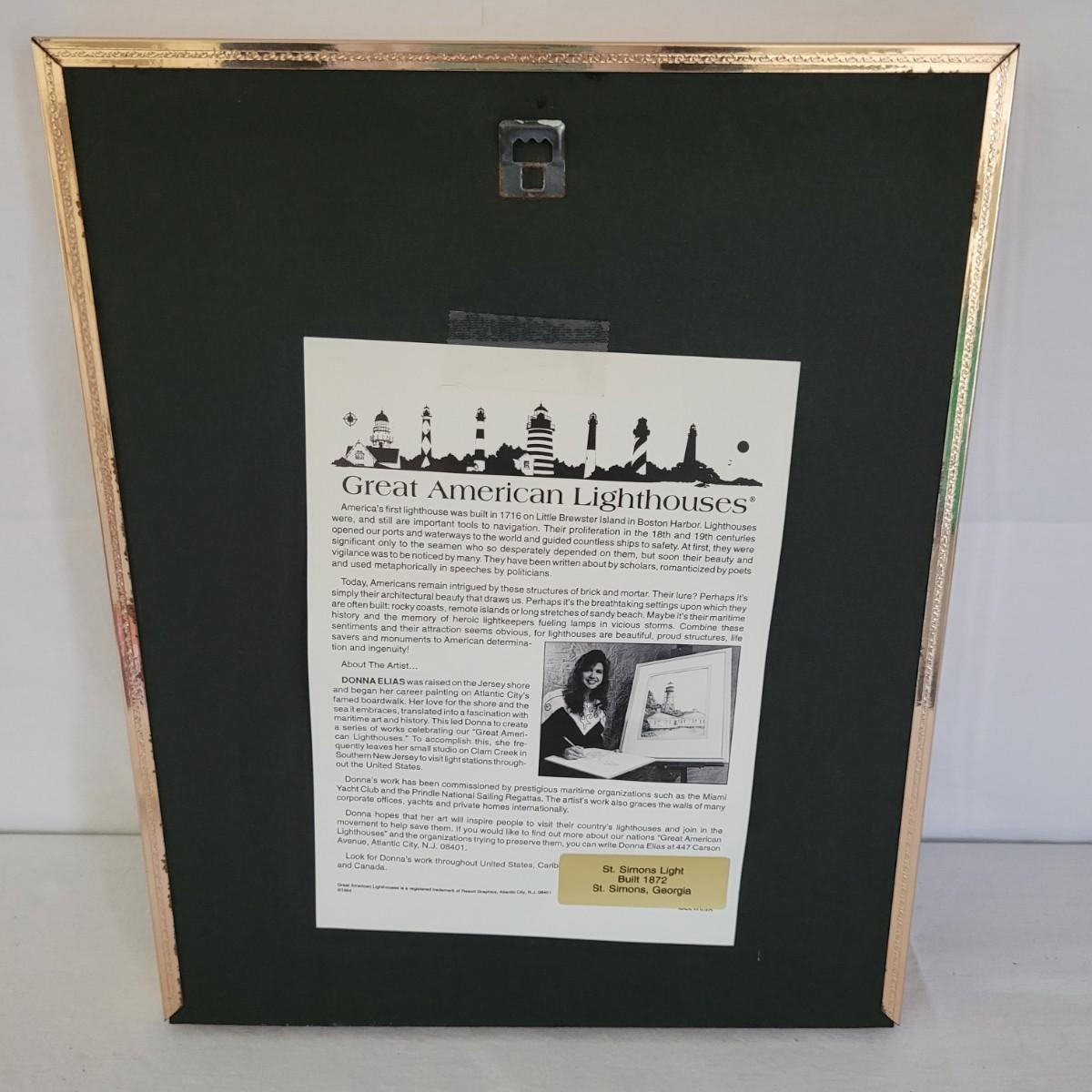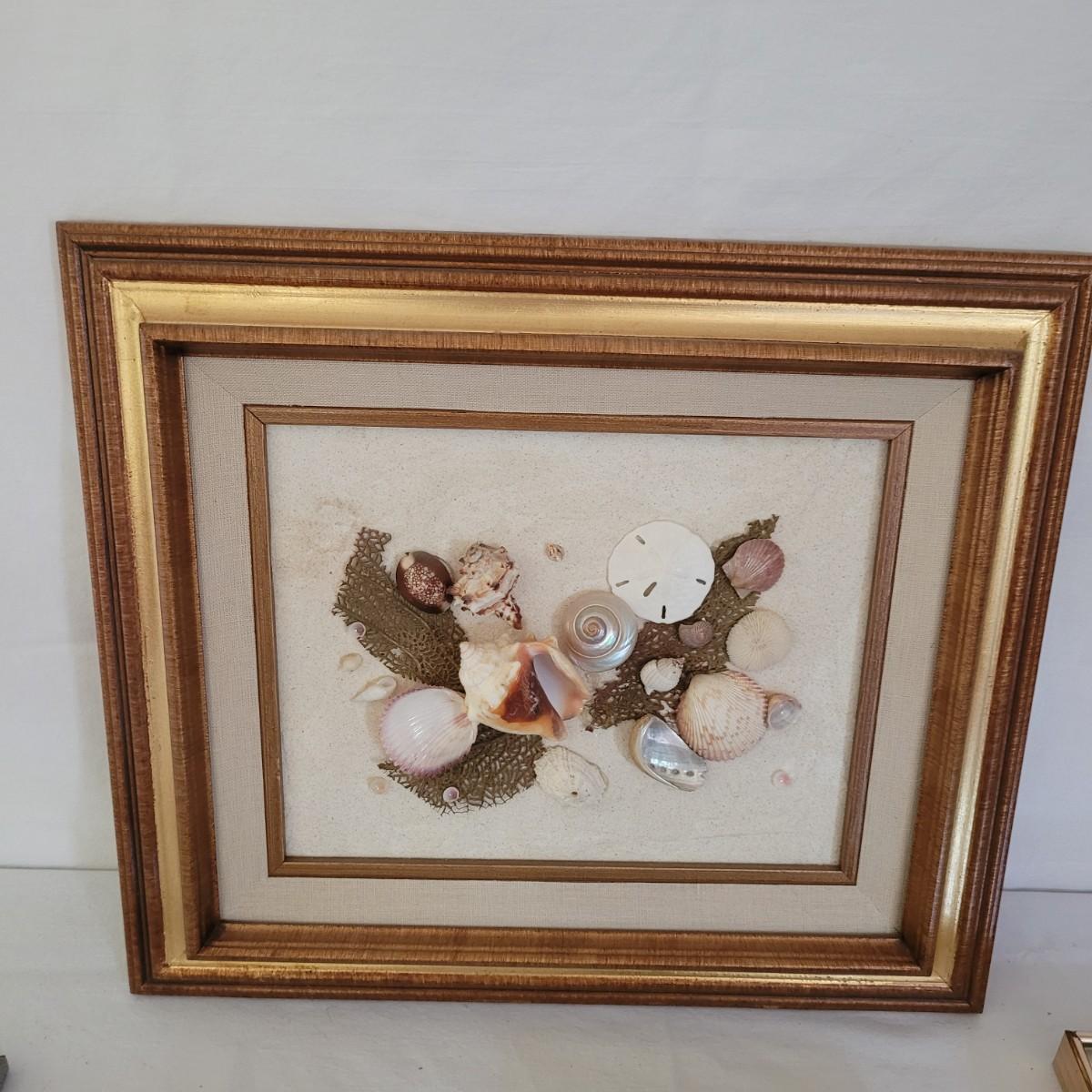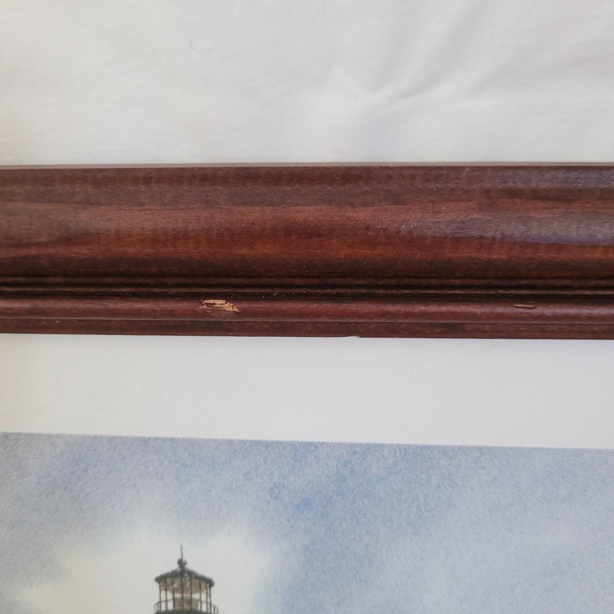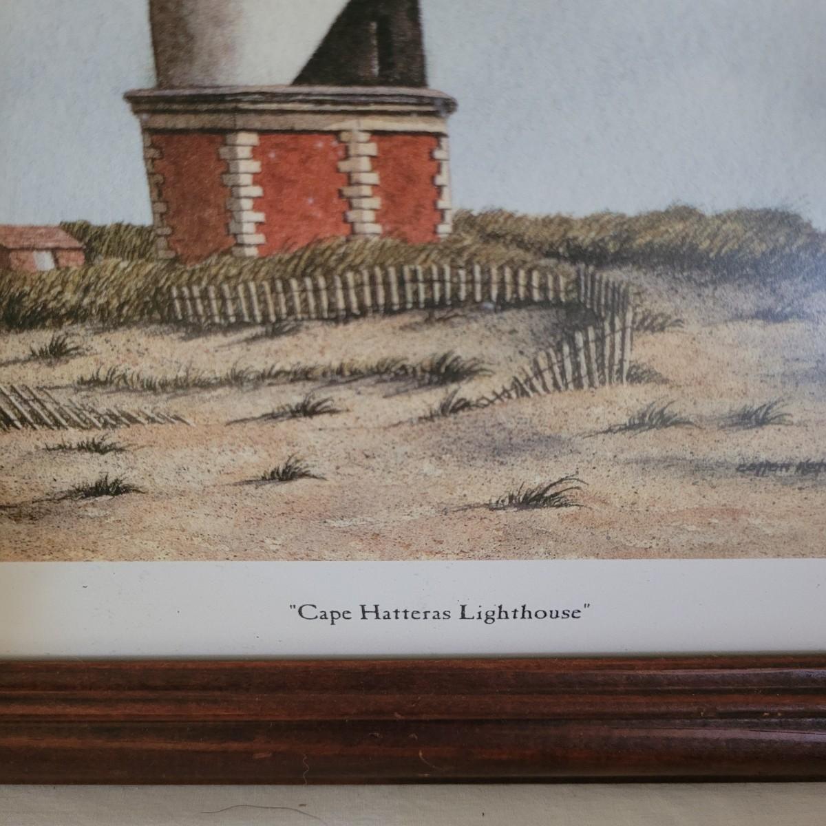 This collection of lighthouse and ocean themed art includes photos from St. Simons Island, Cape Hatteras and New London, CT, as well as a framed display of ocean shells and flora. All pices have wooden frames, except the St. Simons Lighthouse that has a metal frame. Shell artwork measures approximately 15” x 13.” Shipping available.
