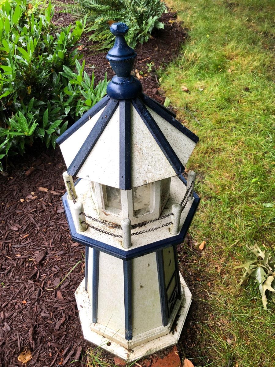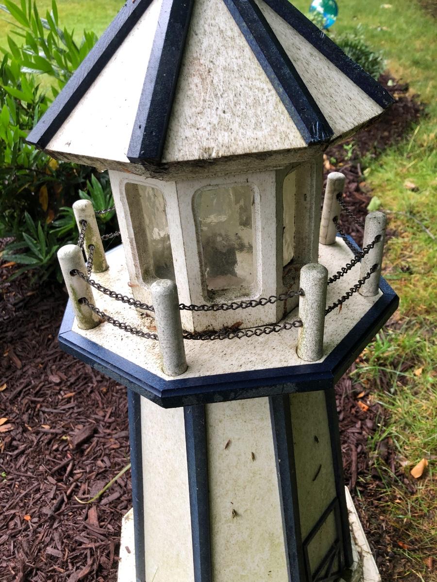 As always - NEVER A BUYER'S PREMIUM - NO CREDIT CARD FEES - All items start at $10 and are being auctioned with NO RESERVES to the high bidder. Has damage from squirrels in multiple places. On the top and bottom appear to be chew marks. This lighthouse does not have electrical for lighting.