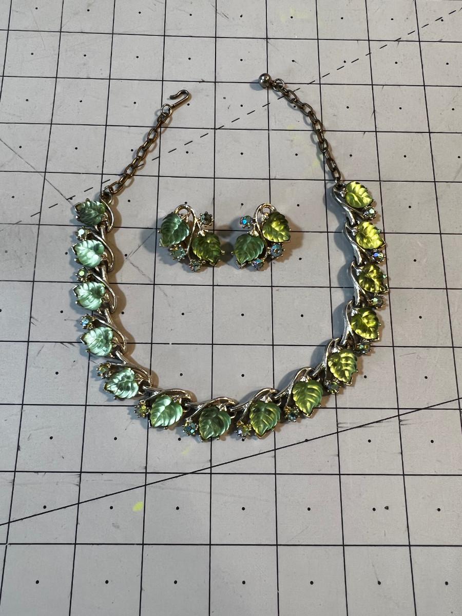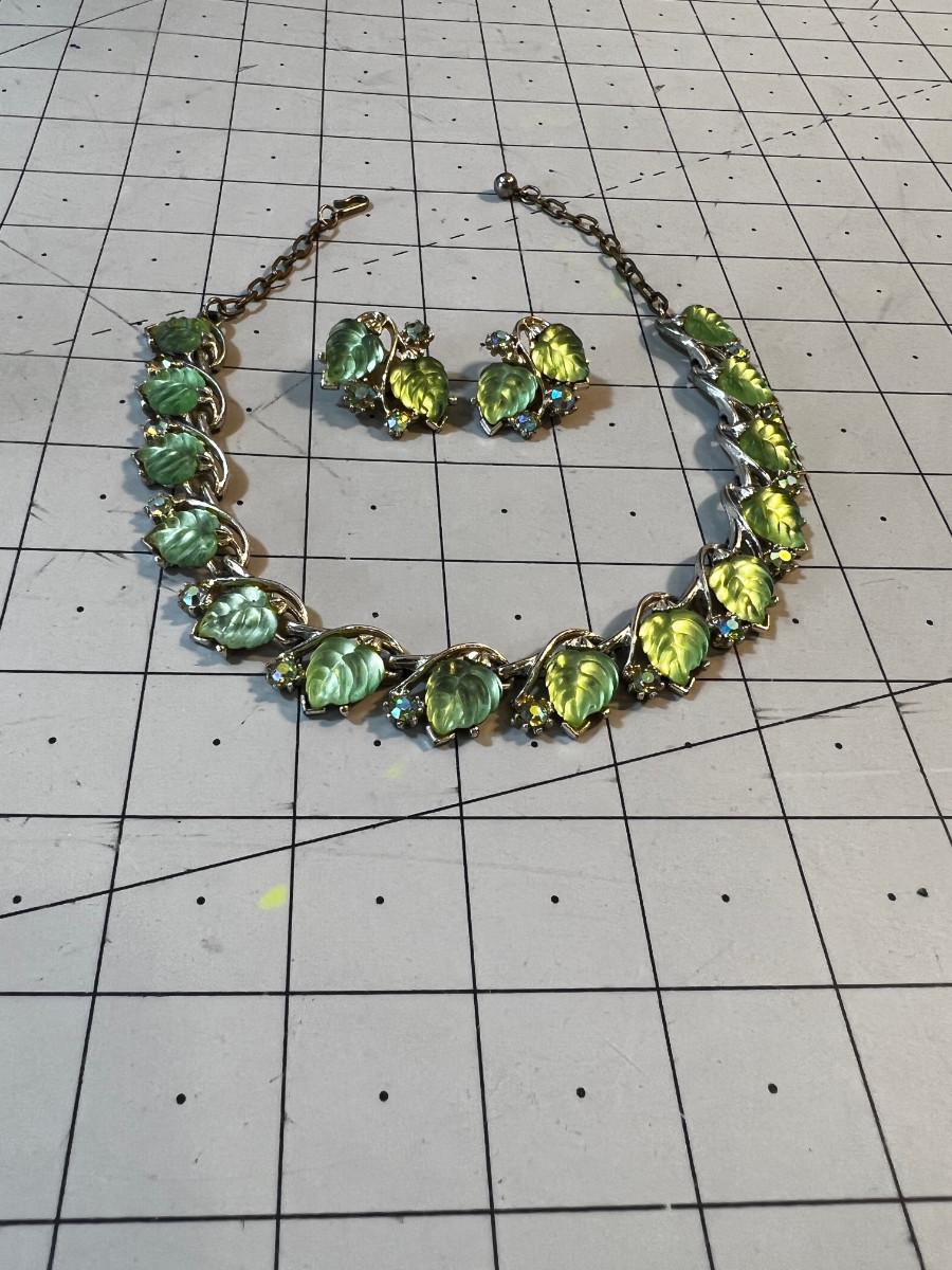 Light-Lime Green Bejeweled Chocker Vintage Costume