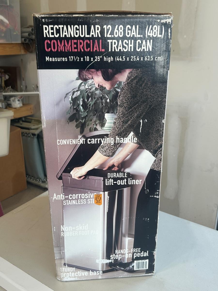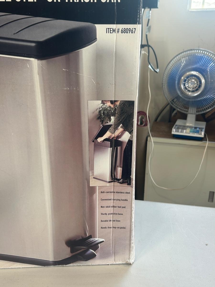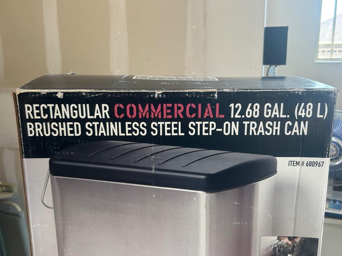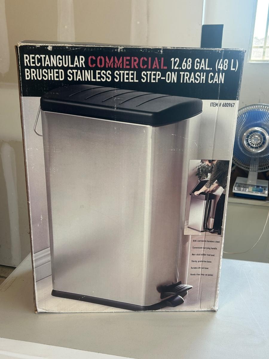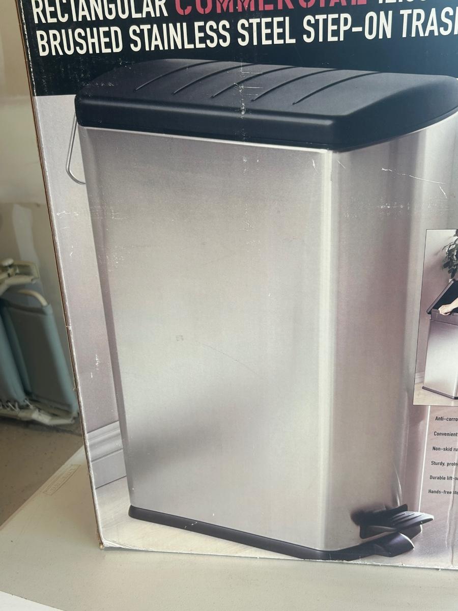LIGHTLY USED SEVILLE BRUSHED STAINLESS STEEL STEP ON TRASHCAN