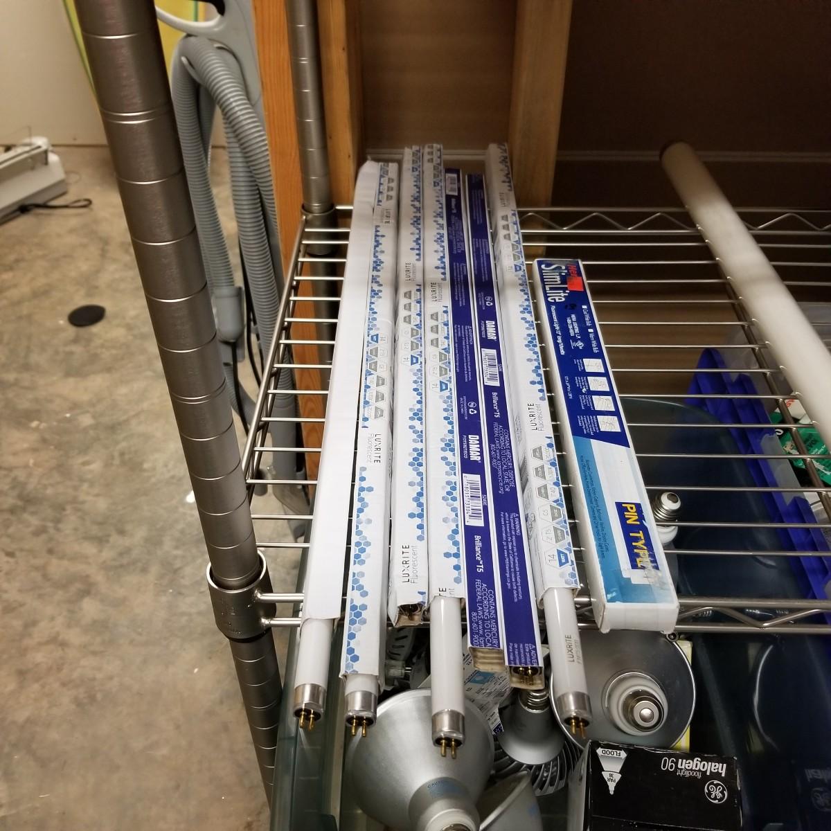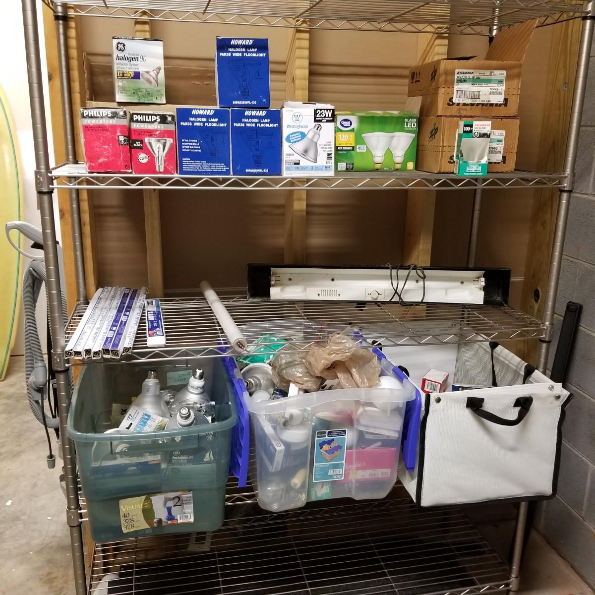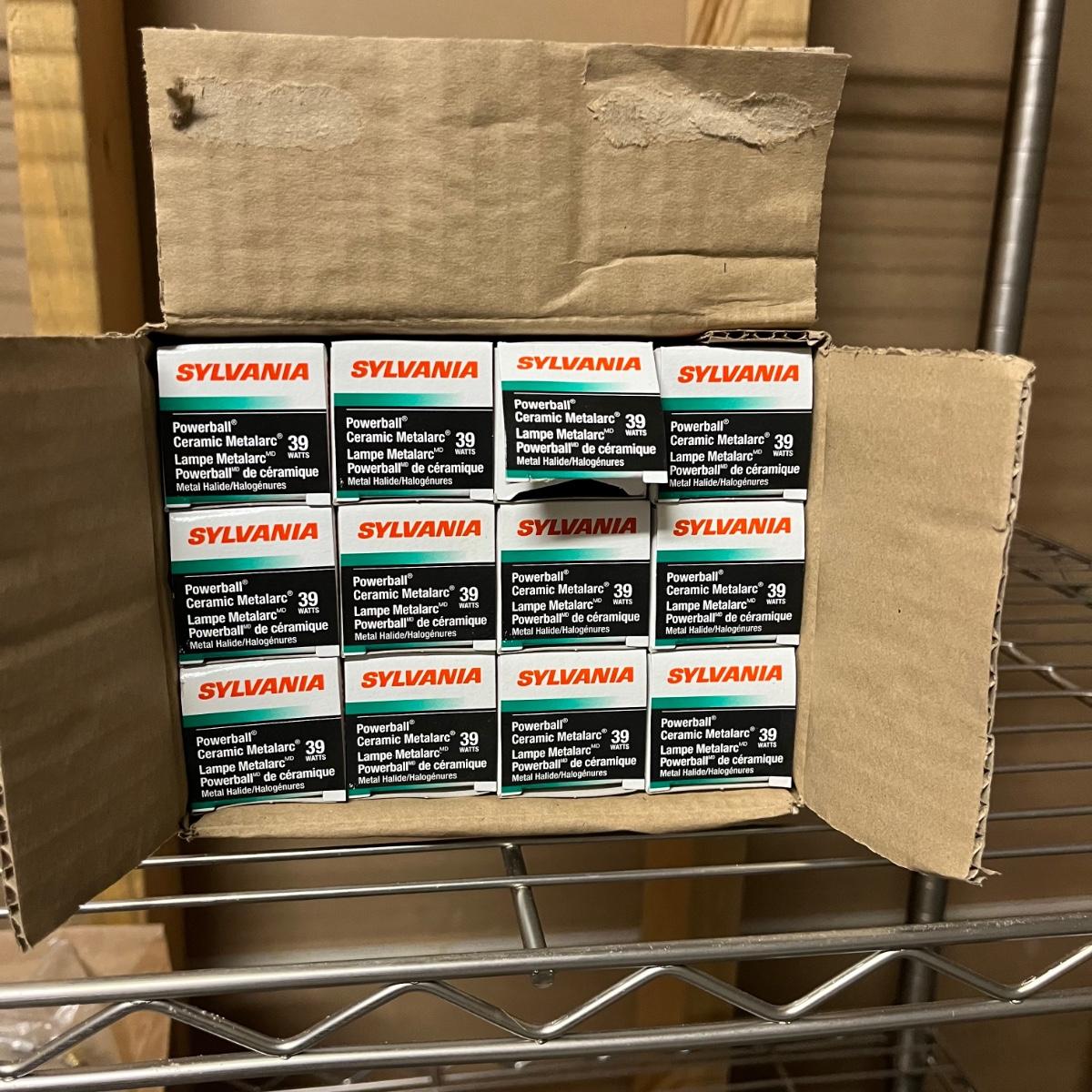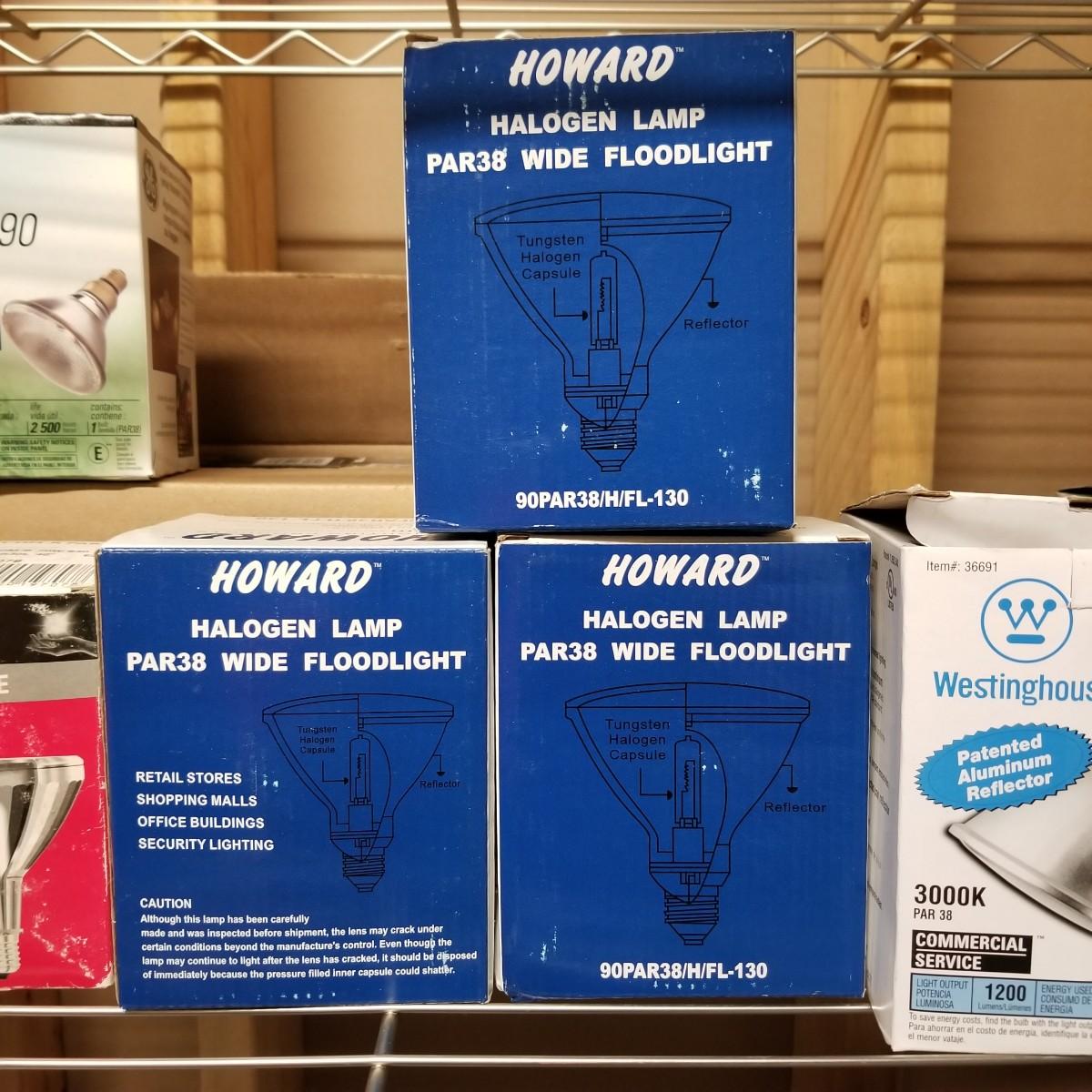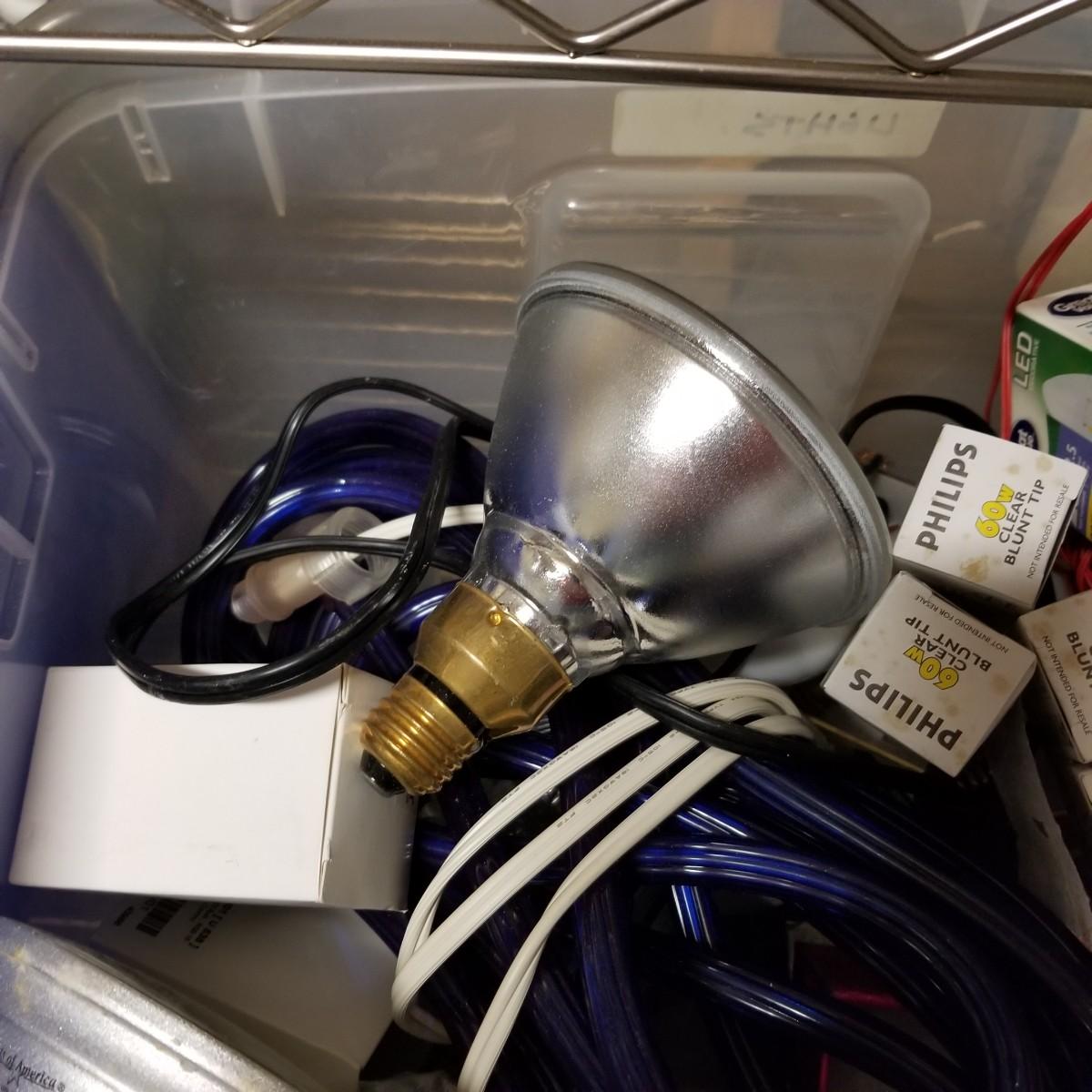 Floodlights, halogen bulbs, fluorescent tubes, incandescent bulbs, CFL bulbs. Hundreds of assorted bulbs in various wattages. Some candelabra base bulbs as well as standard size. One undercabinet fluorescent fixture, untested. See photos for details. We cannot guarantee that all lights function. Also includes fifteen Havells flood lights and twelve Sylvania Metalarc bulb T6. Local pickup only.