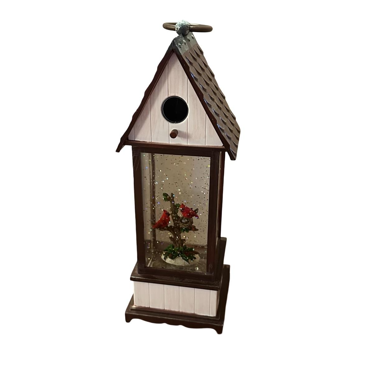 Light-Up "Birdhouse" Snow Globe Decor with Cardinals- Tested/Works