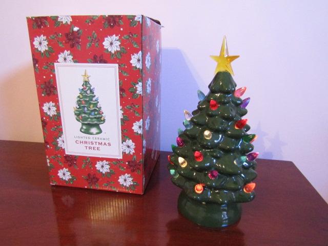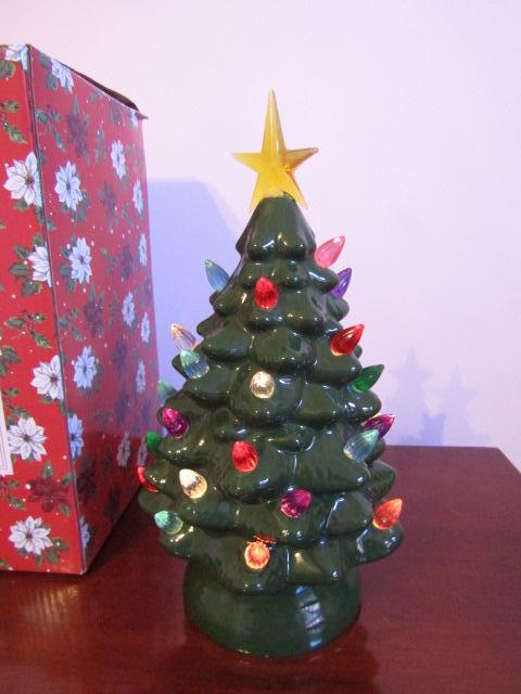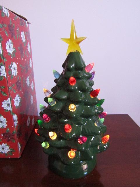Light-up Ceramic Christmas Tree from Vermont Country Store. 10 inches high.