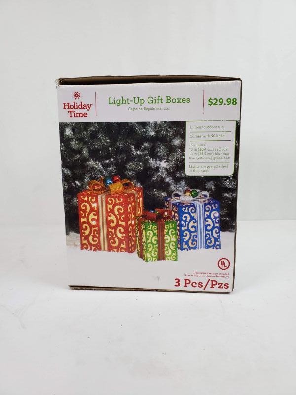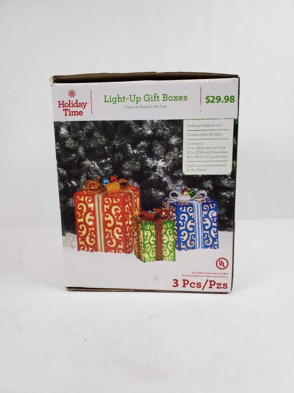 Light-Up Gift Boxes, Holiday Time, Indoor/Outdoor use, 3 Gift Boxes