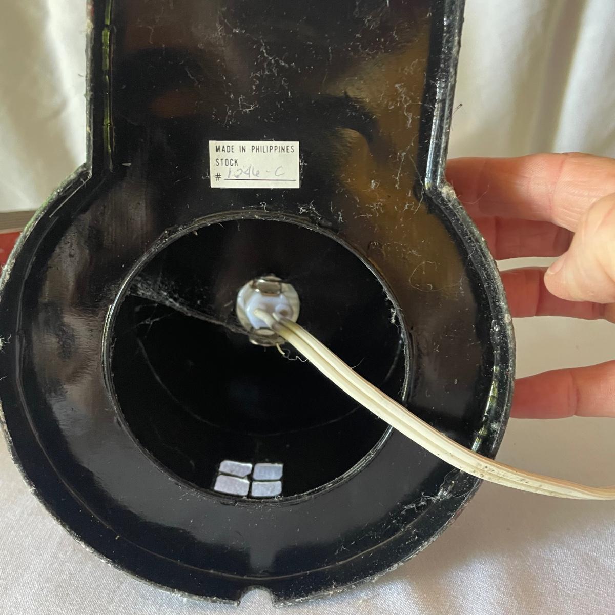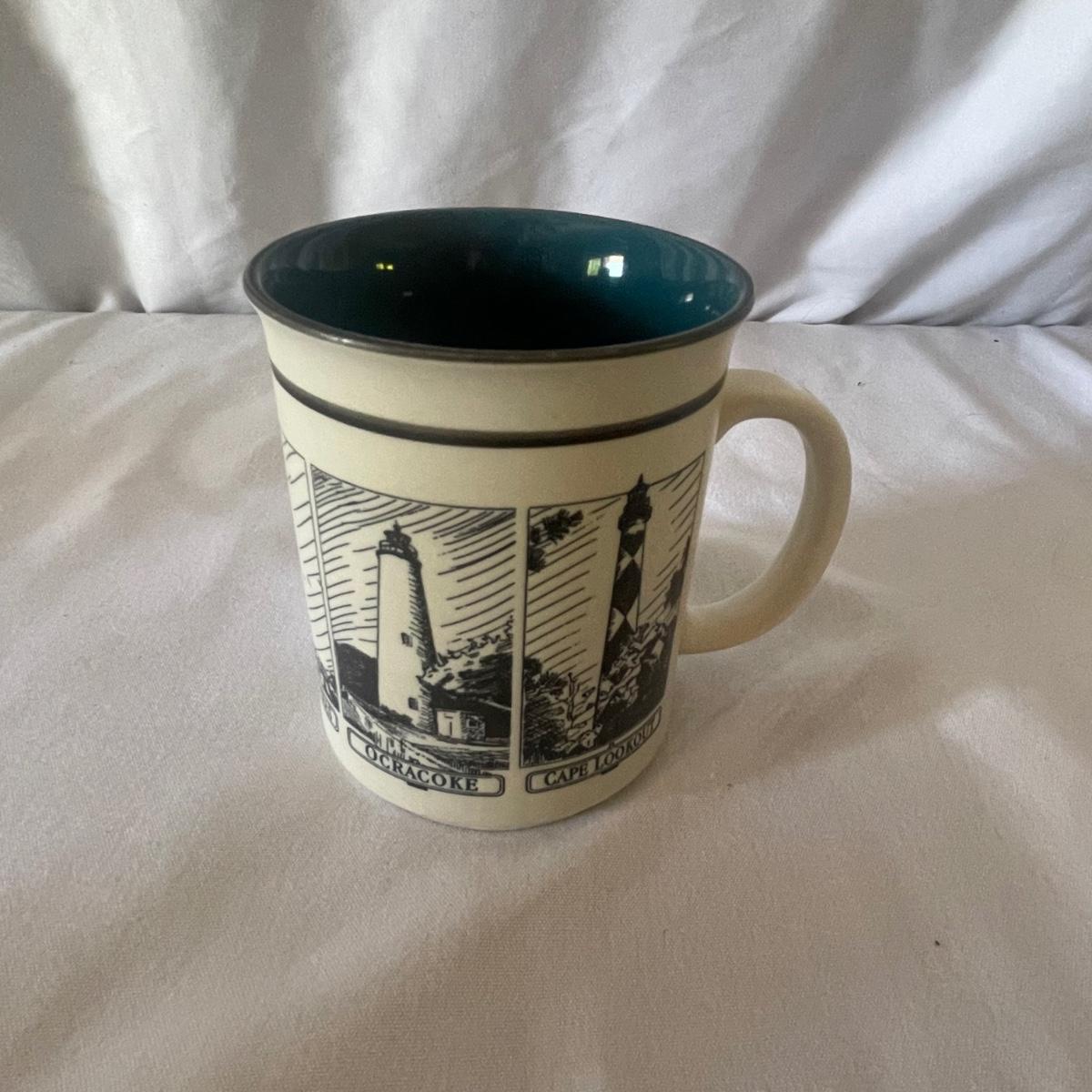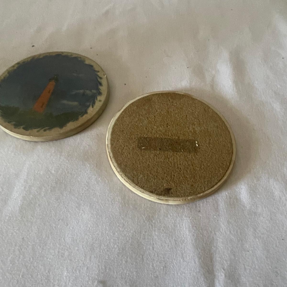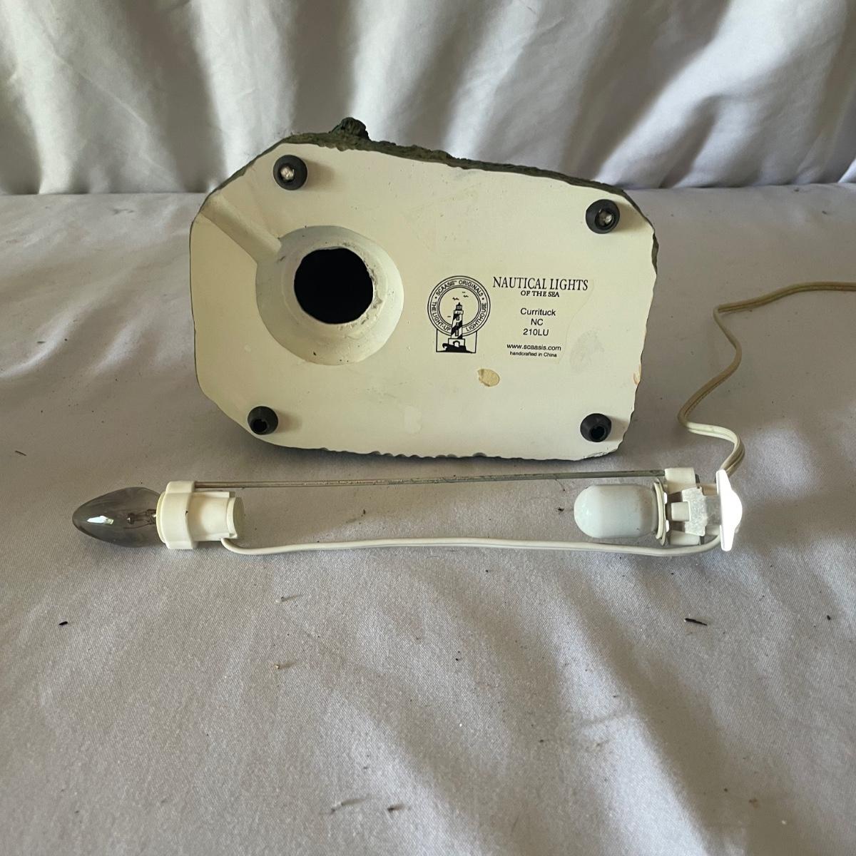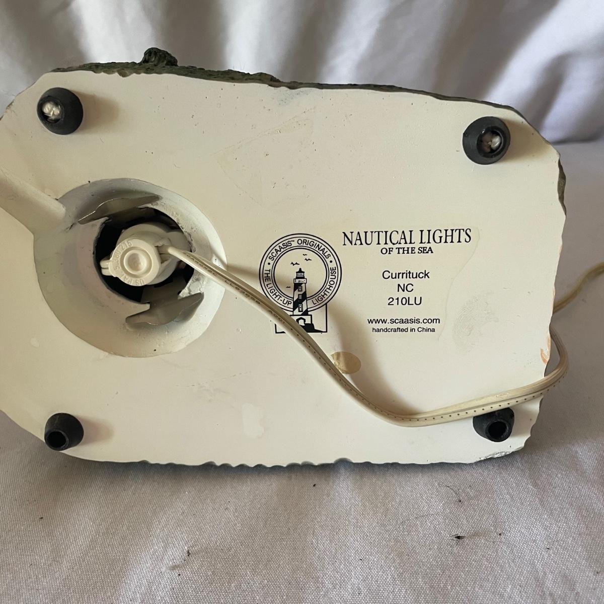 The largest of these 3 lighthouses, which is metal, worked when tested. The other’s did not. They are made of a resin type material. 4 ceramic coffee cups and 2 coasters also included.