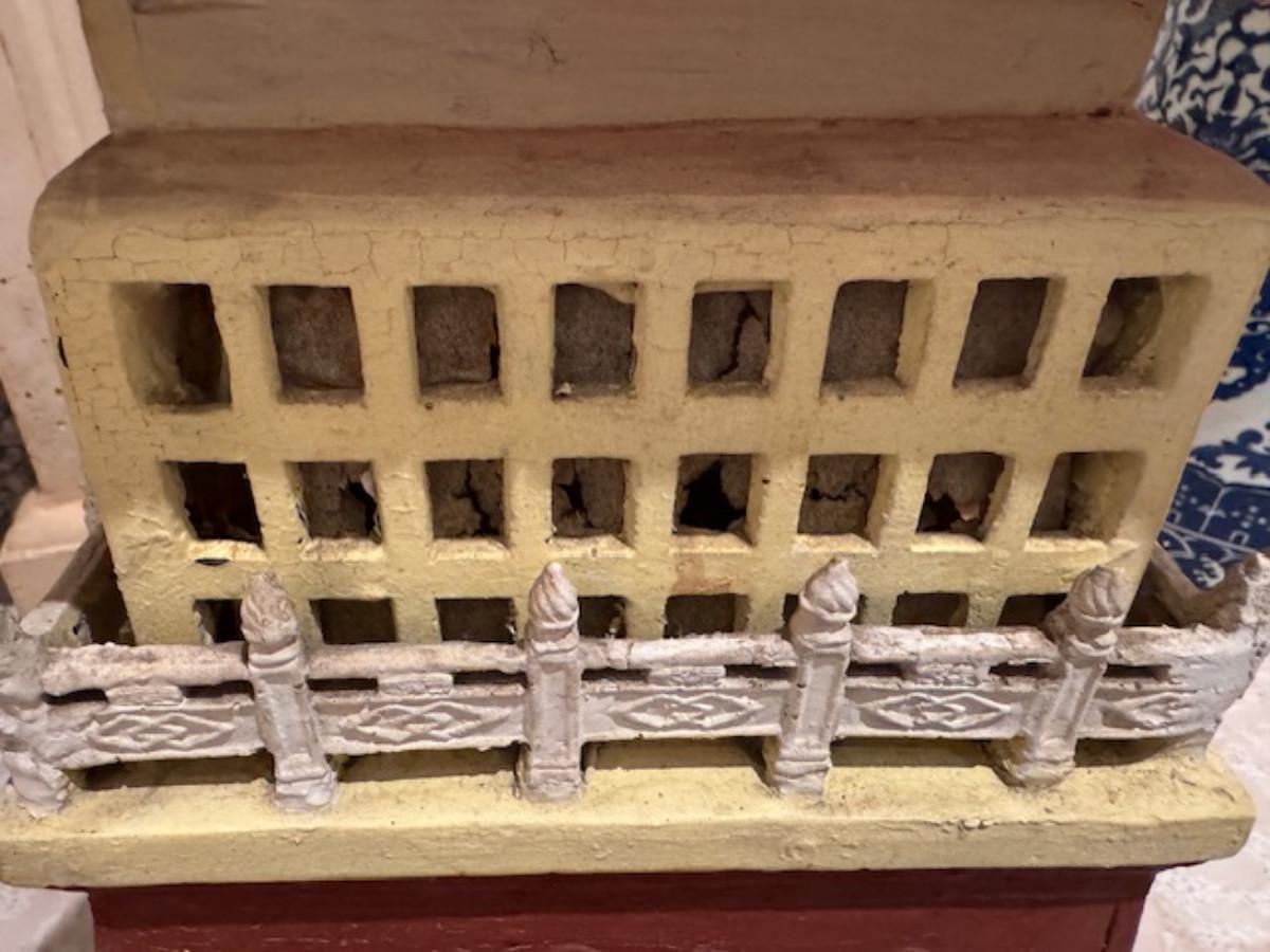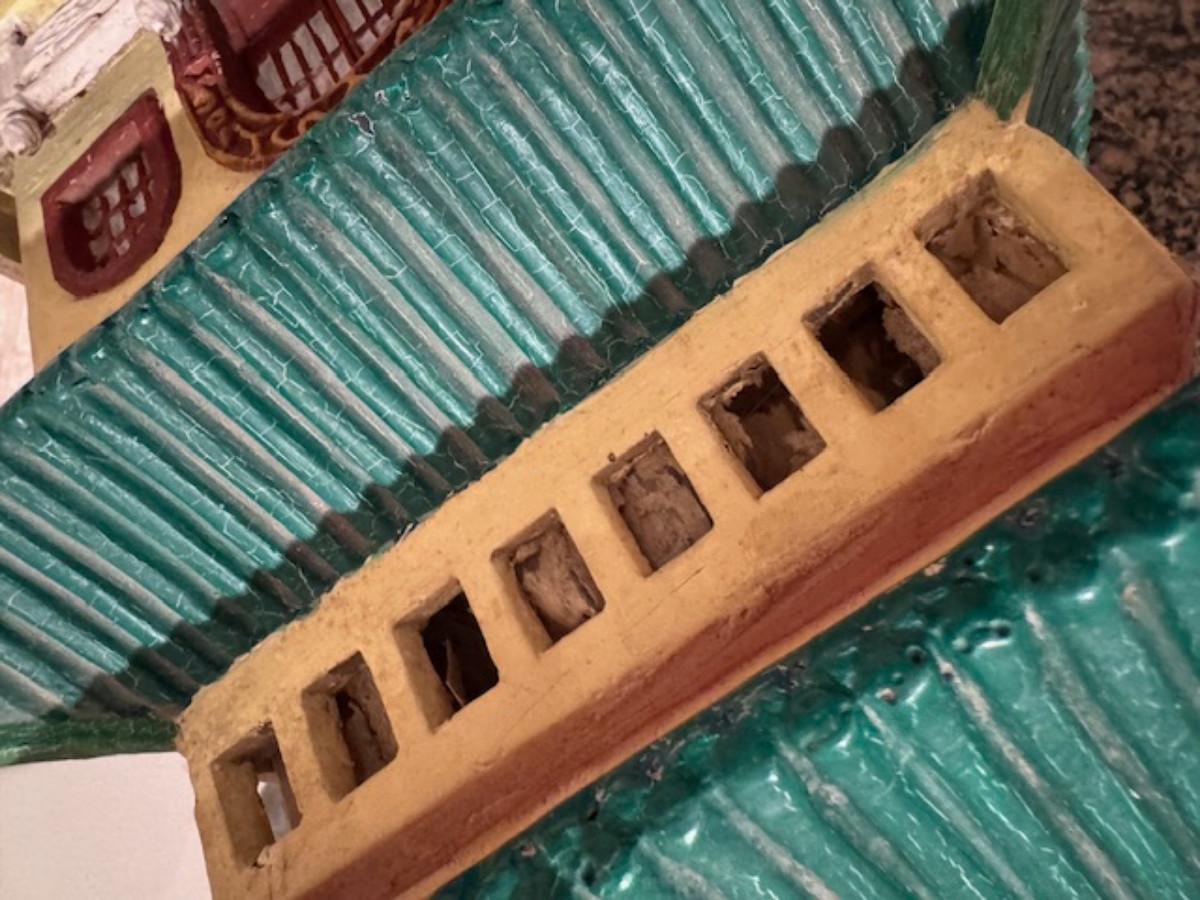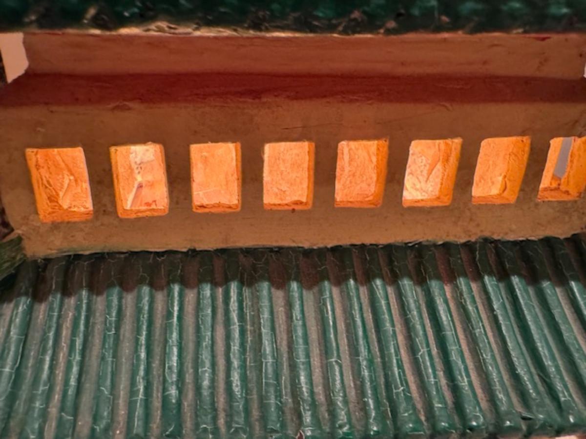 Some pieces have been glued on - as found and a lot of the paper windows are punched through.