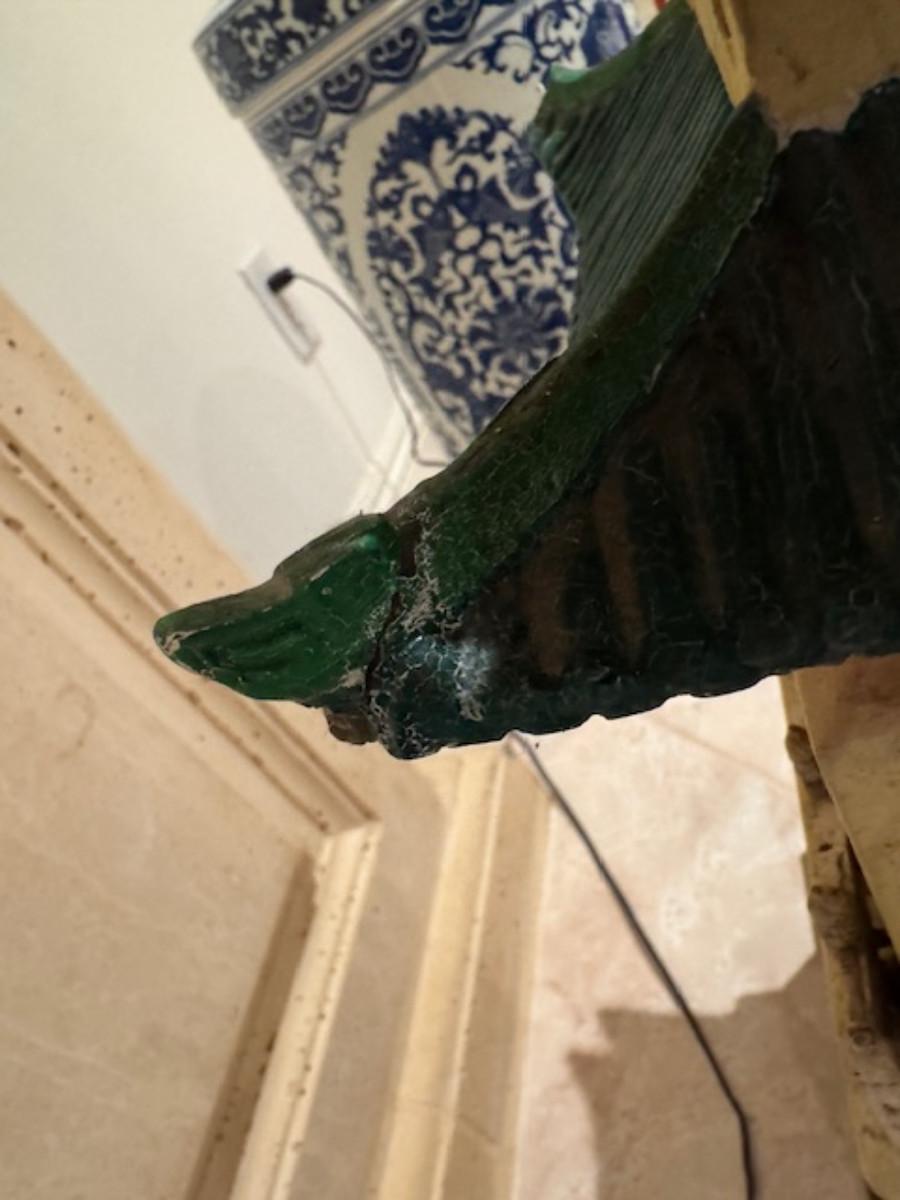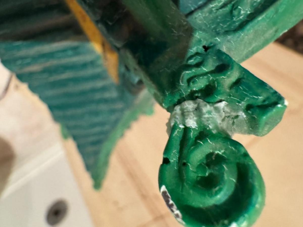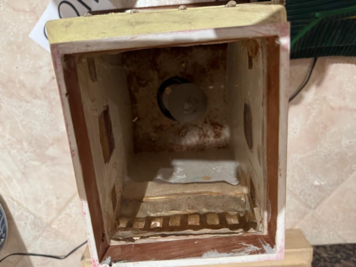 Some pieces have been glued on - as found and a lot of the paper windows are punched through.