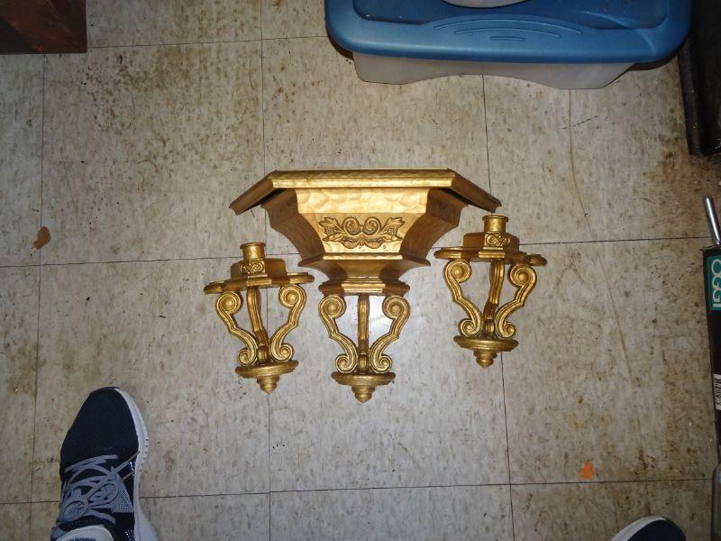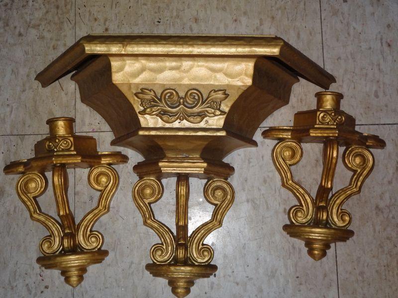 Lightweight Homco Like Plastic Wall Sconce Candle holders and Mini Shelf