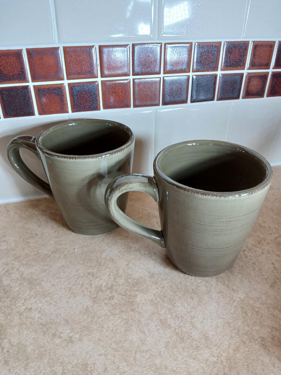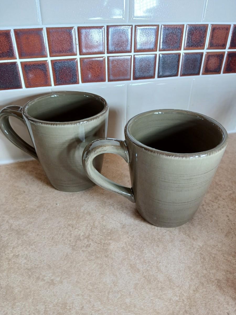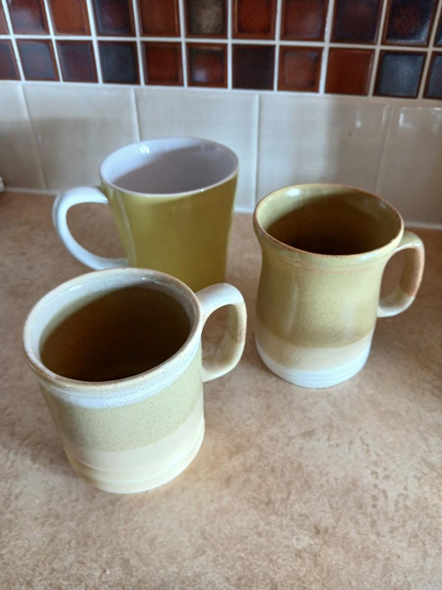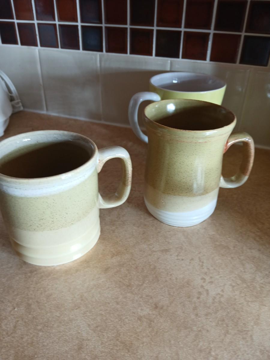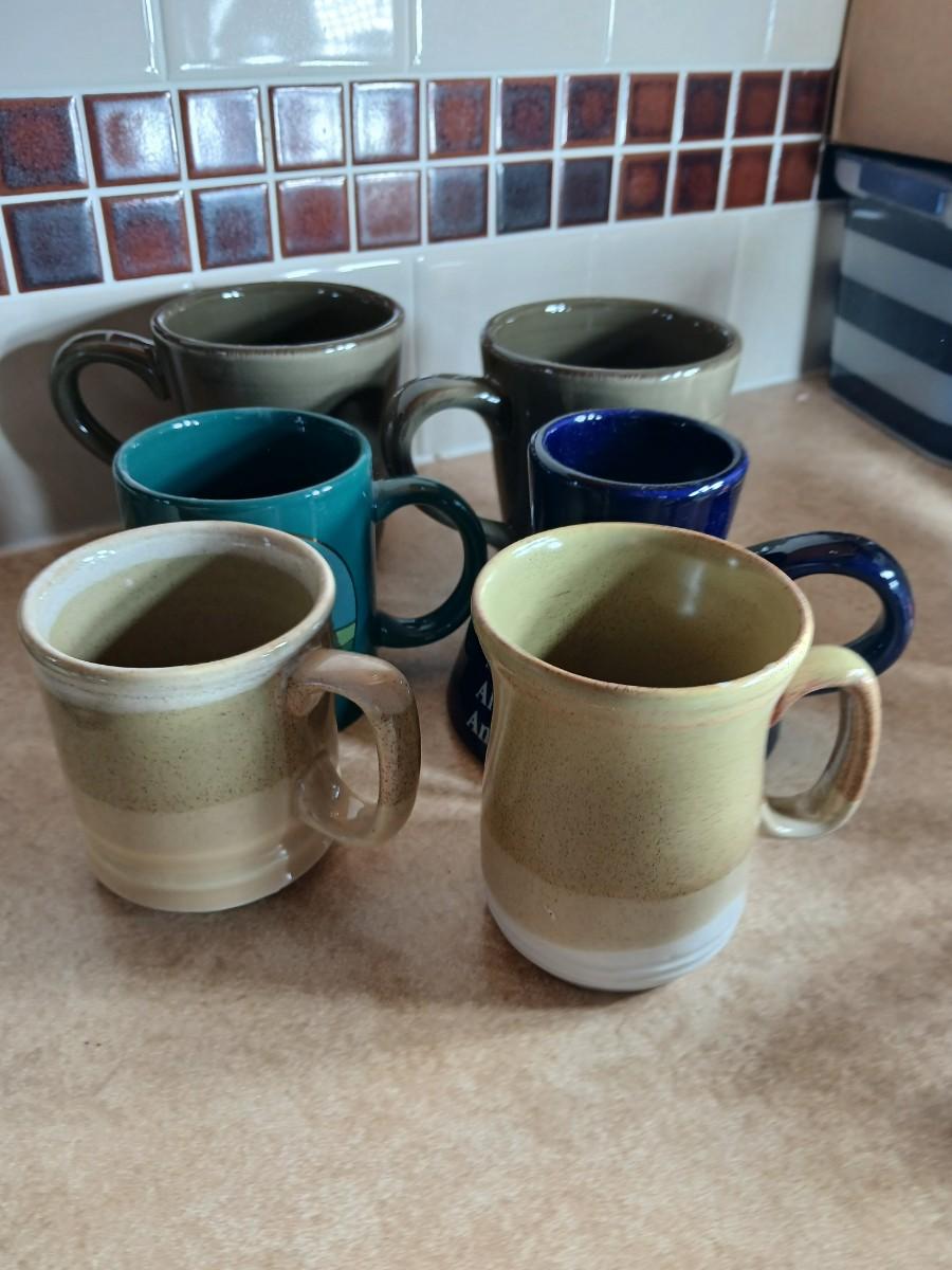 Like new 12 cup Hamilton beach coffee maker with all these coffee mugs sugar & cream dishes too! Model 791