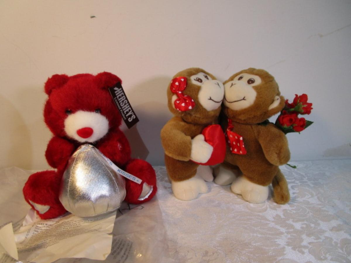 Like new 2 kissing monkeys, new in pkg. Hersheys Kiss bear