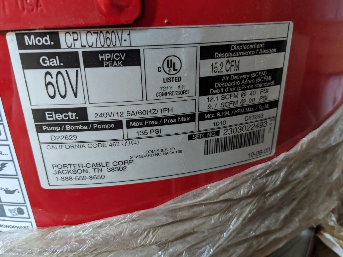 New 60 Gal Porter Cable 135 PSI Air Compressor