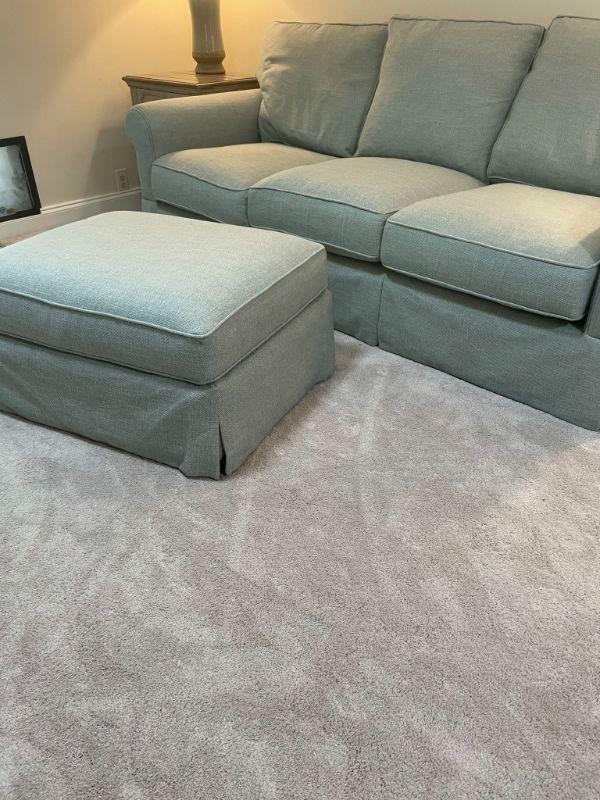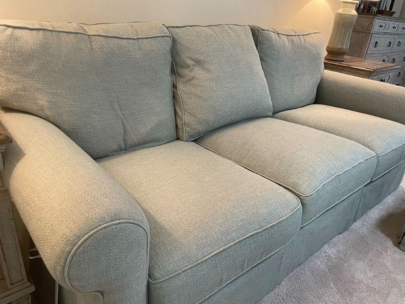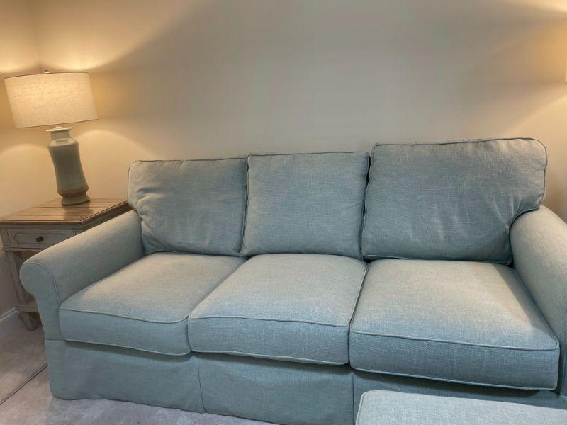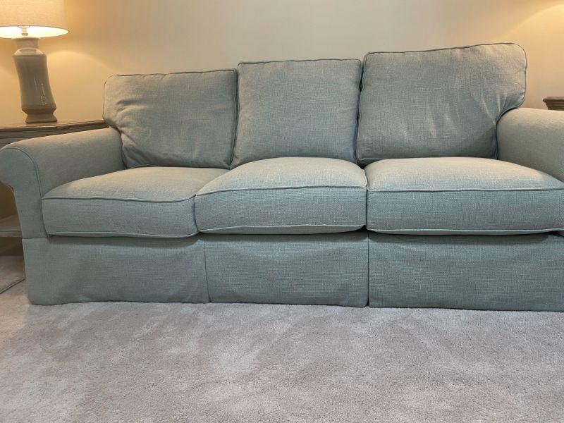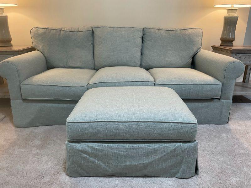 Beautiful Sofa - barely used - Seafoam Green - no stains - ottoman has wheels