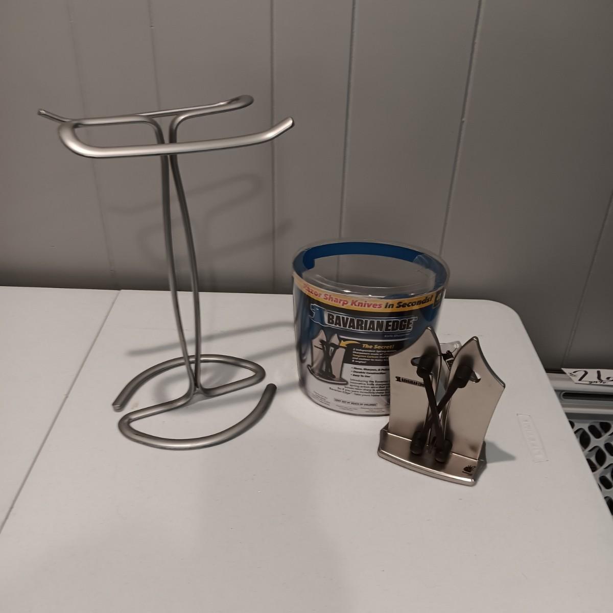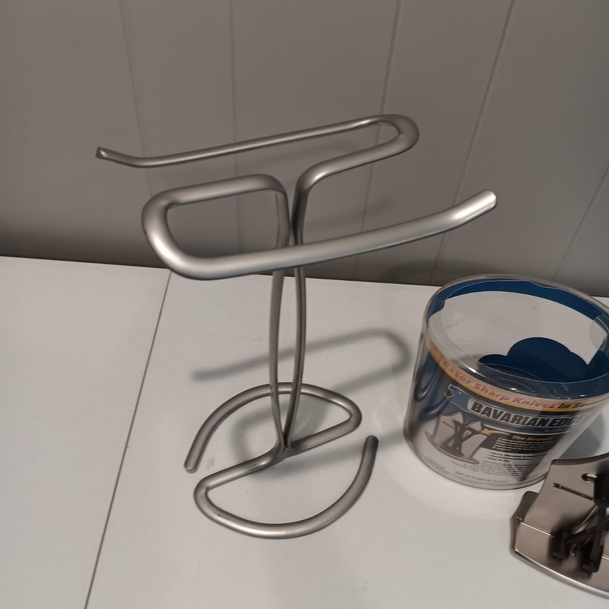 LIKE NEW BAVARIAN EDGE KNIFE SHARPENER AND HAND TOWEL HOLDER