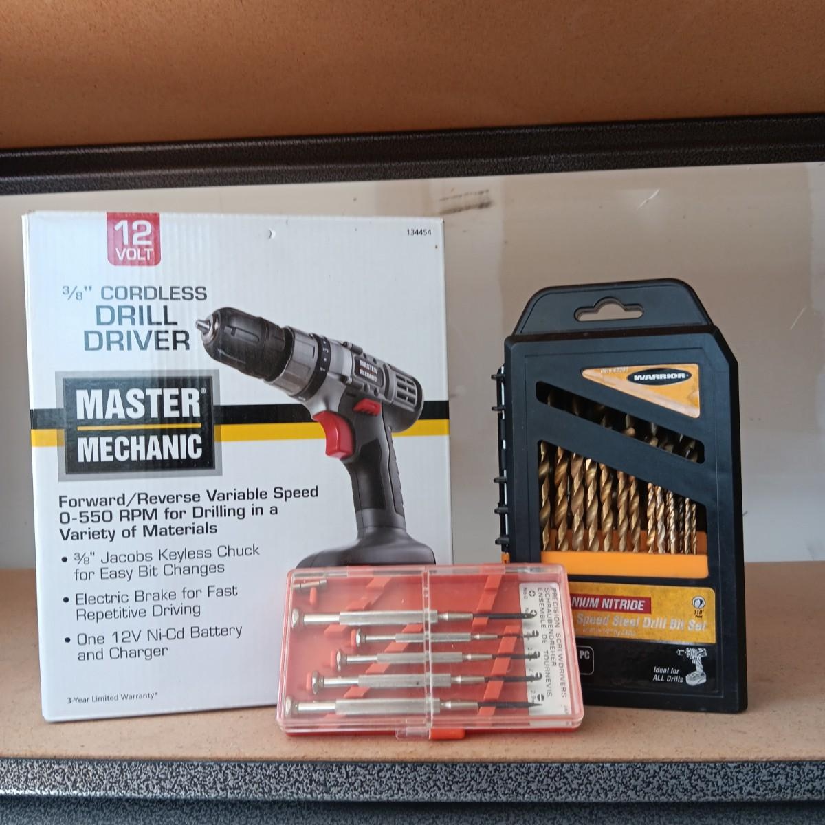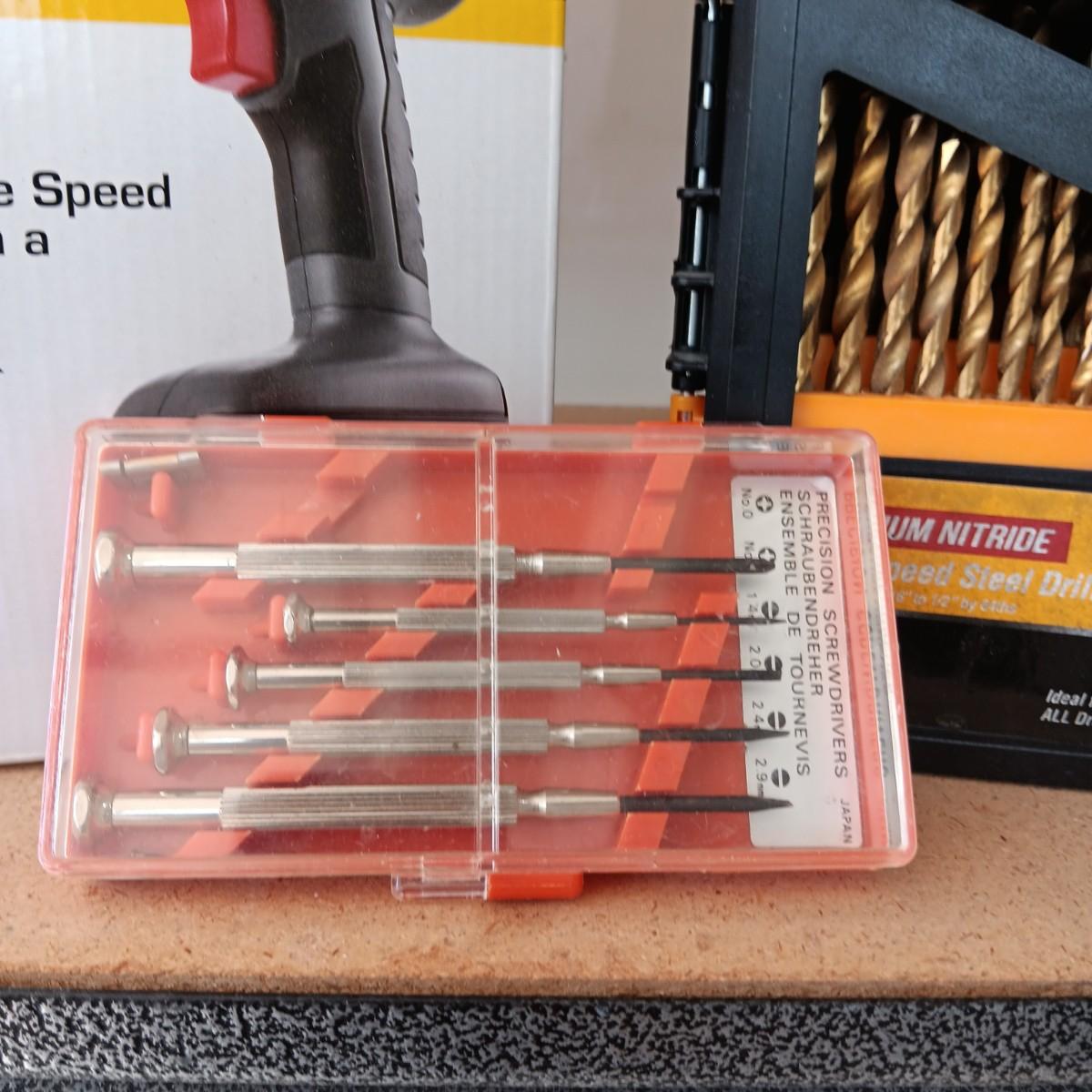 LIKE NEW CORDLESS DRILL, DRILL BITS AND PRECISION SCREWDRIVERS