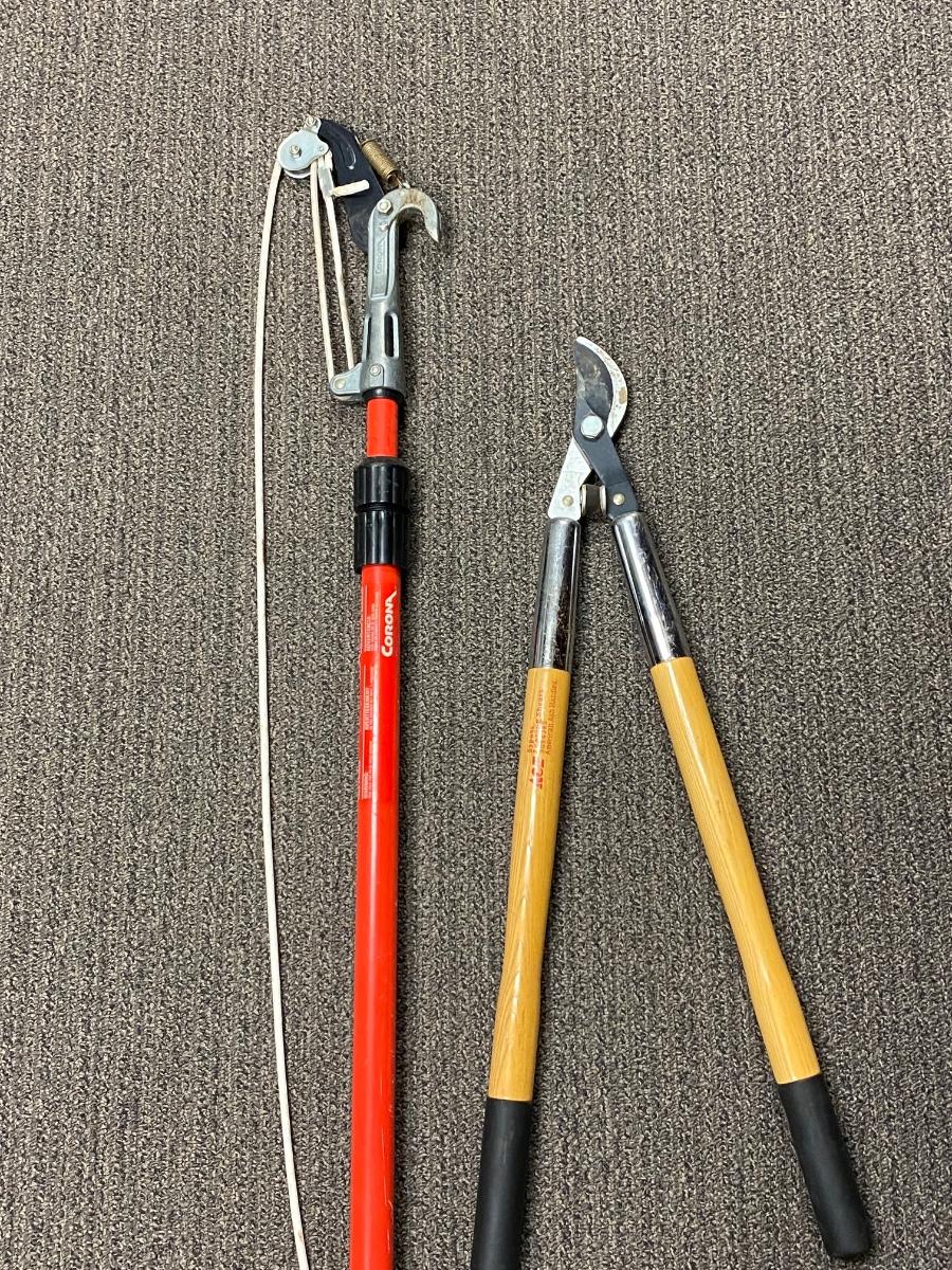 Corona brand tree lopper extension pole and Ace Hardware lopping shears. Both are in good condition. Extension pole has a 14' reach.