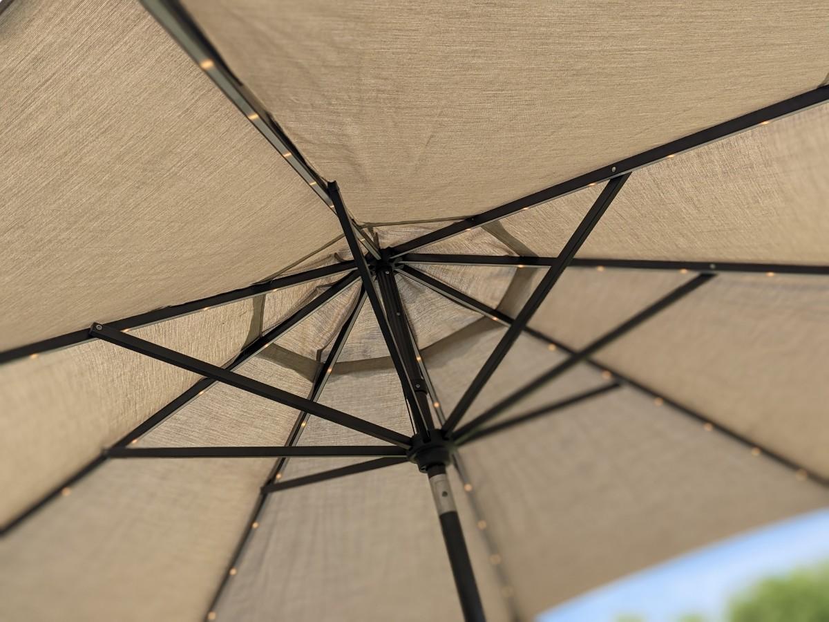 Item 2127523 bought last year. It comes with the additional umbrella and stand, Sunvilla 10' Round Solar LED Market Umbrella Item 2127717