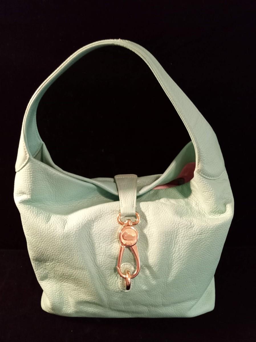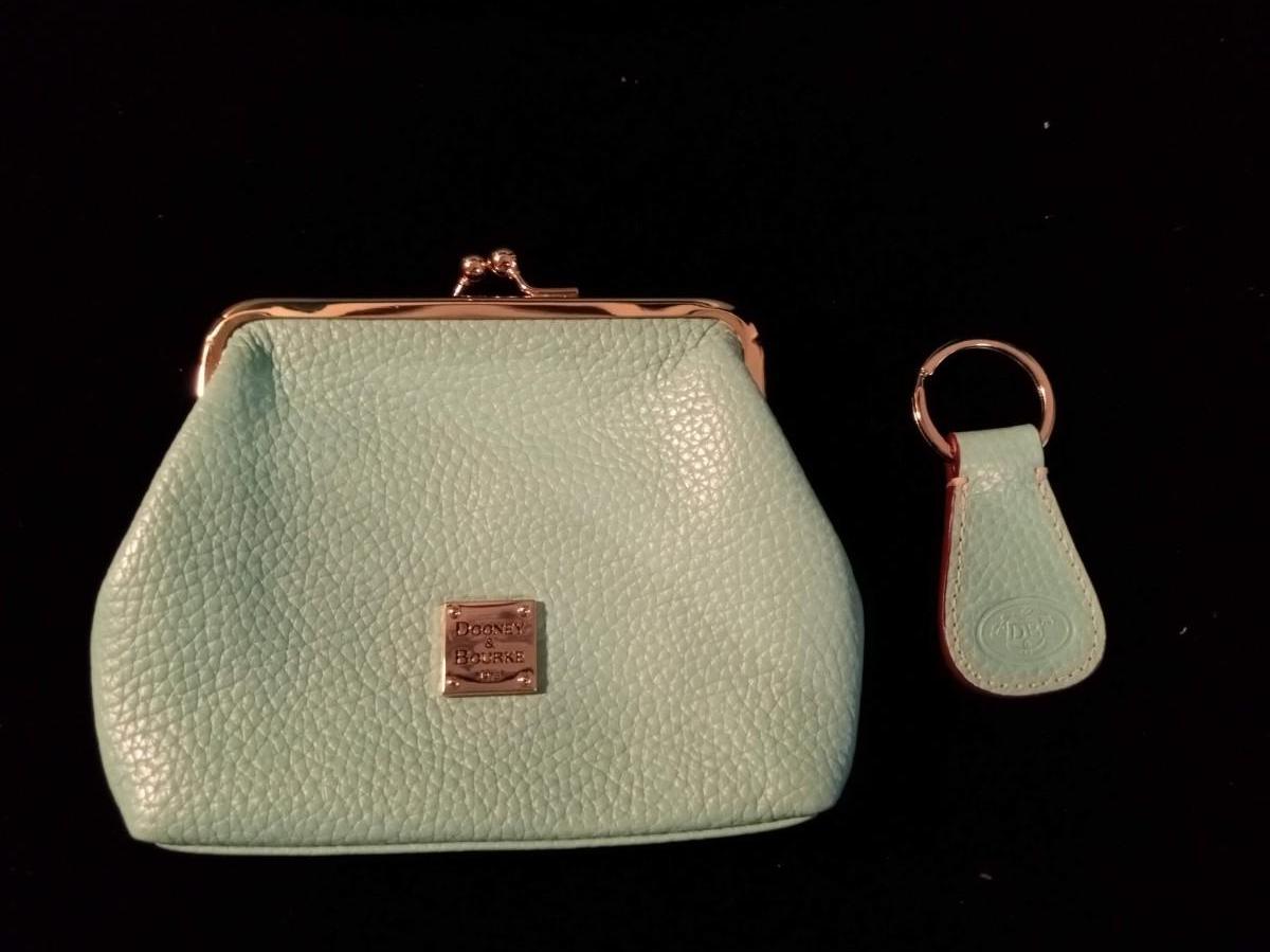 APPROX 14" WIDE, INCLUDES A REMOVEABLE COIN PURSE AND KEY CHAIN