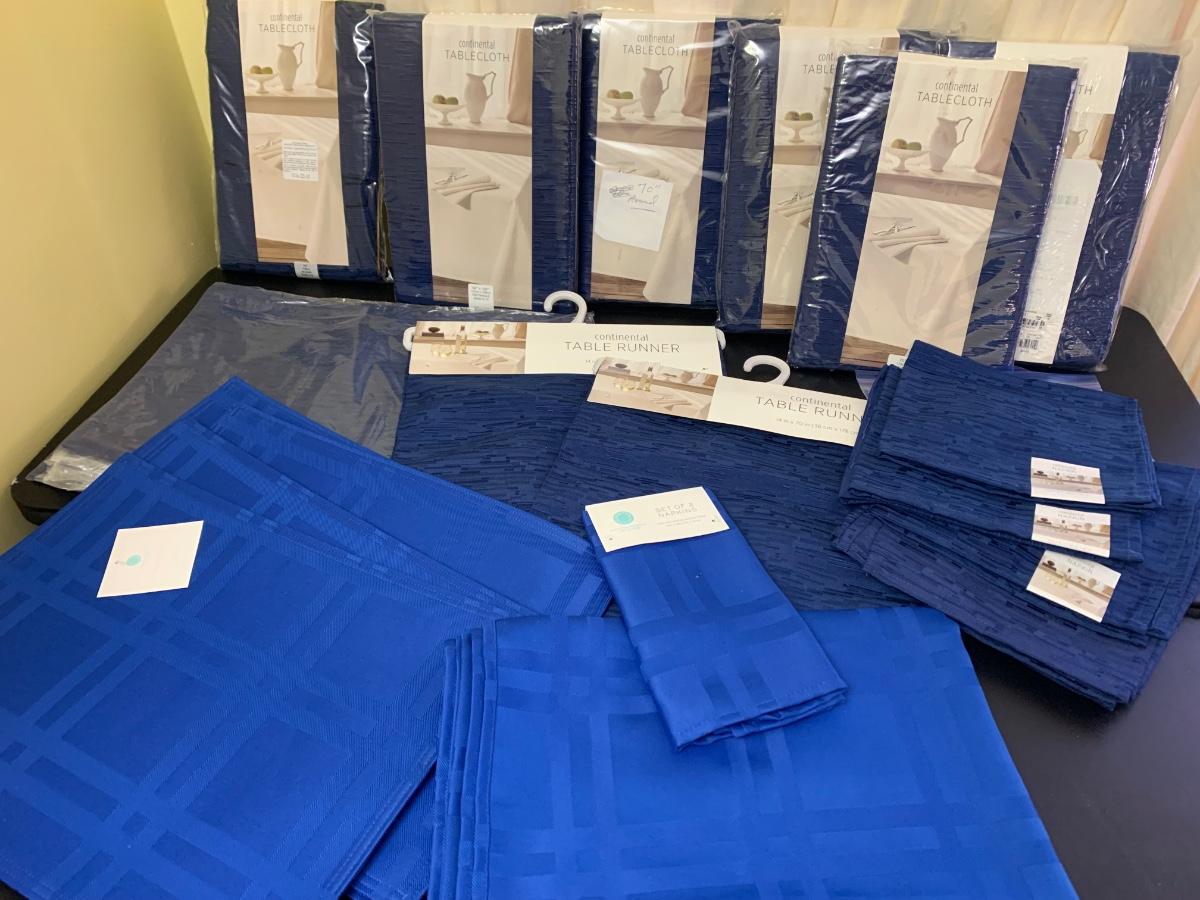 Like New Entertaining Lot - Blue Table Clothes, Placemats, Napkins