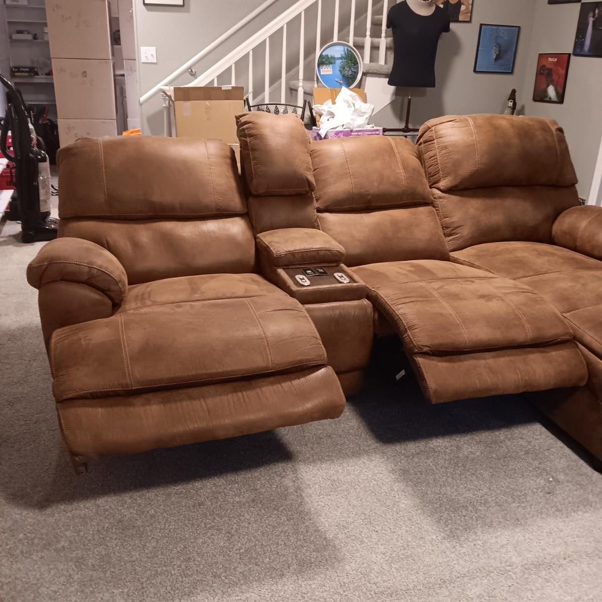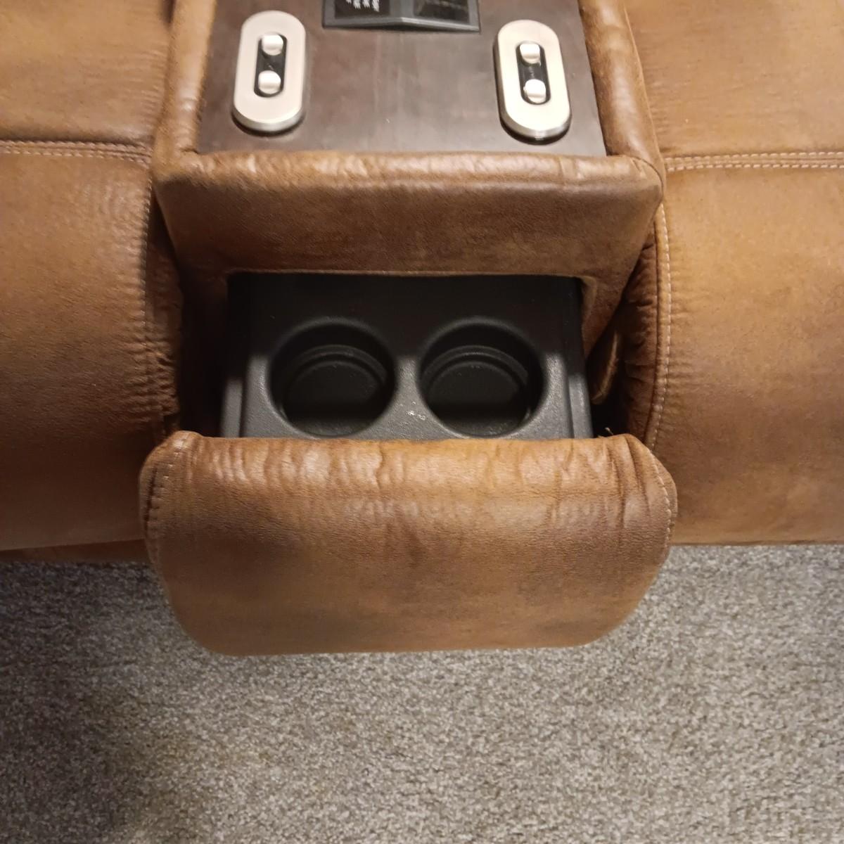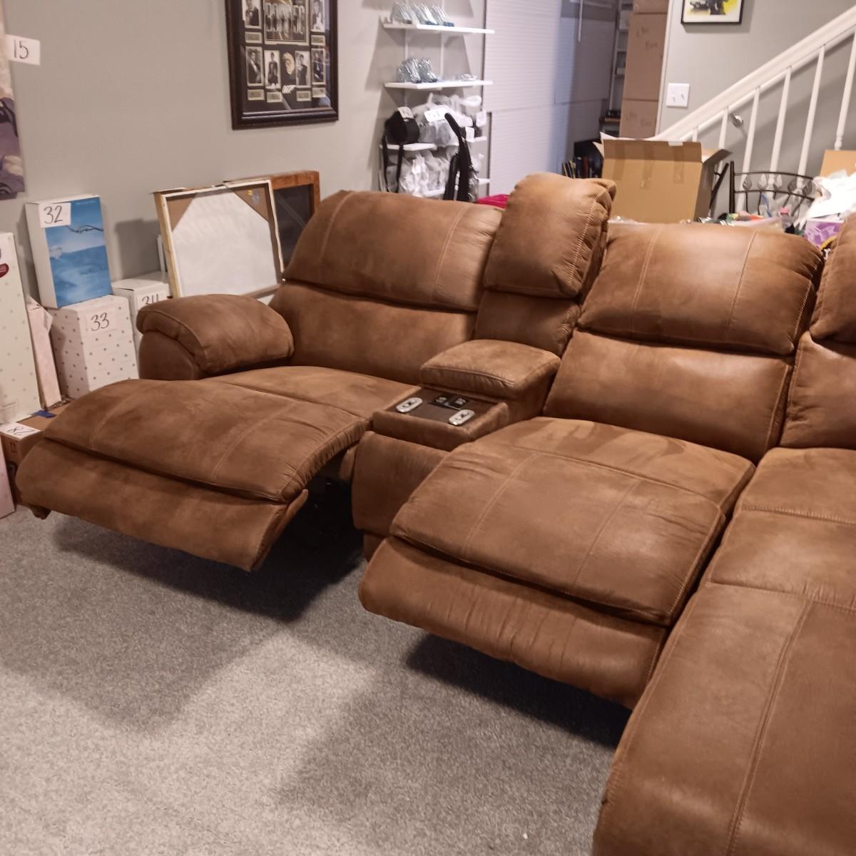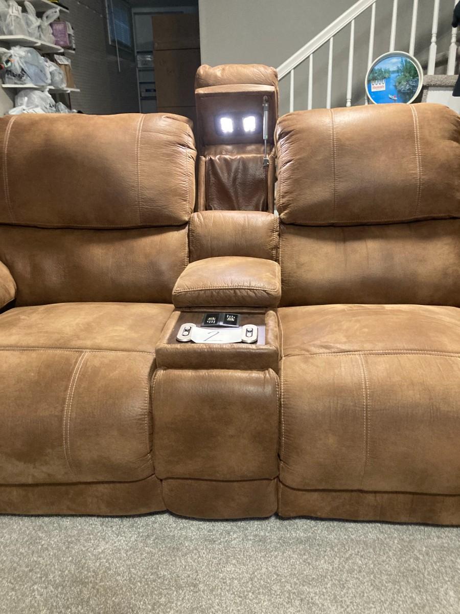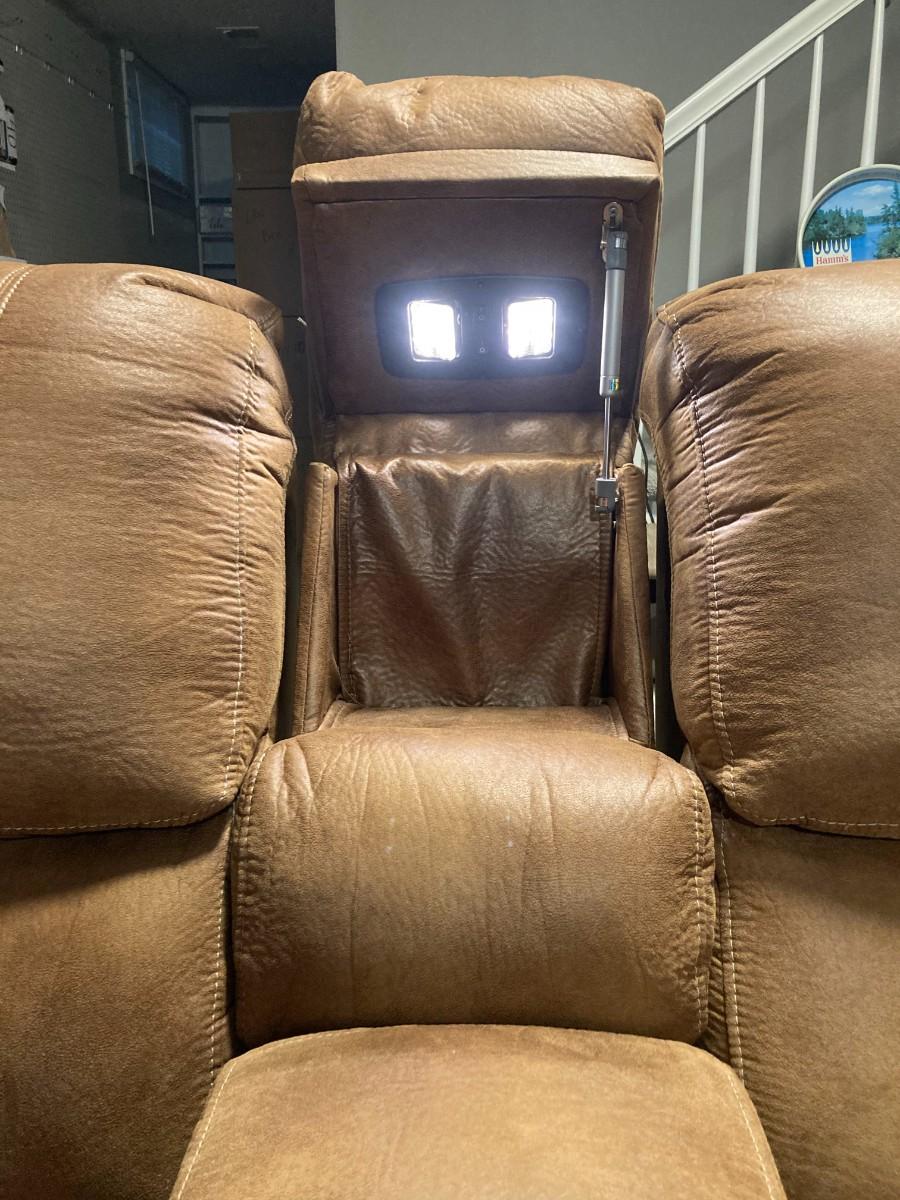 SYNTHETIC LEATHER, GEL INJECTED SEAT FOAM, PREMIUM MORLEY SPRING SYSTEM, STORAGE COMPARTMENT, SEPARATE READING LIGHTS INSIDE THE CENTER HEADREST, DRINK HOLDERS, THE CHAISE RECLINES INTO A SINGLE BED.