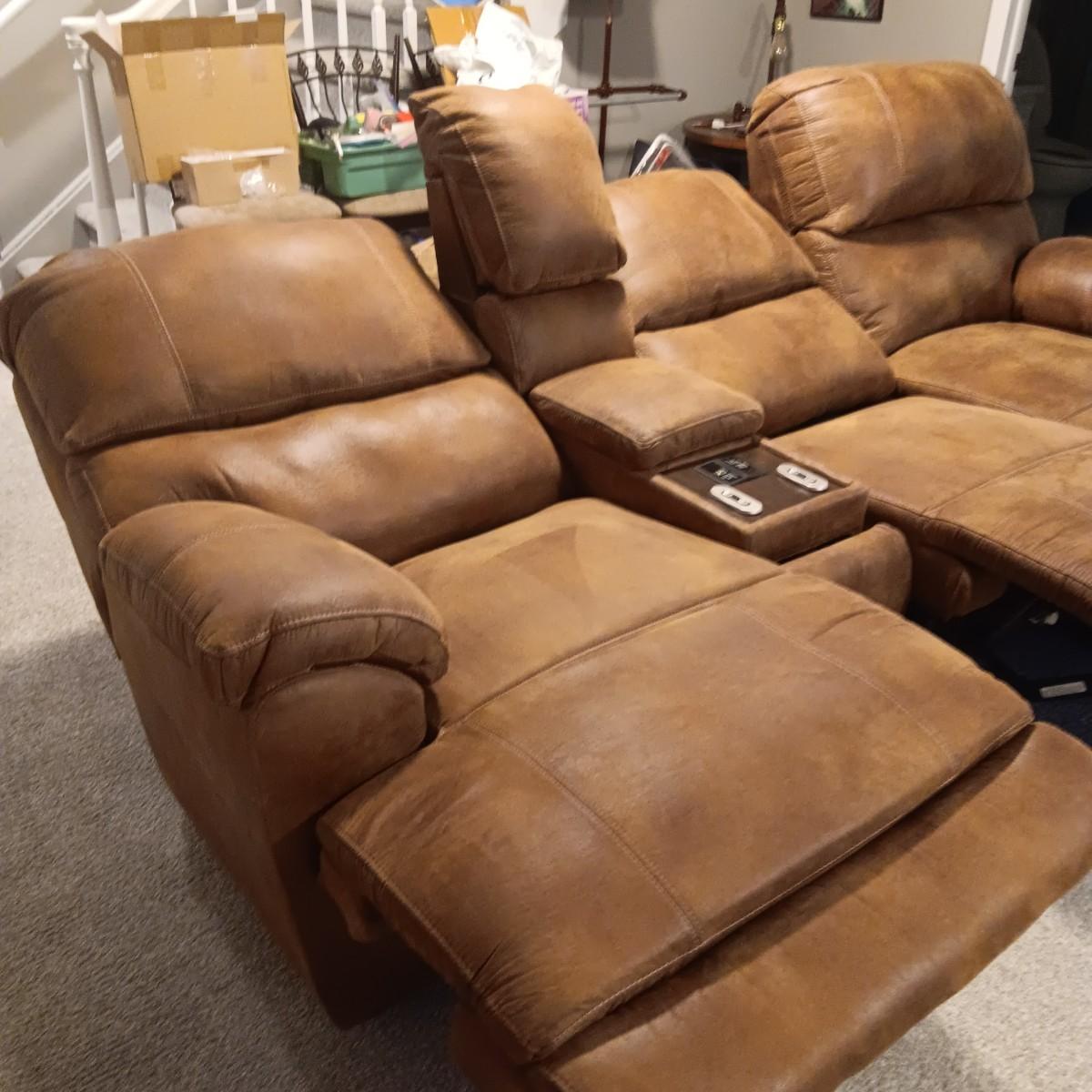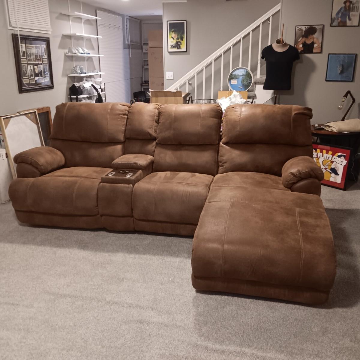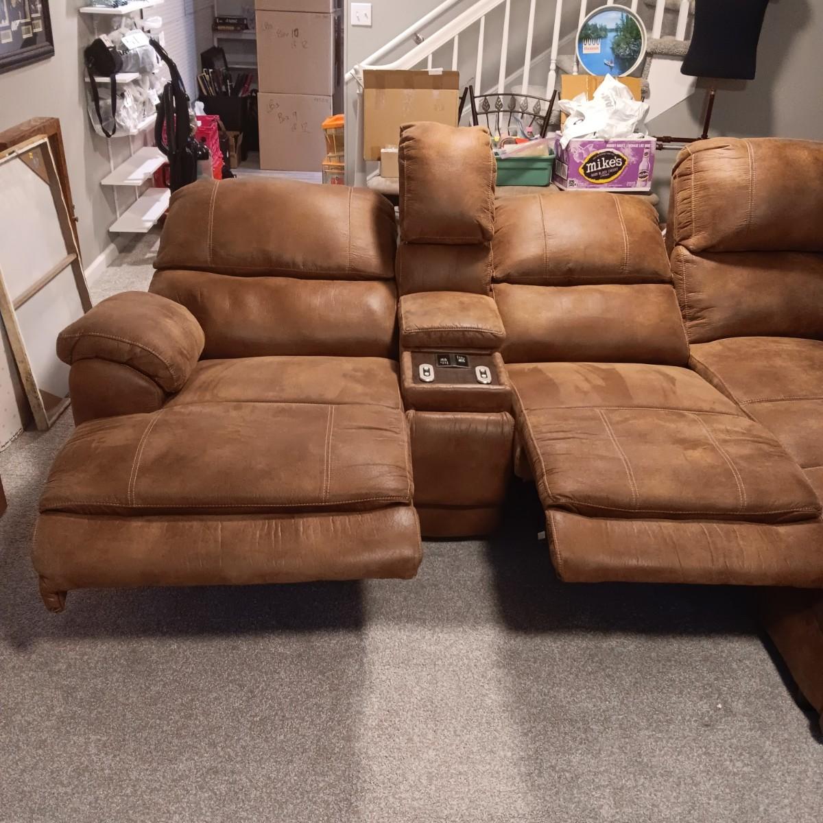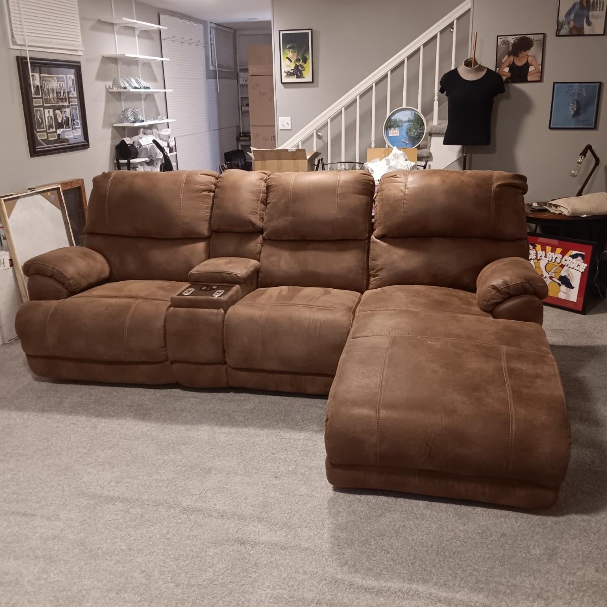SYNTHETIC LEATHER, GEL INJECTED SEAT FOAM, PREMIUM MORLEY SPRING SYSTEM, STORAGE COMPARTMENT, SEPARATE READING LIGHTS INSIDE THE CENTER HEADREST, DRINK HOLDERS, THE CHAISE RECLINES INTO A SINGLE BED.