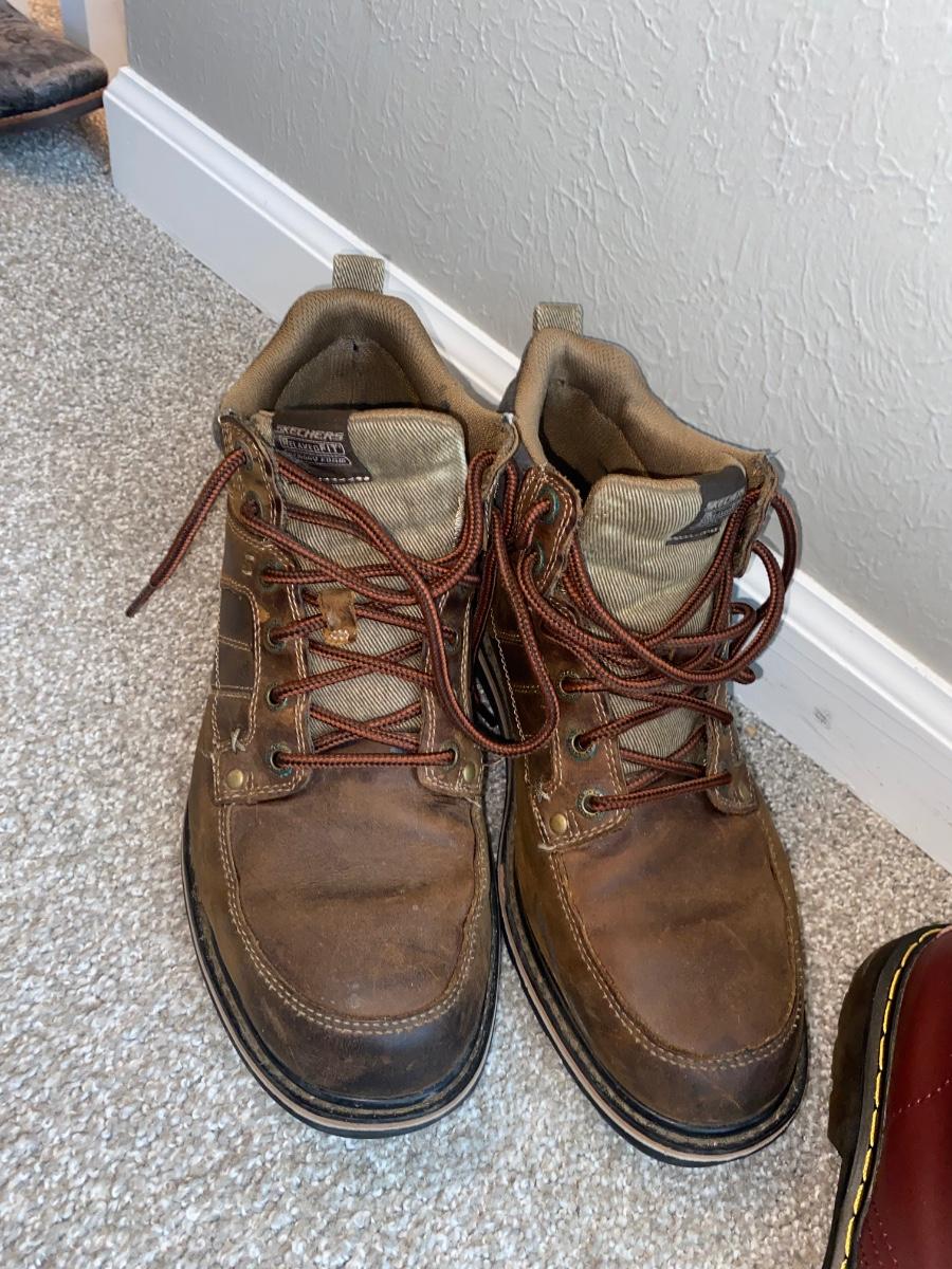 LIKE NEW MEN’S DOC MARTIN BOOTS SIZE 46 AND A PAIR OF SKETCHER’S SHOES SIZE 12