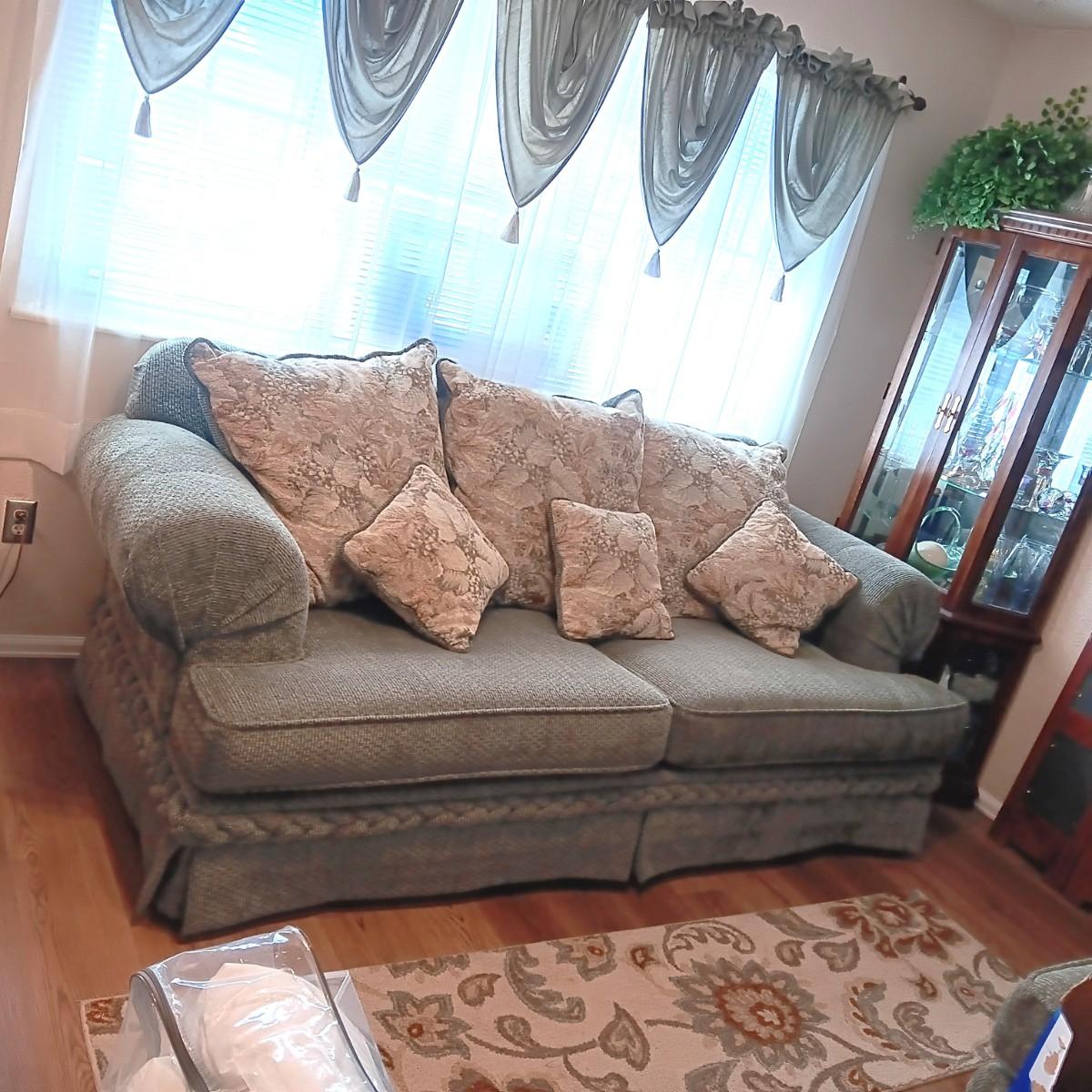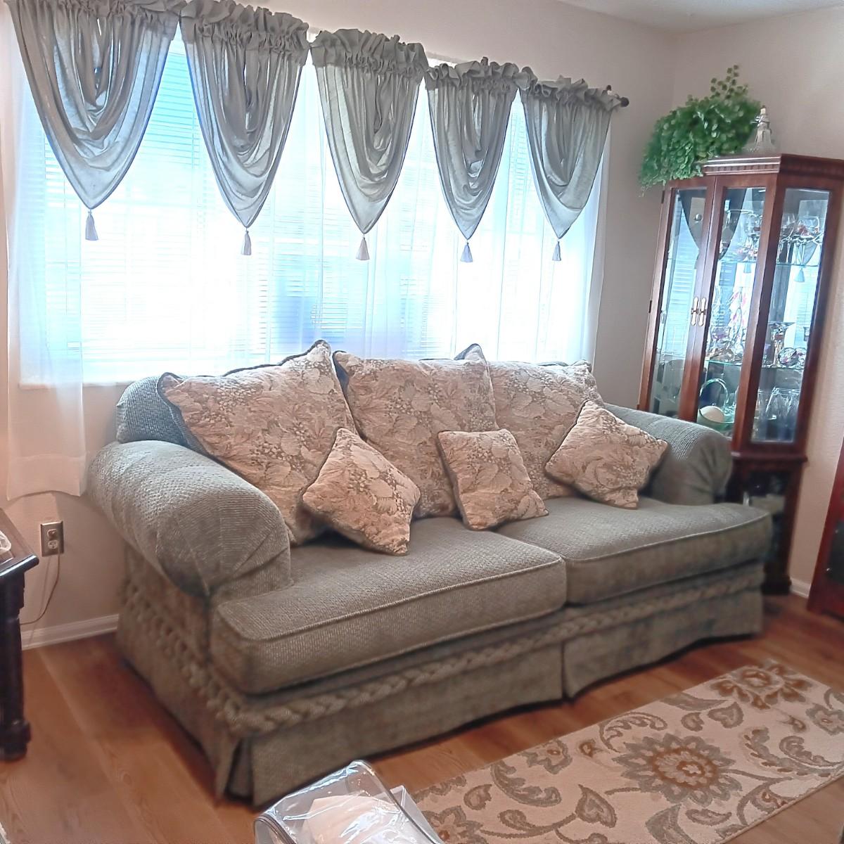 LIKE NEW OLIVE GREEN TUSCANY STYLE SOFA