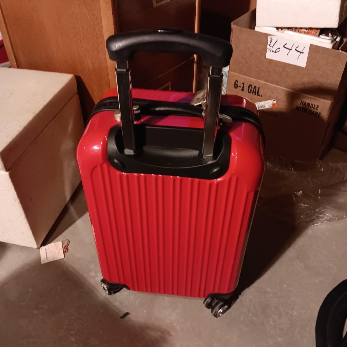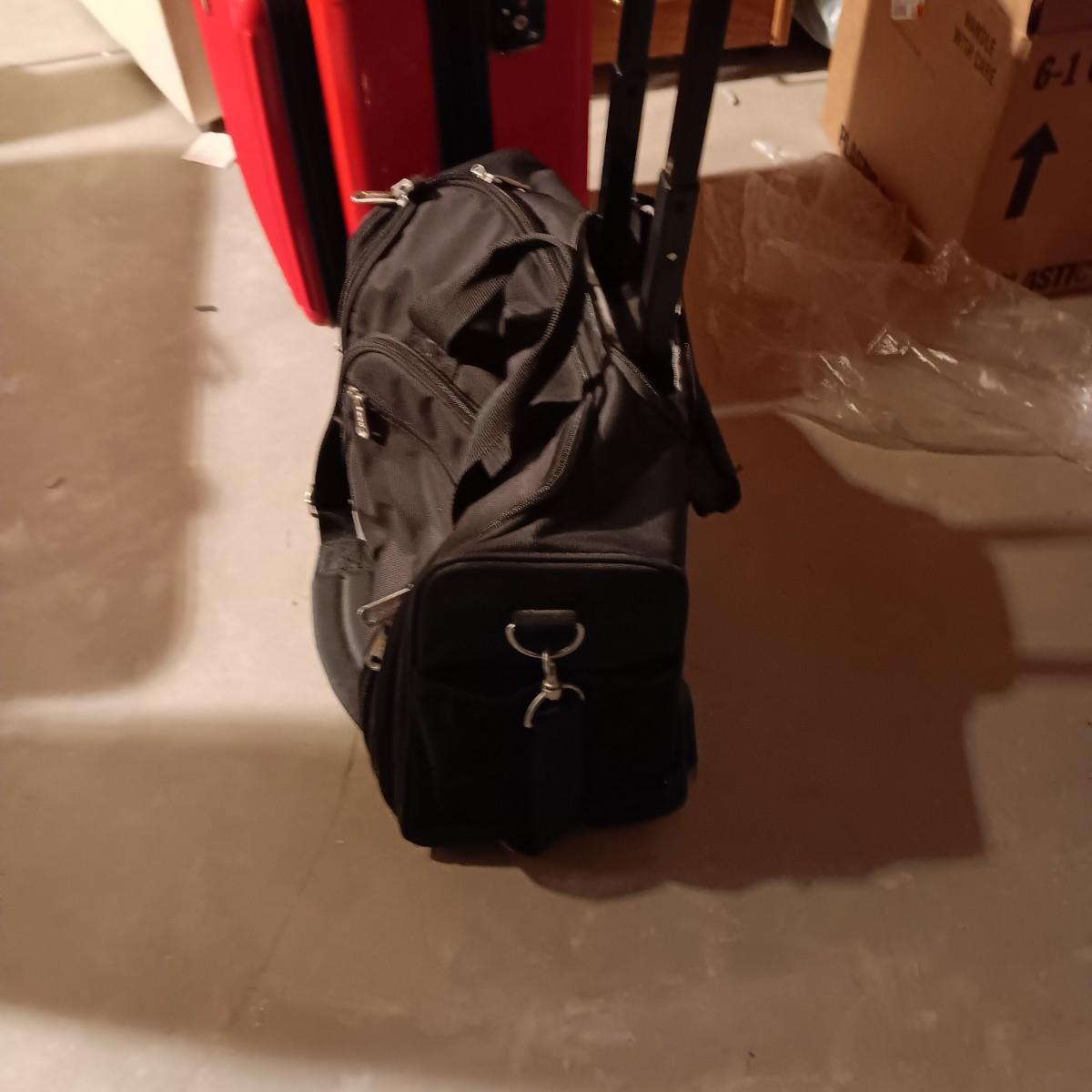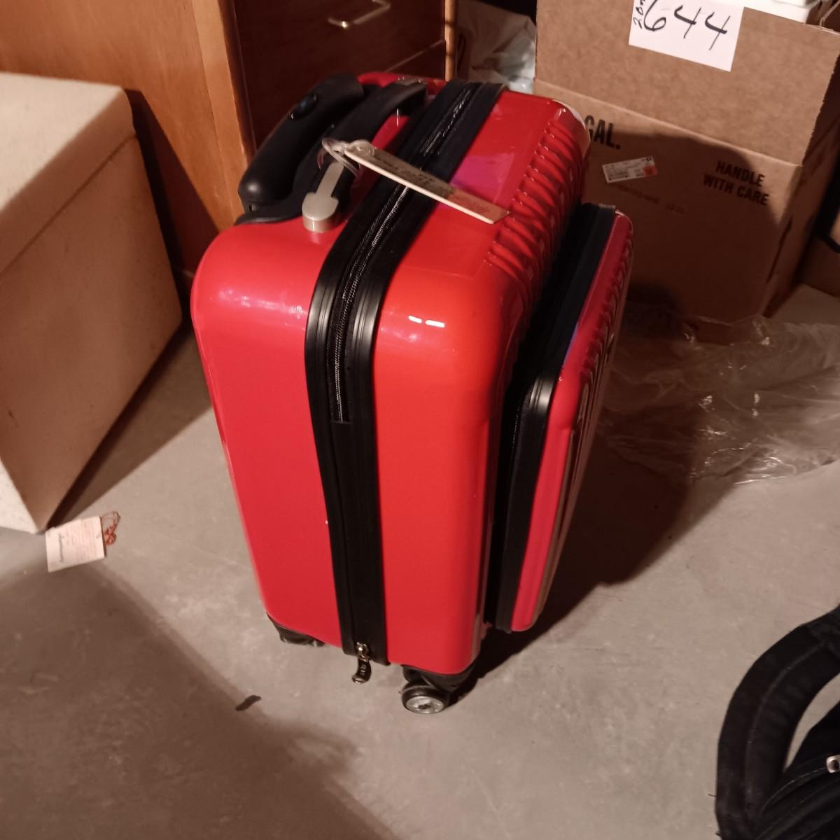 LIKE NEW RED CARRY ON WITH 4 WHEELS AND DUFFLE BAG ON 2 WHEELS