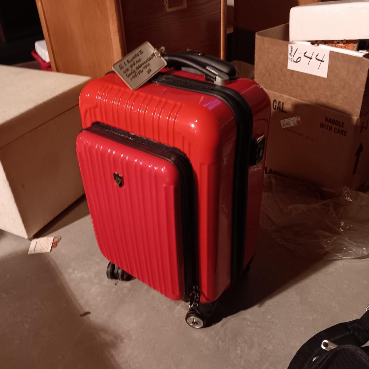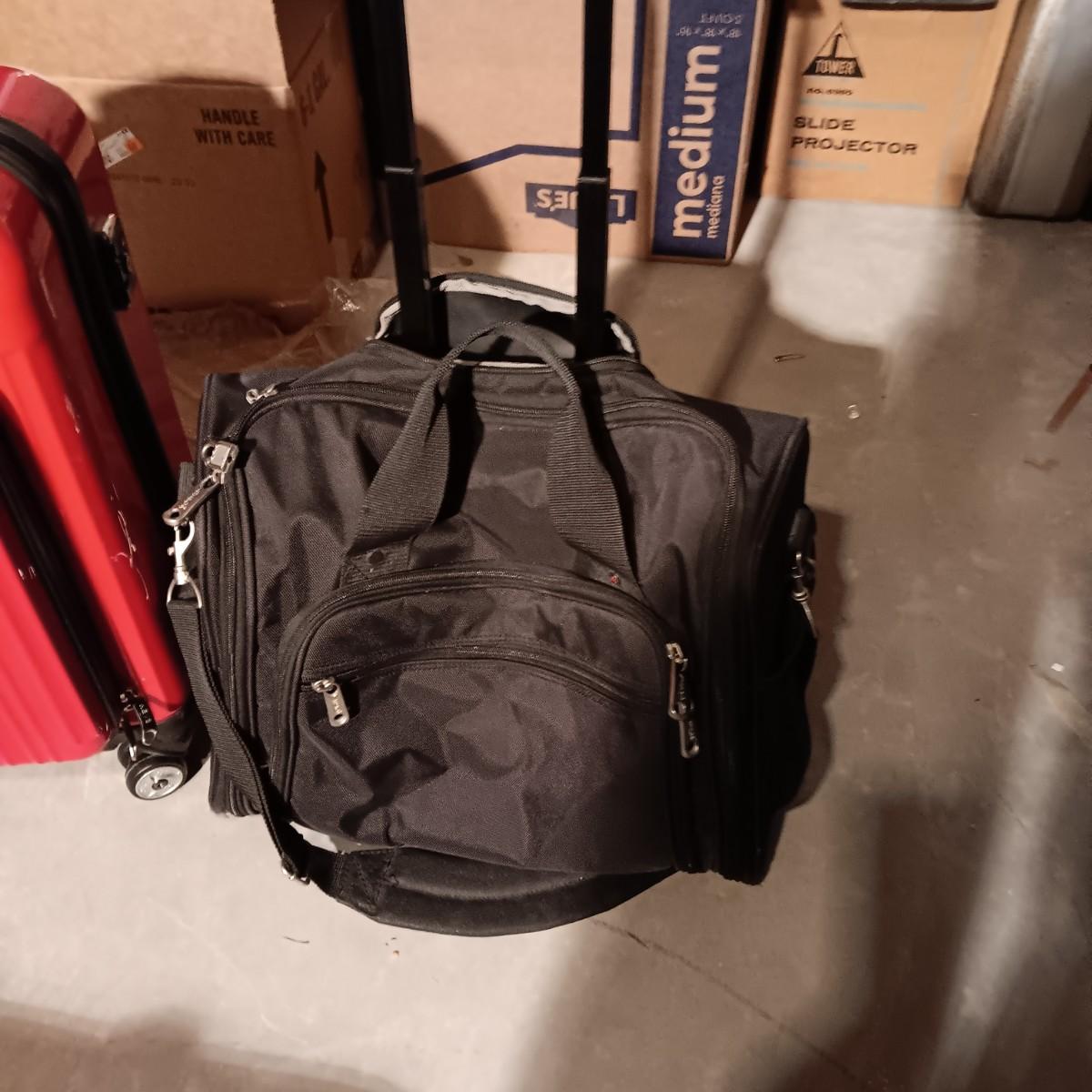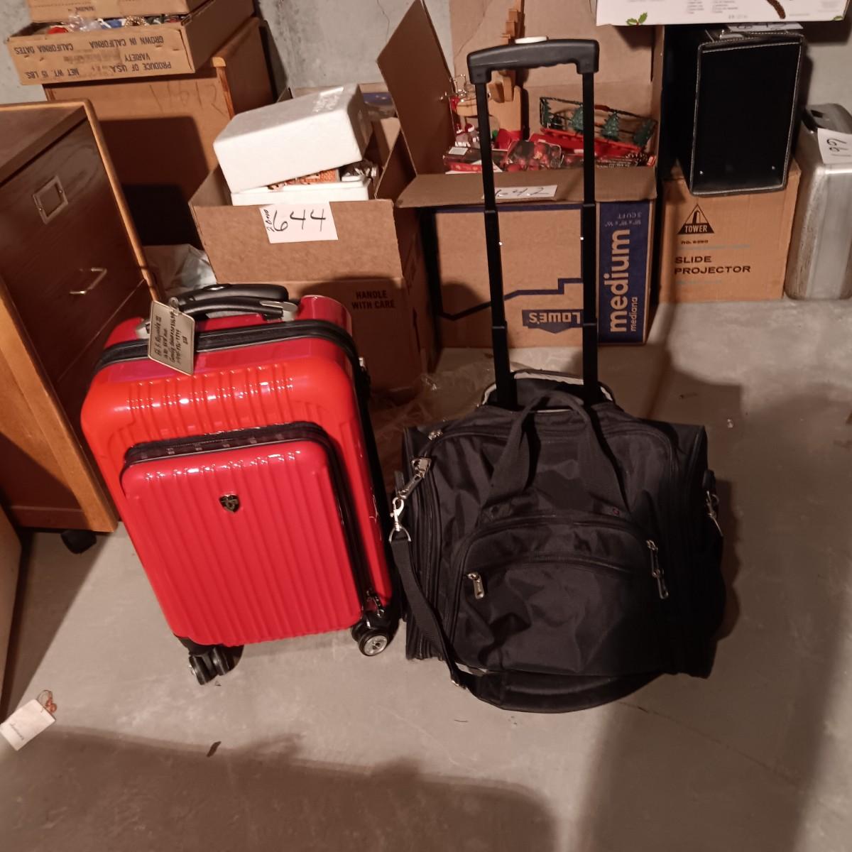 LIKE NEW RED CARRY ON WITH 4 WHEELS AND DUFFLE BAG ON 2 WHEELS