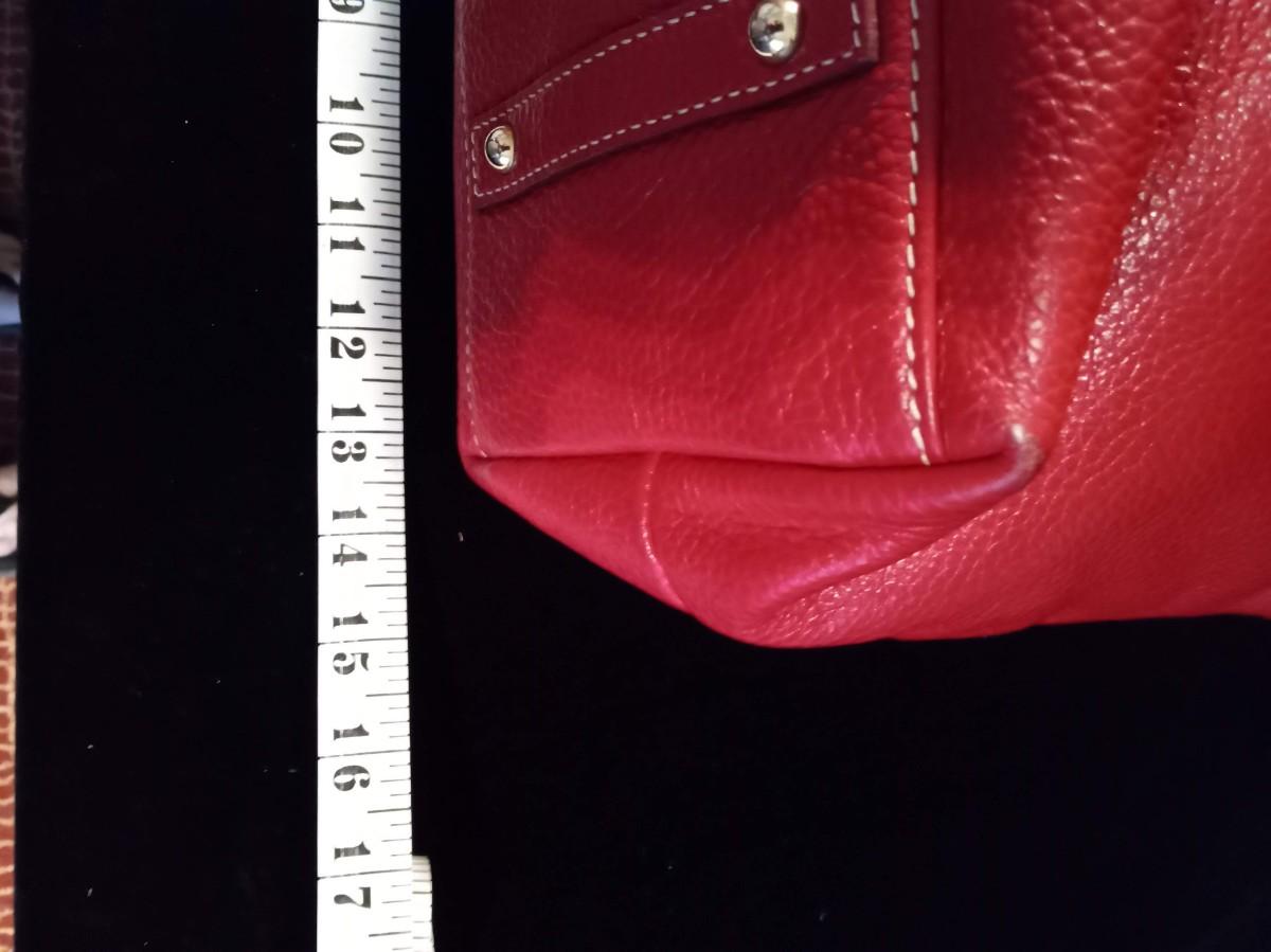 THE PURSE IS APPROX 15" WIDE AND IN LIKE NEW CONDITION