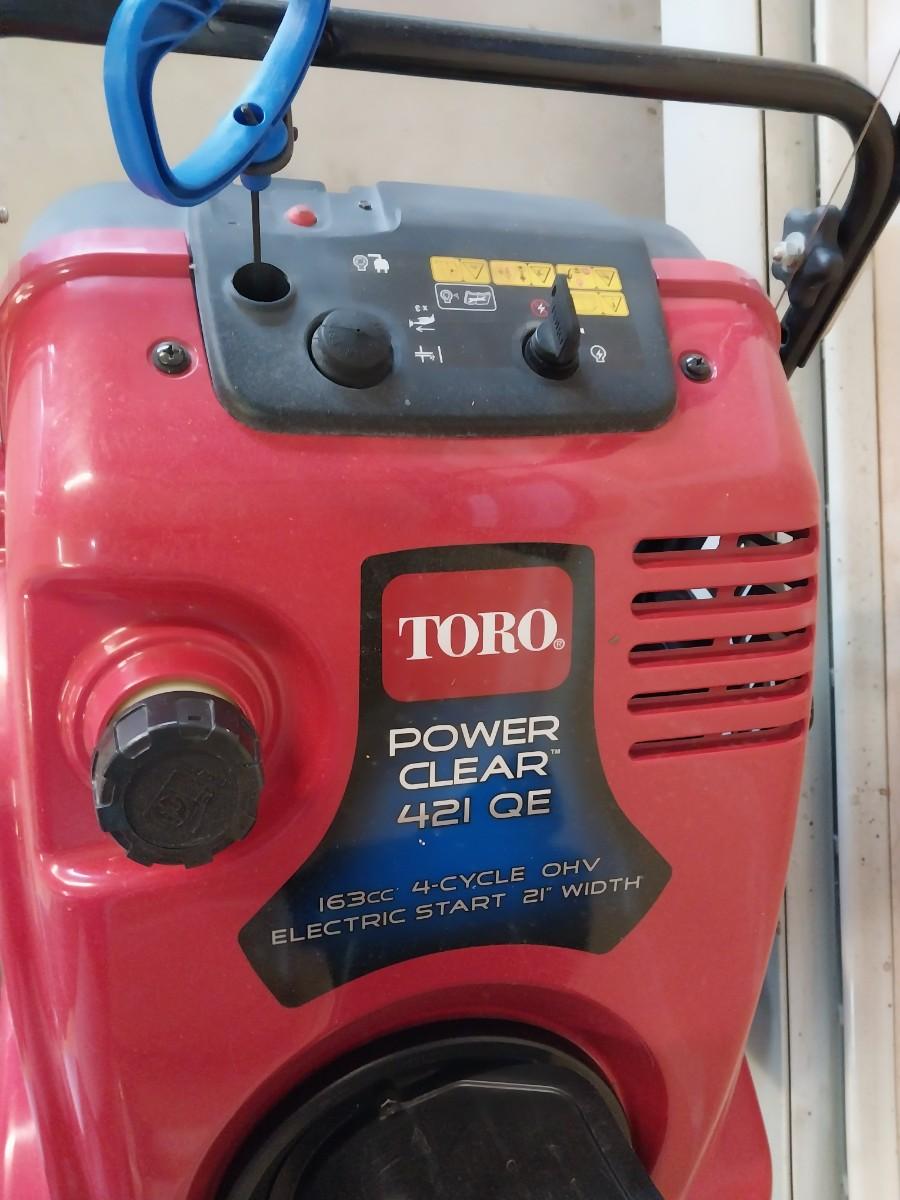 LIKE NEW TORO 421 QE ELECTRIC START, 4 CYCLE, 21" WIDTH SNOW BLOWER