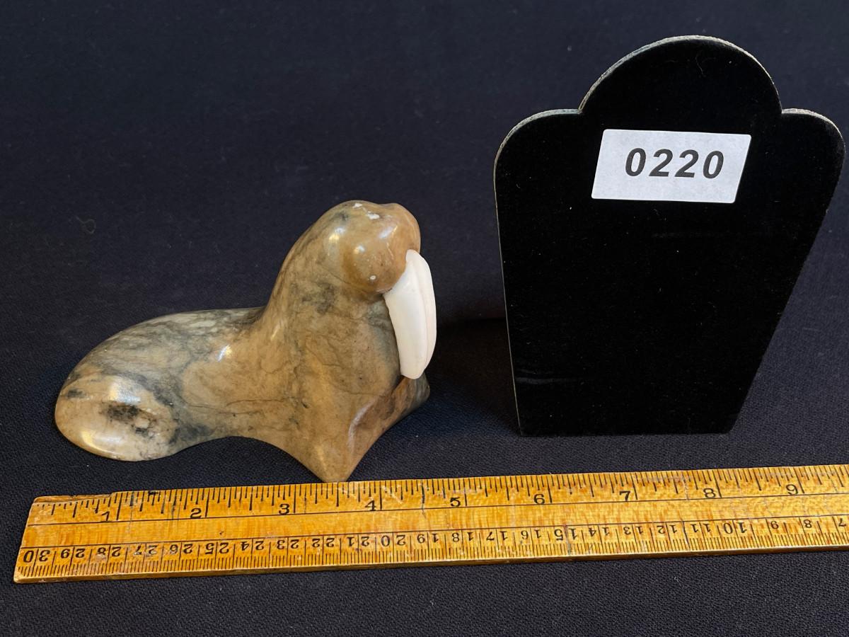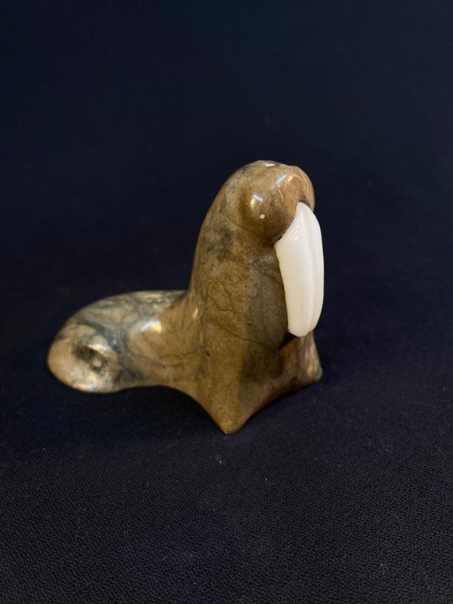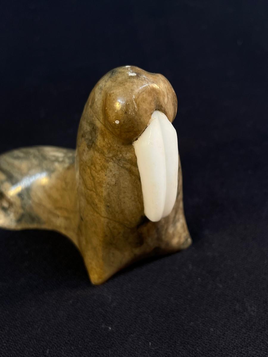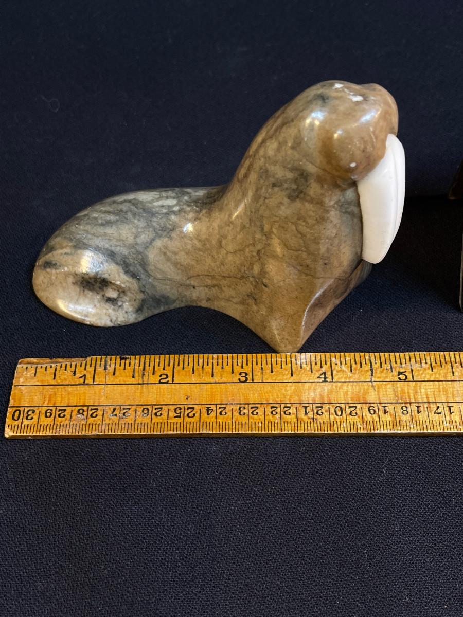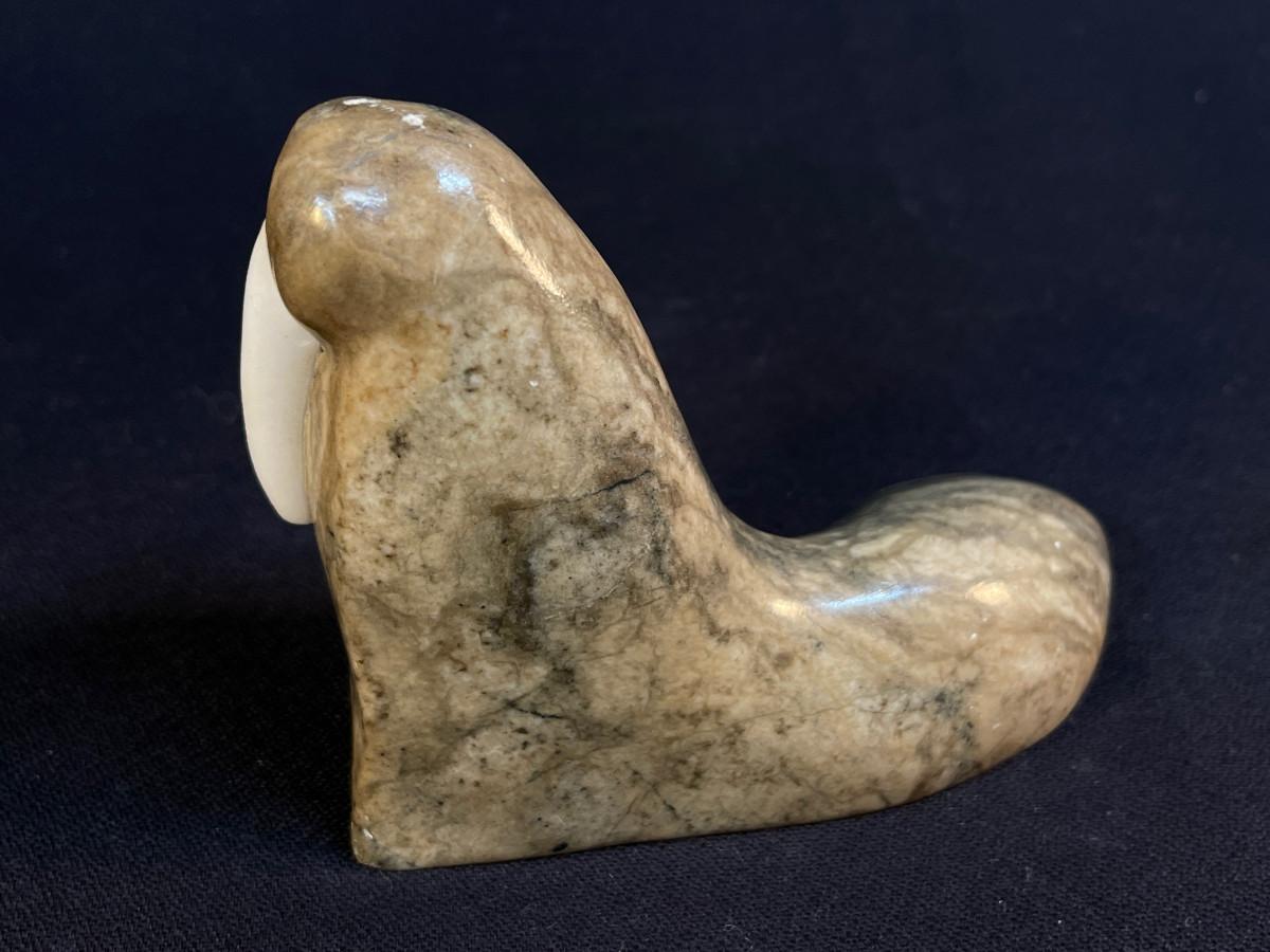 Likely an Inuit or Native People Carved Stone Walrus with applied stone tusks