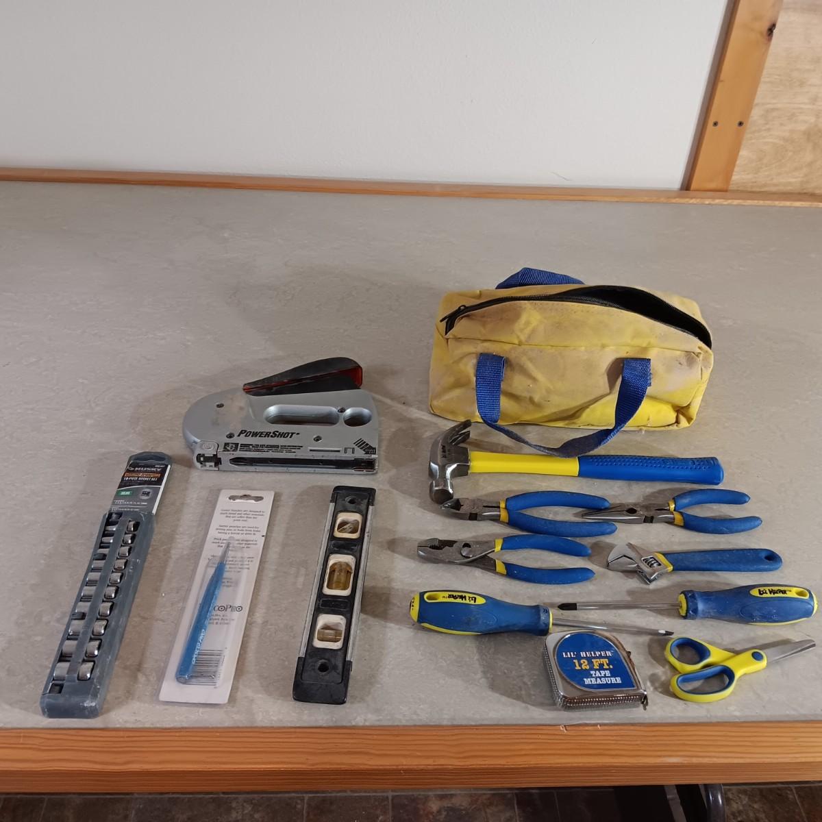 LIL HELPER TOOL SET WITH BAG, SOCKETS, STAPLE GUN AND MORE