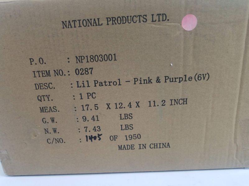 Lil Patrol Pink & Purple 6V Ride On Toy - New