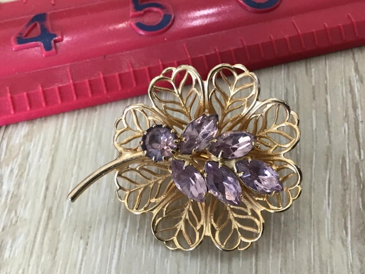 Lilac Color Rhinestone Gold Tone Brooch