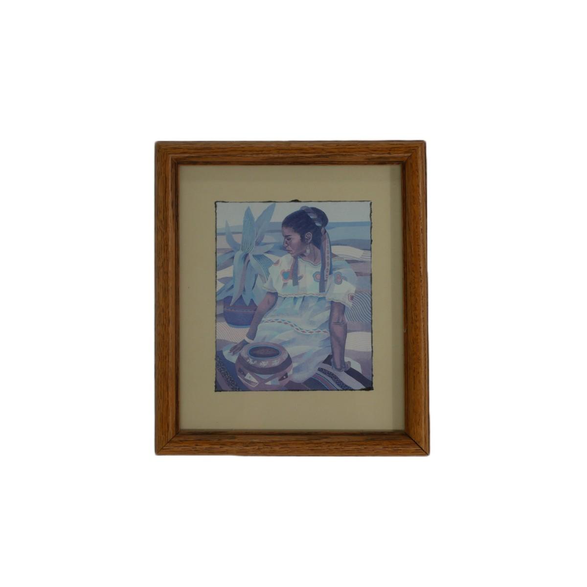 This artwork titled "Liliana" c.1990 in a print by Bolivian artist Marion Ferrer (Mario) Cespedes, 1942-2007. Unsigned. Professionally framed. Excellent condition. Artwork measures 5.5" x 6.5", total frame measures 9.25" x 10.5" x 1". (A12)